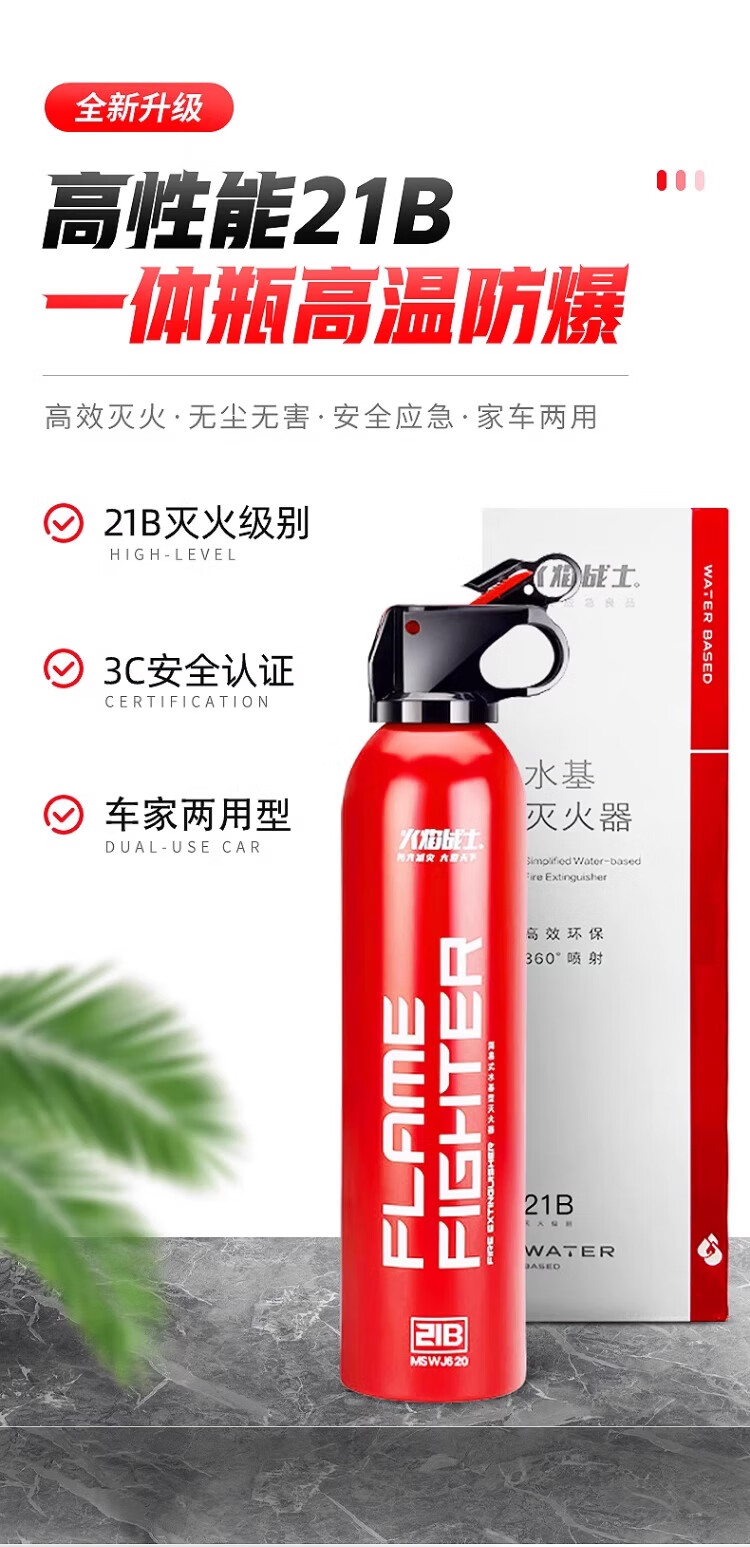 Flame Warrior vehicle-mounted water-based fire extinguisher household new energy vehicle national standard fire protection 3C certification 21B environmental protection 620ml basic model