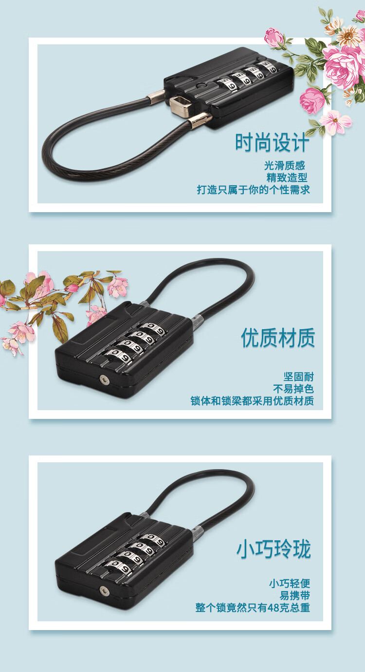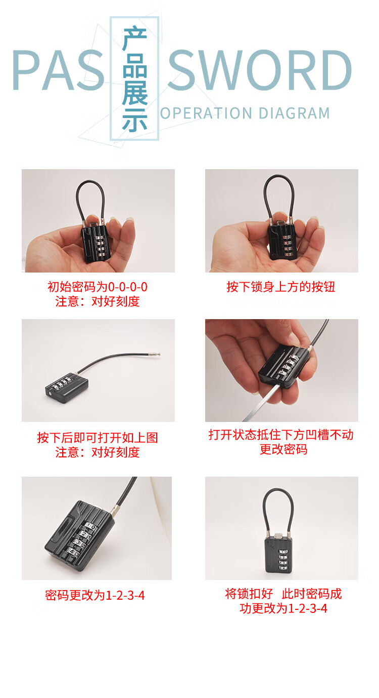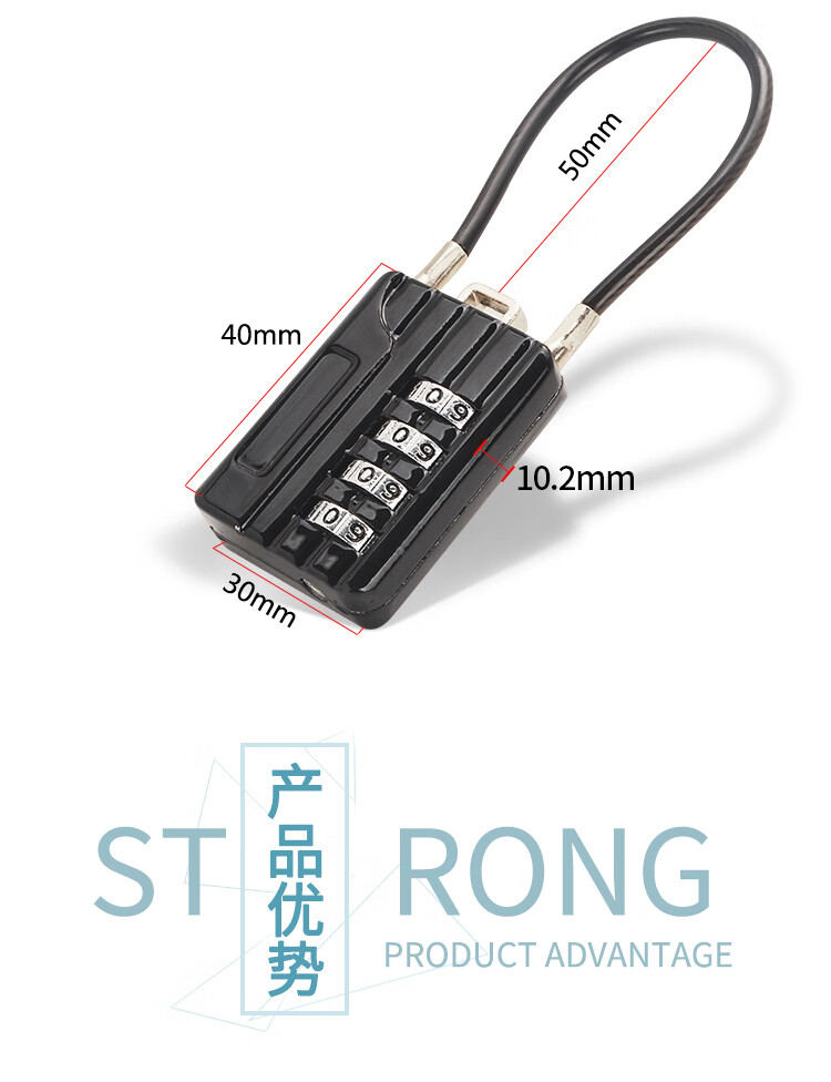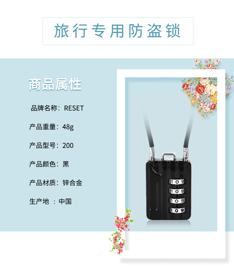 RESET small combination lock padlock suitcase bag lock backpack password padlock steel cable locker lock black 12cm R200