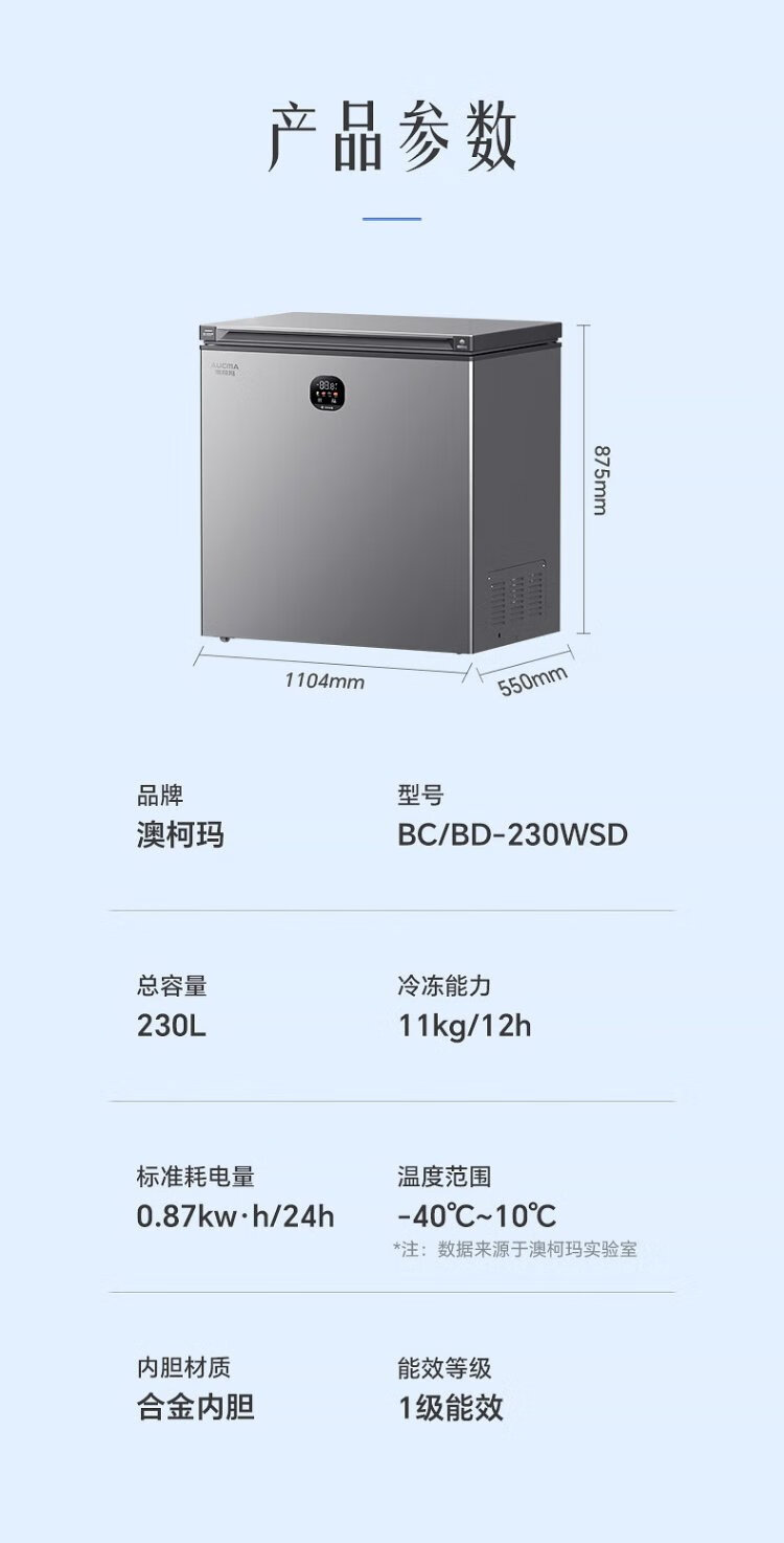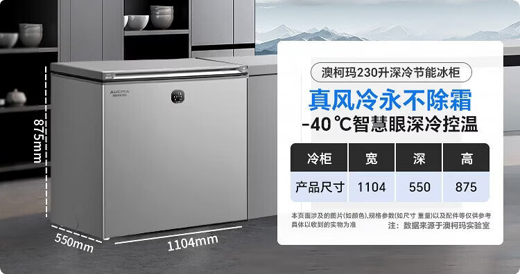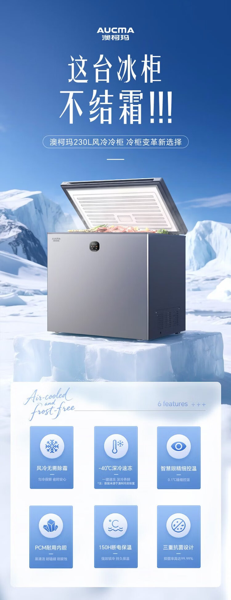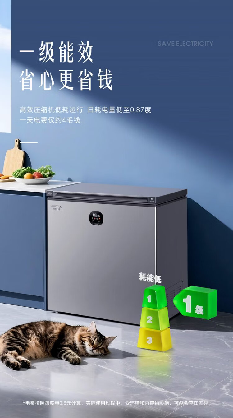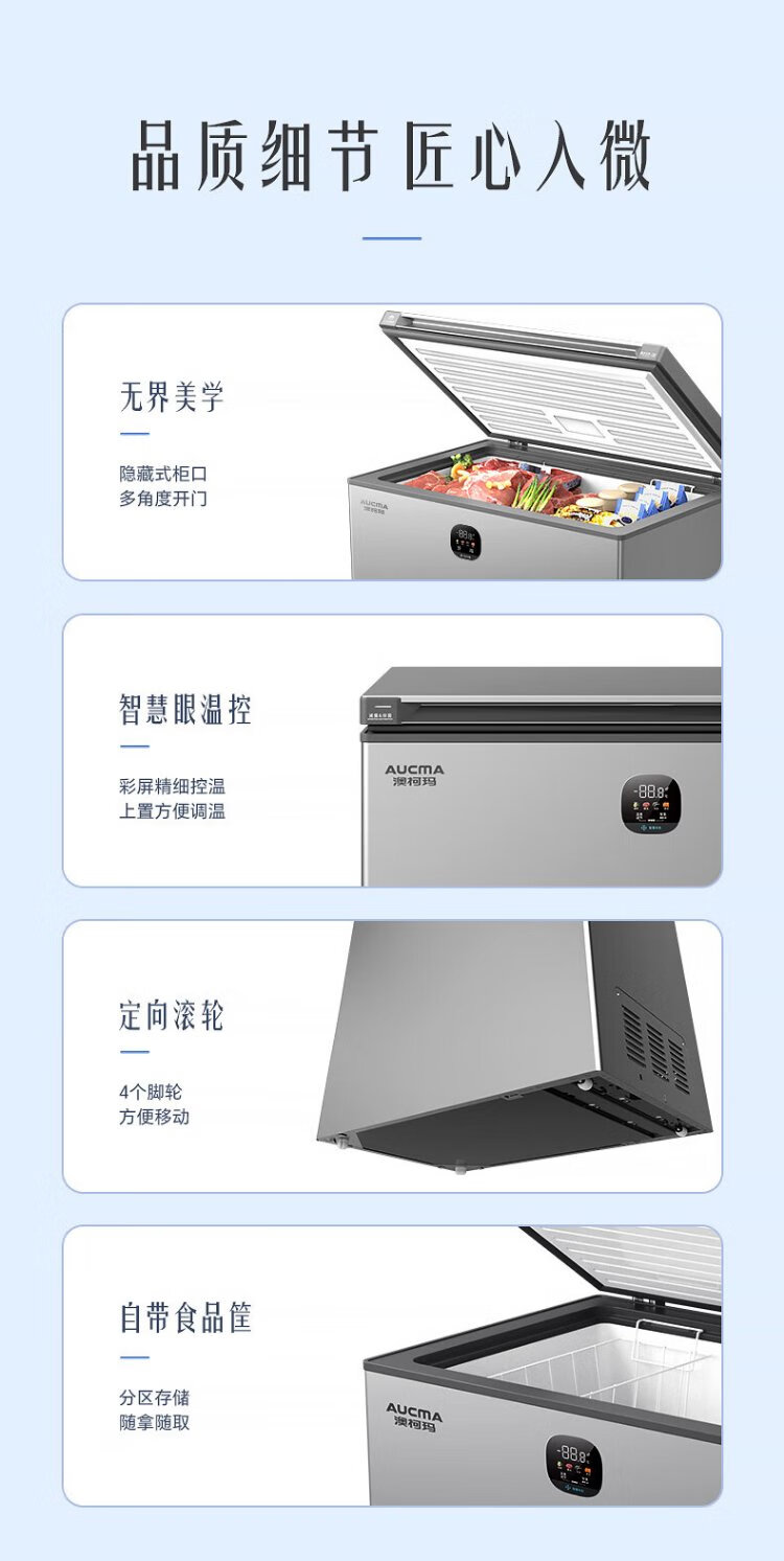 AUCMA Smart Eye Series 230-liter single-temperature air-cooled frost-free small freezer household refrigerator horizontal refrigerator freezer first-level energy efficiency BC/BD-230WSD trade-in