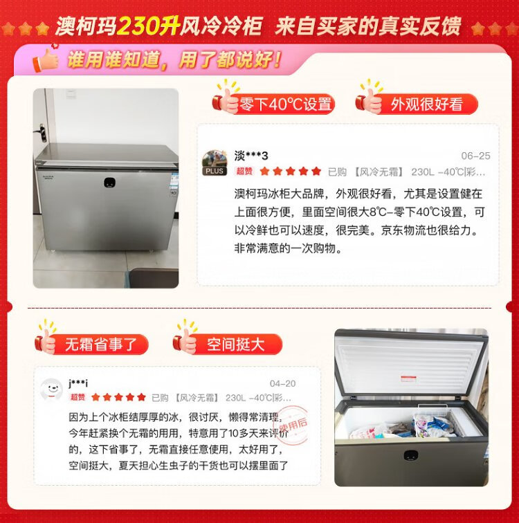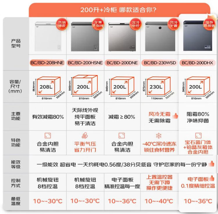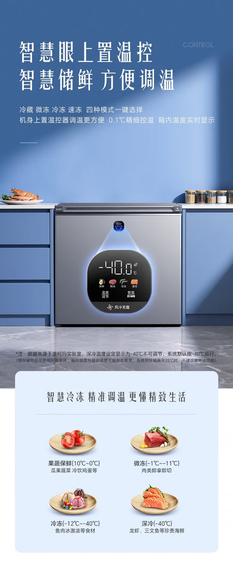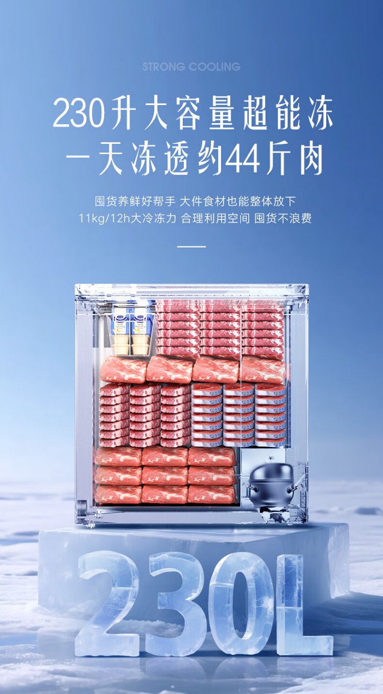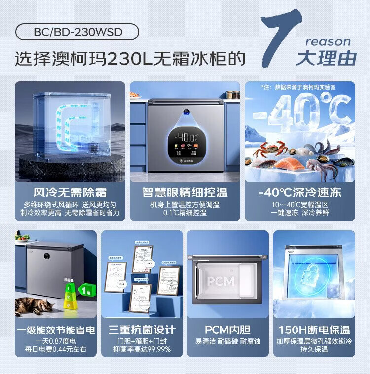 AUCMA Smart Eye Series 230-liter single-temperature air-cooled frost-free small freezer household refrigerator horizontal refrigerator freezer first-level energy efficiency BC/BD-230WSD trade-in