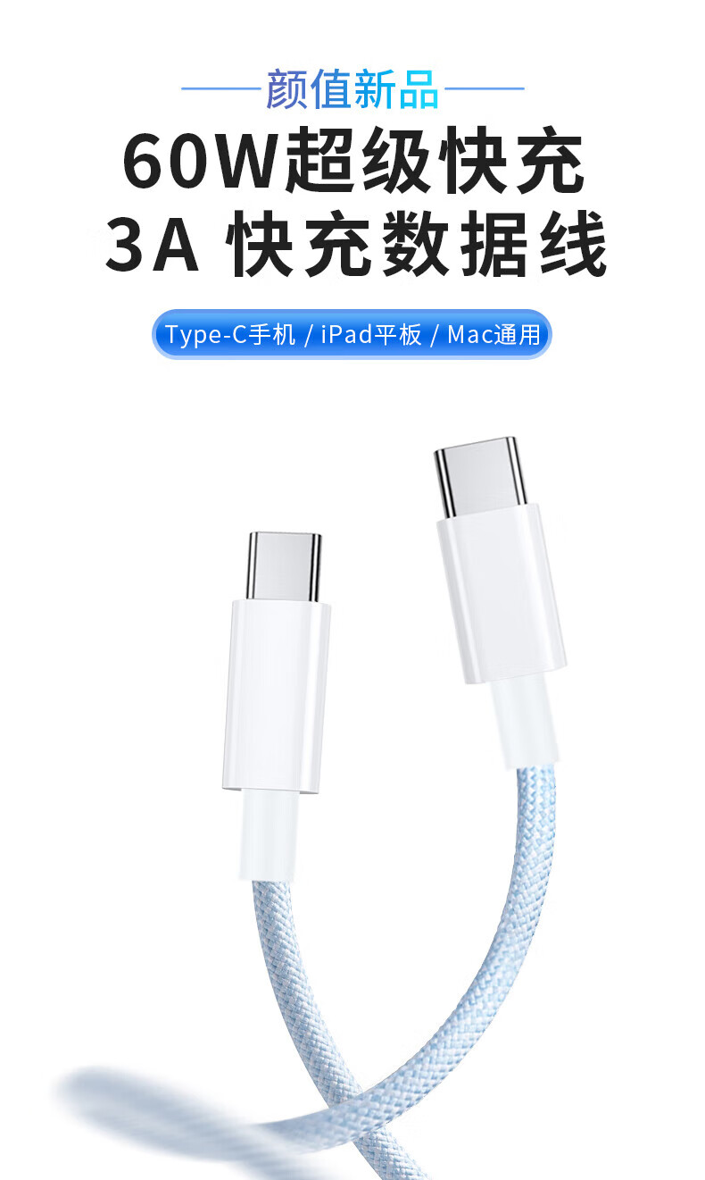 Langke Apple 17 charging cable Type-C data cable is suitable for iPhone17ProMax/Huawei Xiaomi oppo glory mobile phone iPad tablet charger cable 1 meter 2.4A fast charging