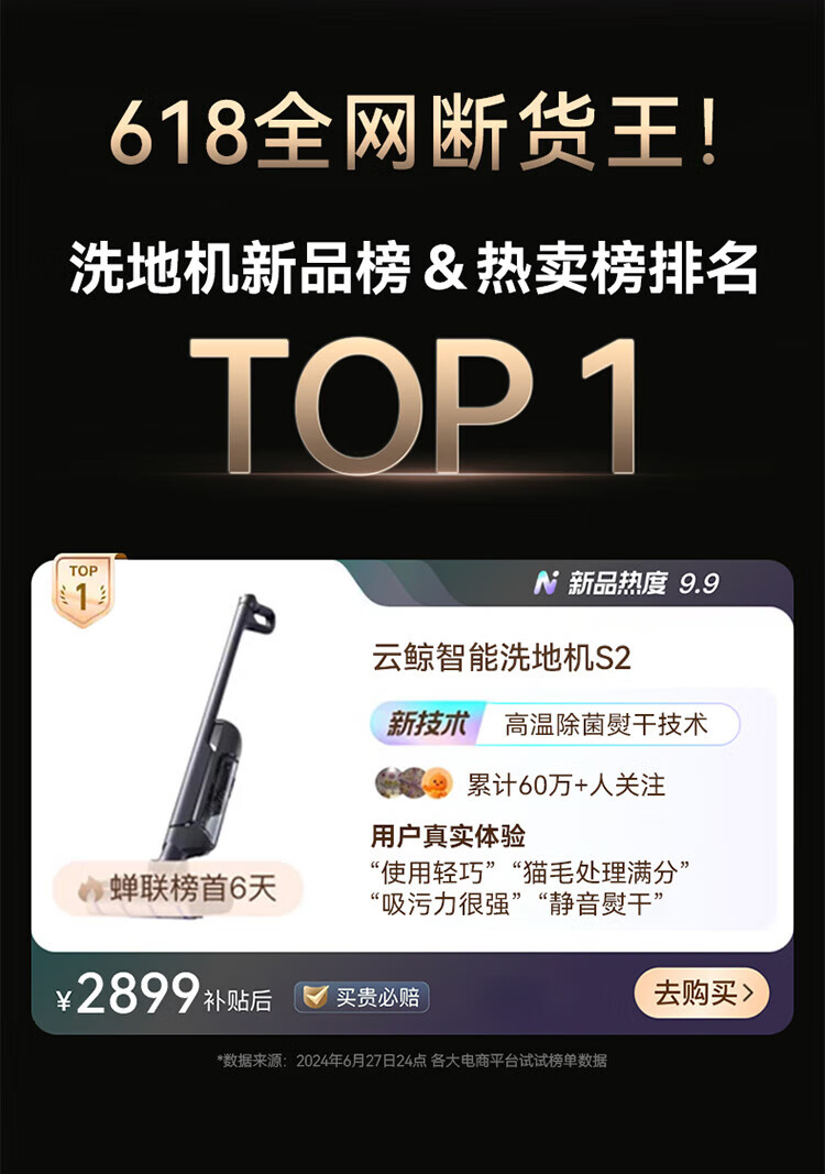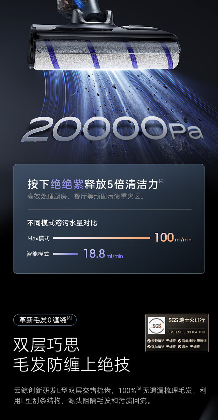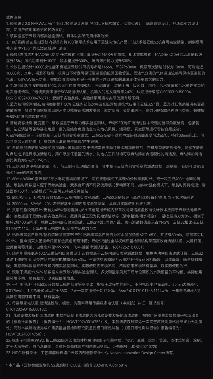 Cloud Whale Floor Scrubber S2 0 lint, sterilization and dirt dissolving 180 flat, long battery life, intelligent injection of cleaning fluid, self-cleaning, sweeping robot, mopping and suction mopping all in one