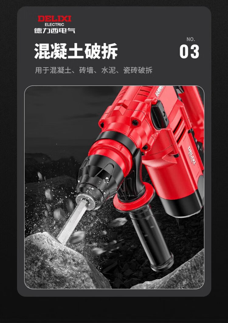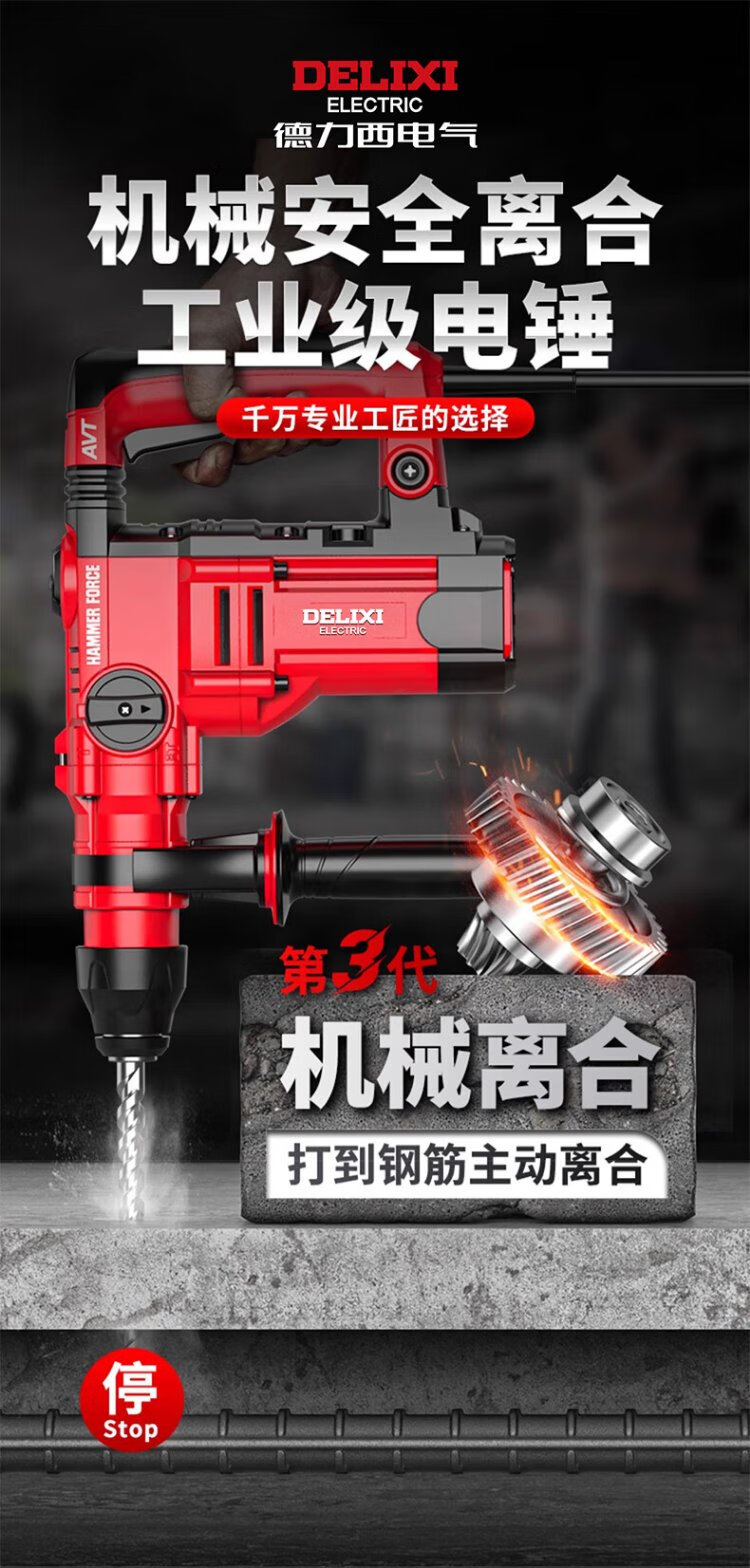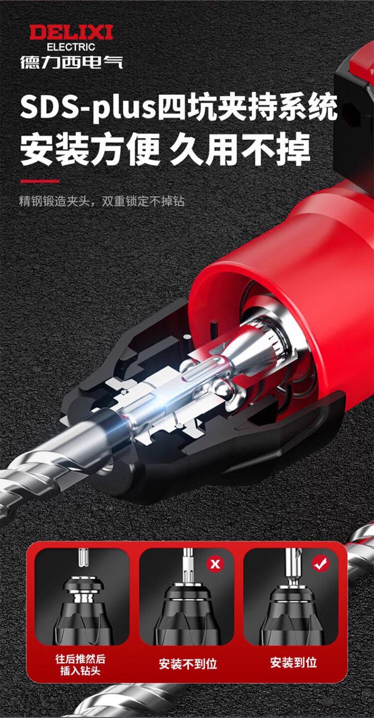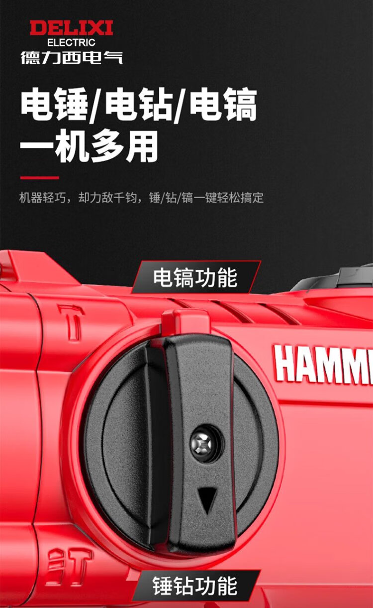 DELIXI electric hammer, electric pick, electric drill, high-power three-purpose impact drill for concrete, household multi-function electric hammer