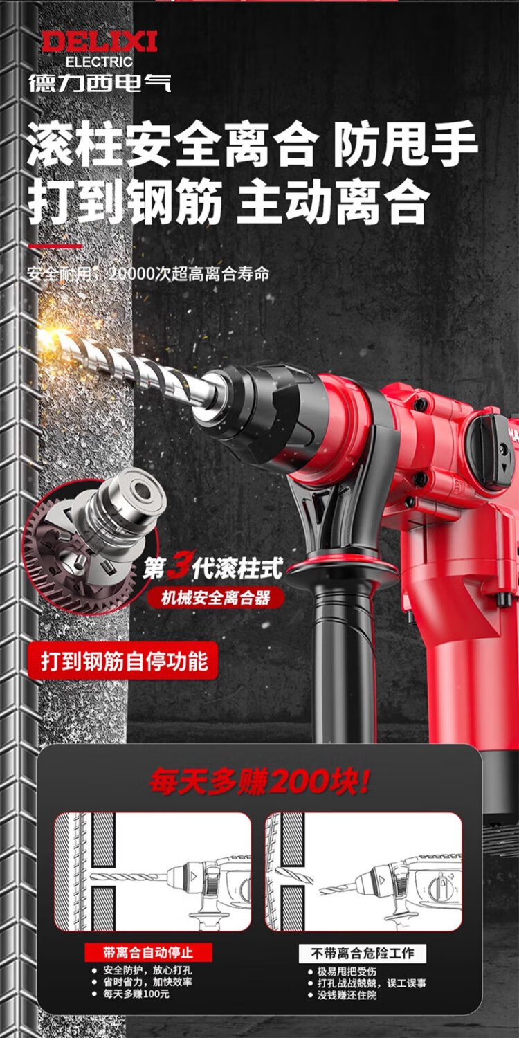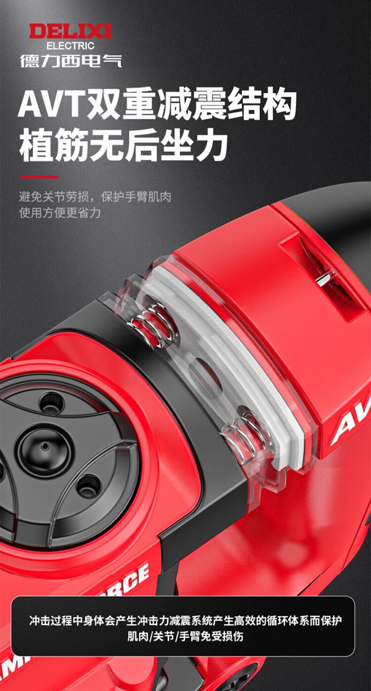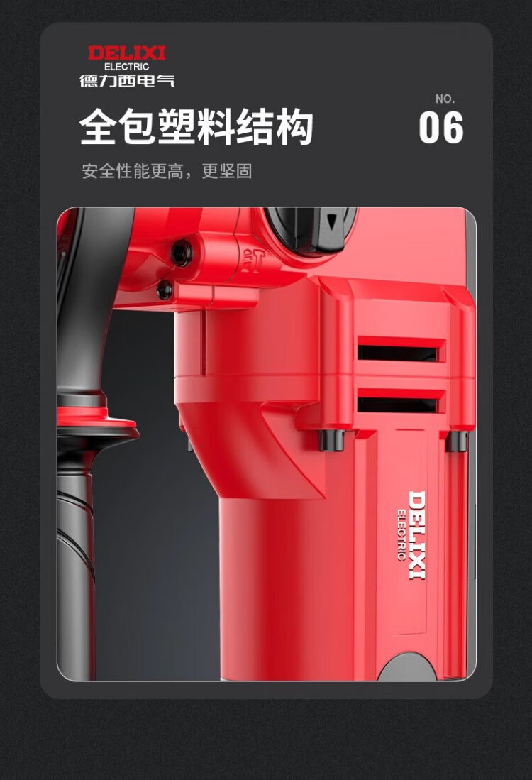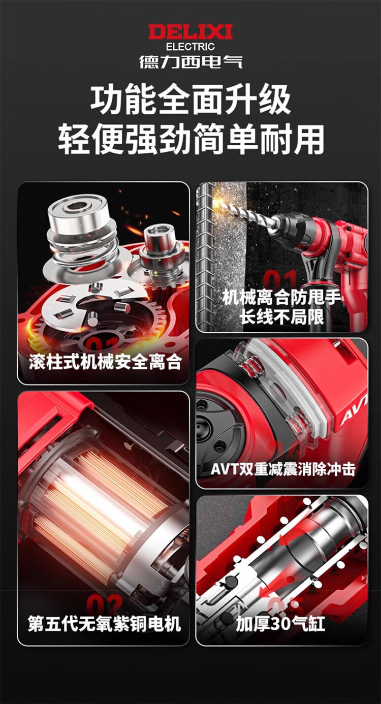 DELIXI electric hammer, electric pick, electric drill, high-power three-purpose impact drill for concrete, household multi-function electric hammer