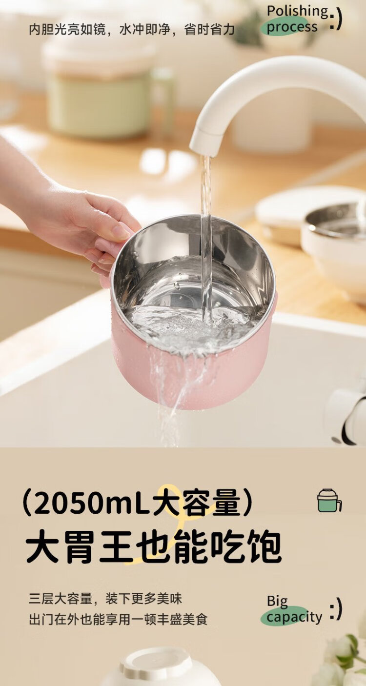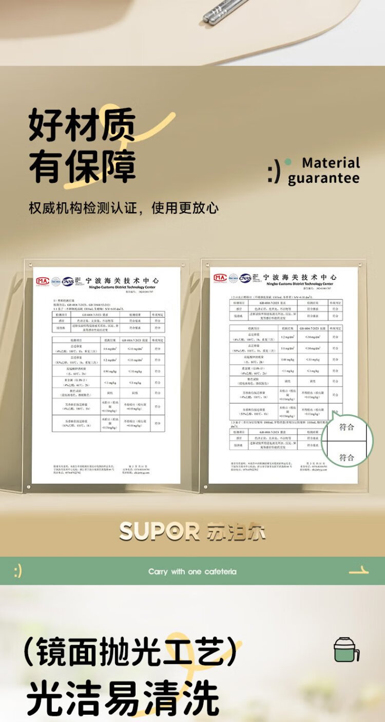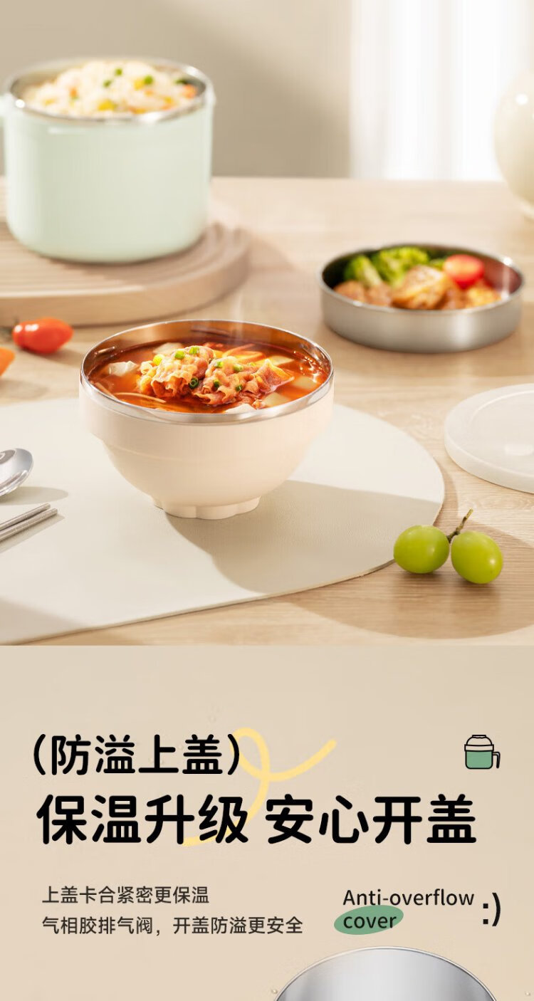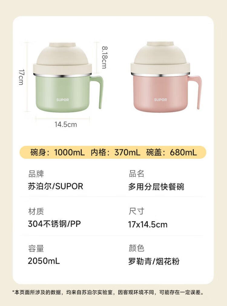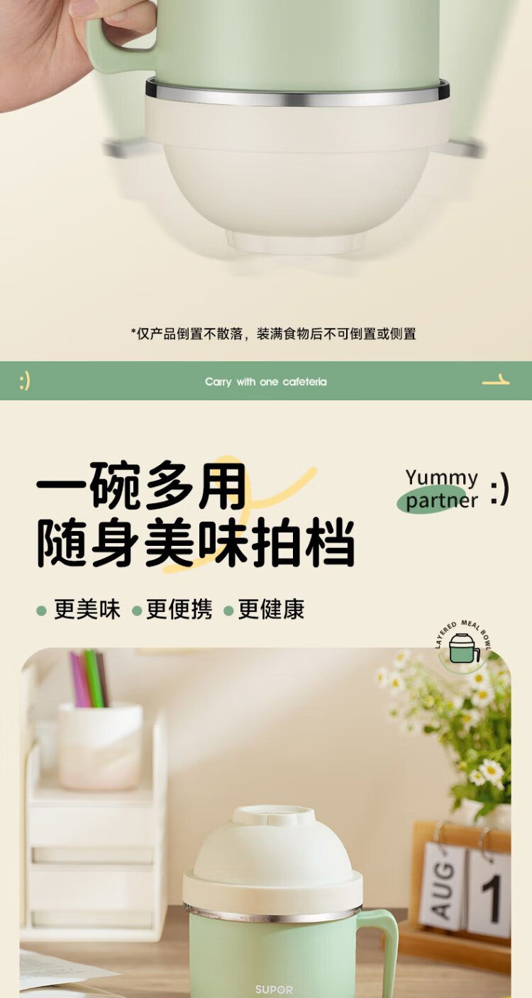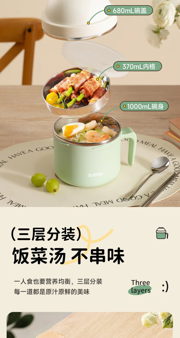 Supor student insulated lunch box children's 304 stainless steel instant noodle bowl with lid men's and women's canteen fast food cup