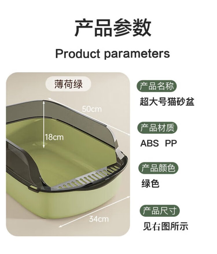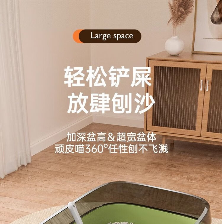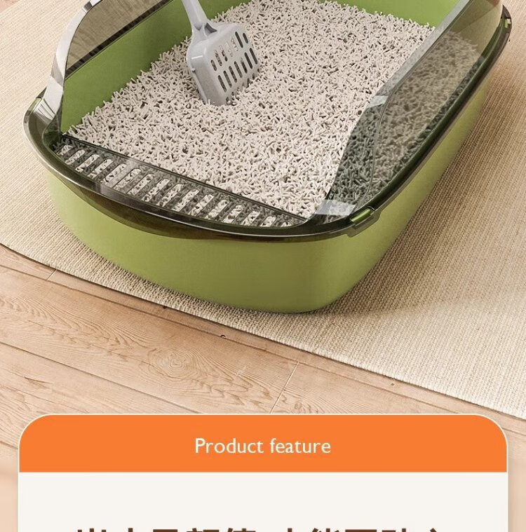 Licheers cat litter basin large heightened fence anti-splash cat toilet deodorant semi-enclosed simple cat poop basin with shovel