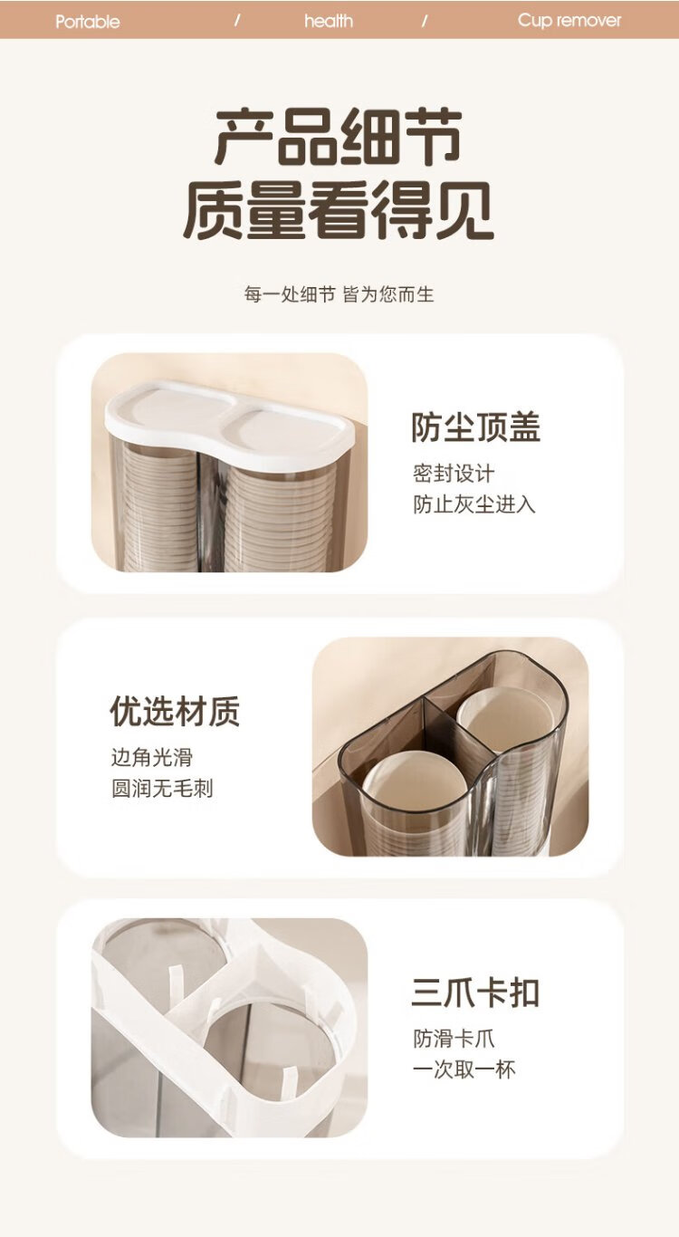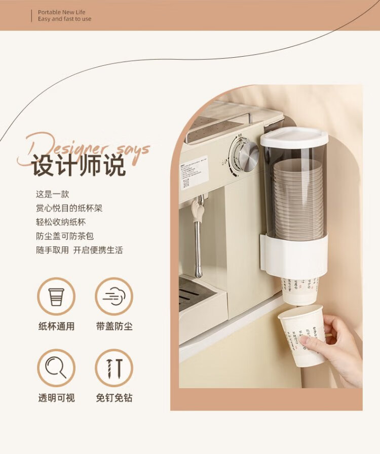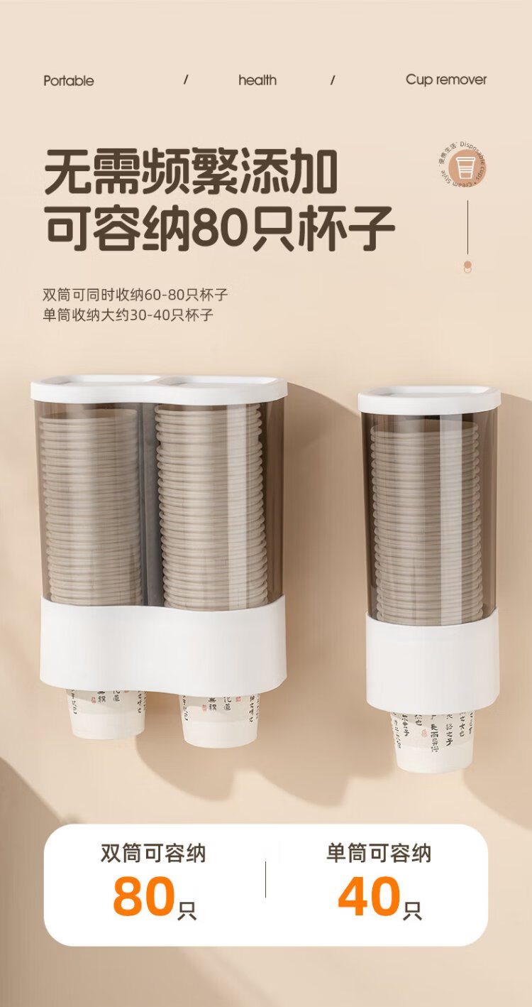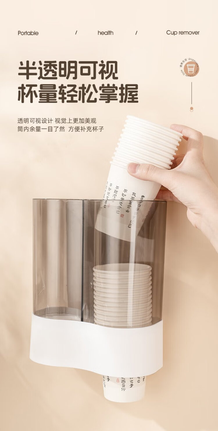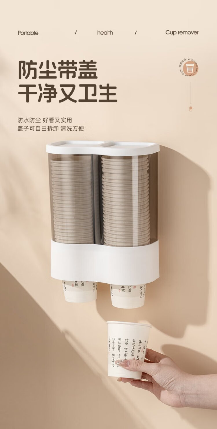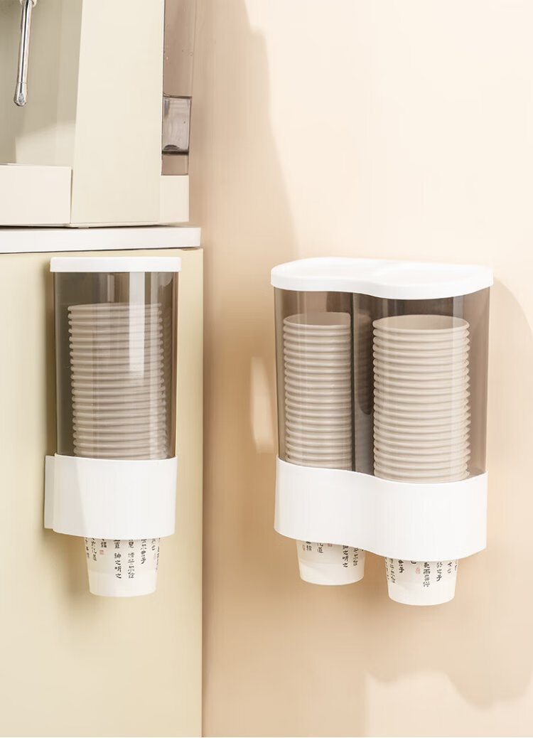 CAIZHI disposable paper cup holder water dispenser automatic cup taker plastic cup holder storage rack double barrel white CZ6931