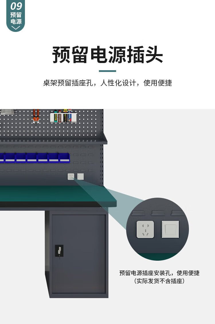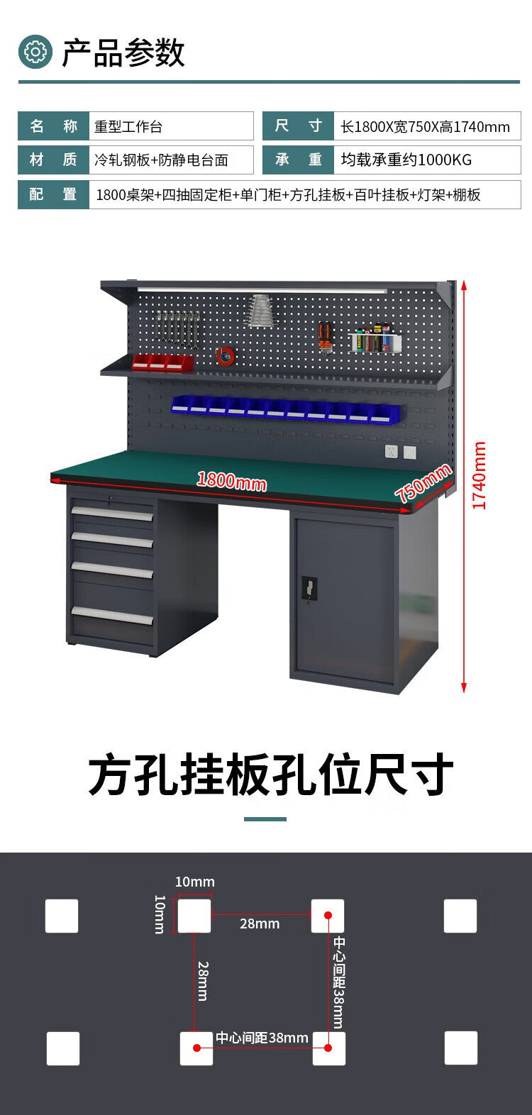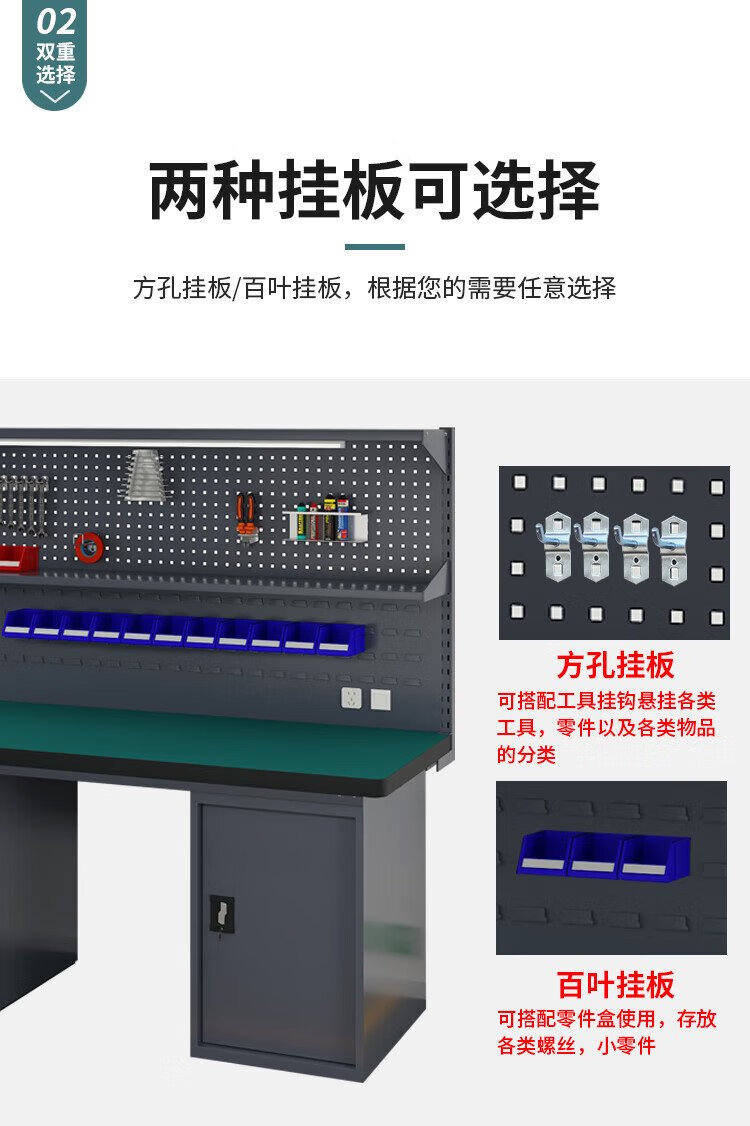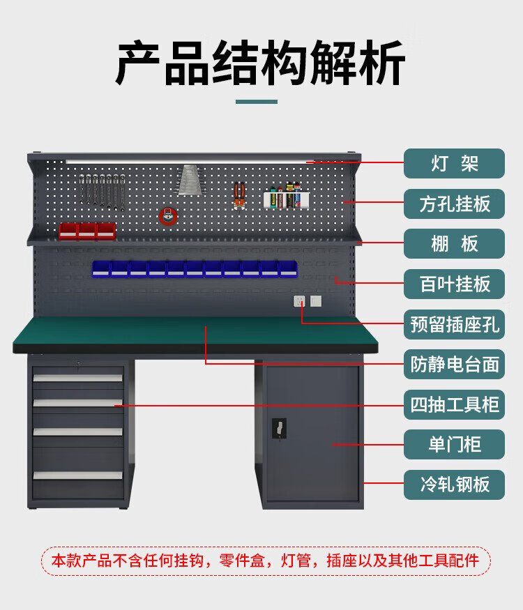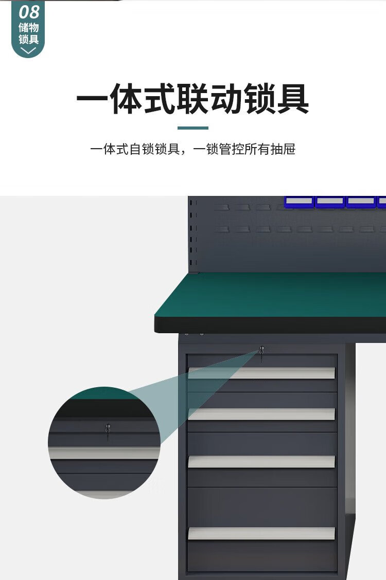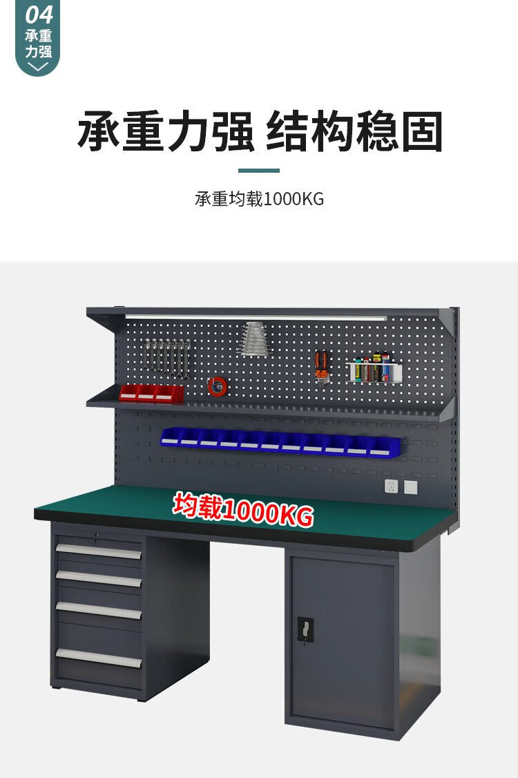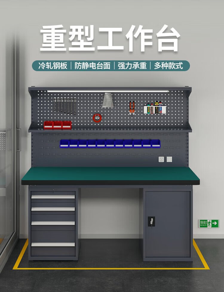 Huizhen heavy duty workbench factory operation maintenance table inspection bench 1.8 meters four drawers one door cabinet + double hanging plate HV847