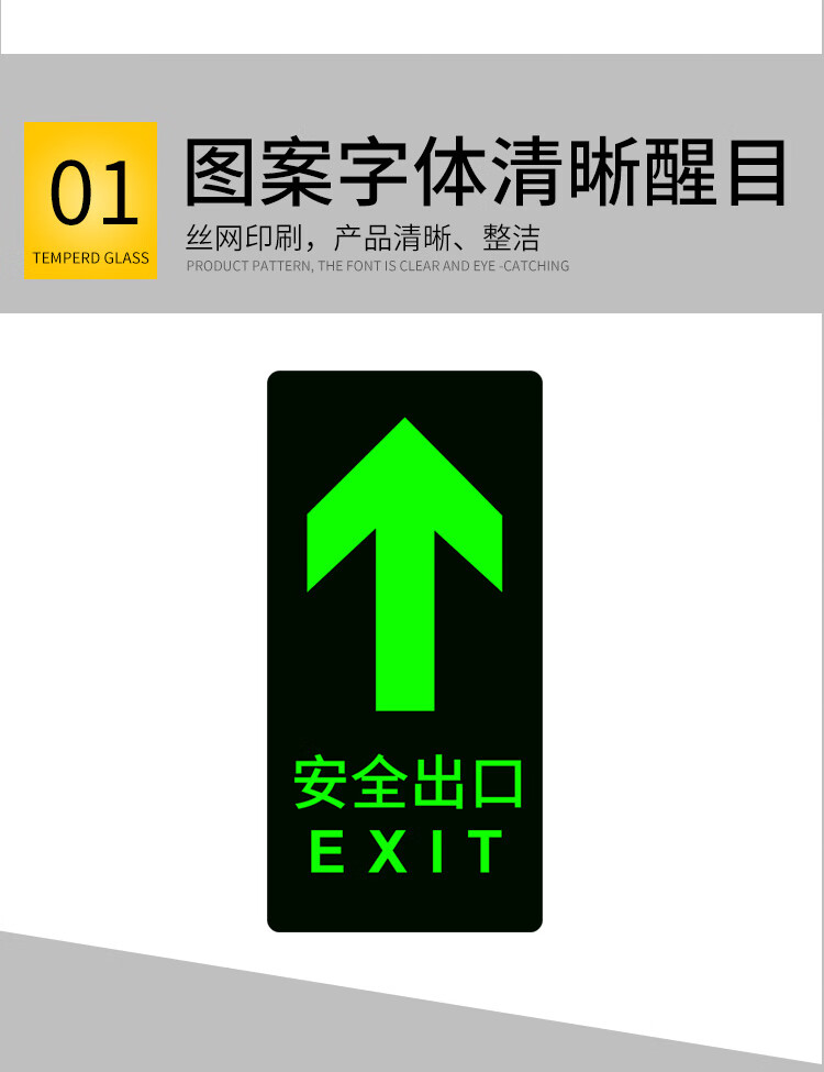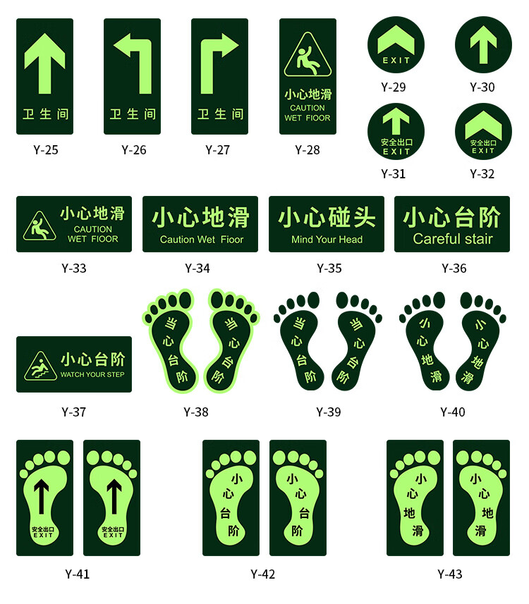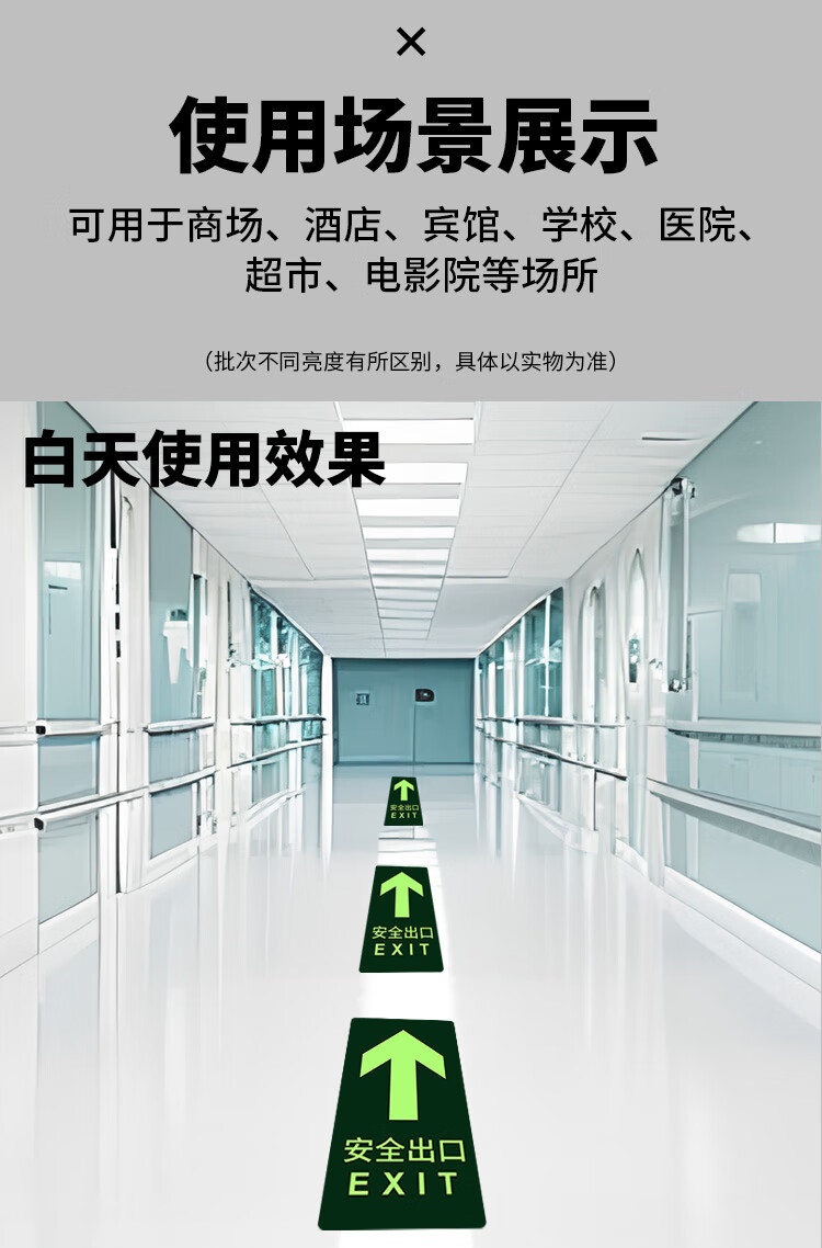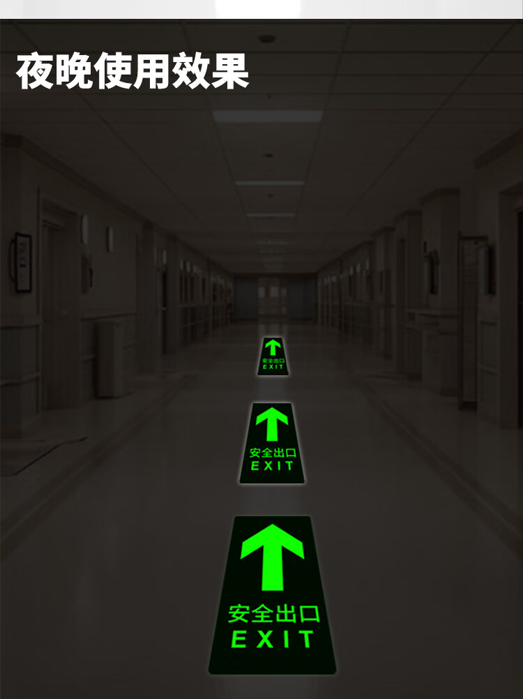 Yinchuanhui safety exit luminous stickers fire floor stickers luminous logo warning wall stickers 14.5*29CM self-luminous stickers 10 sheets