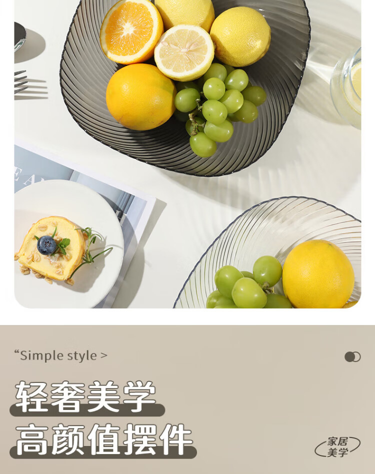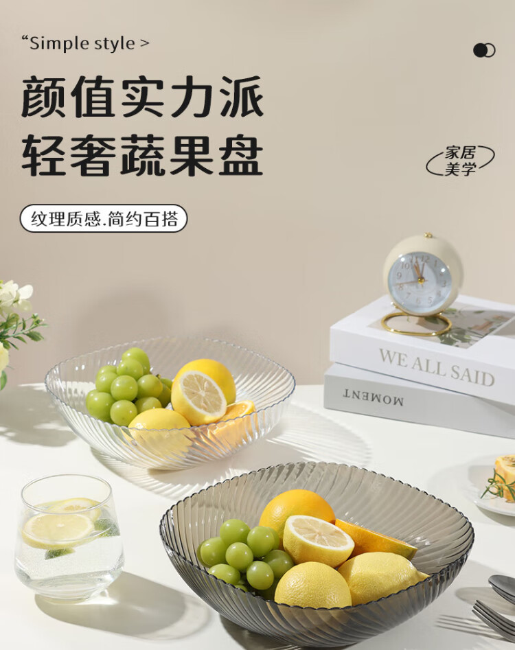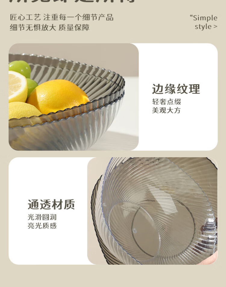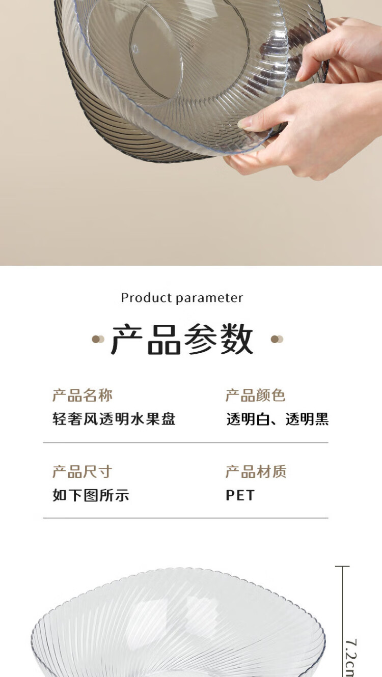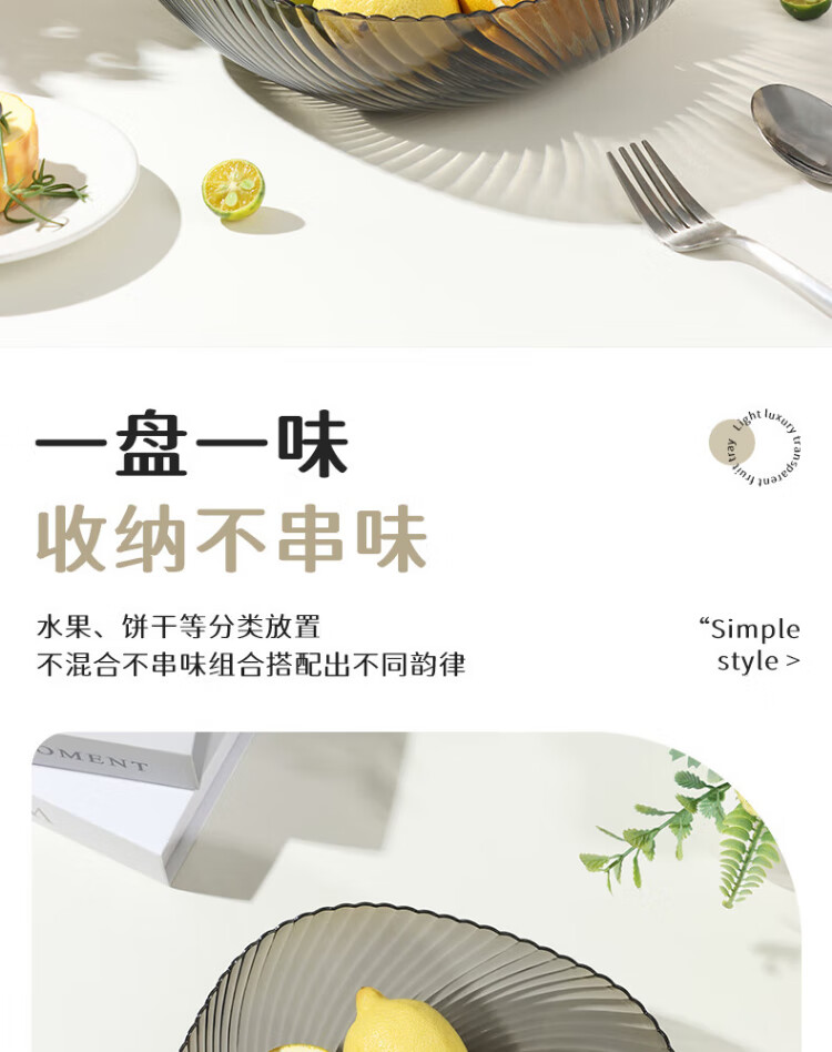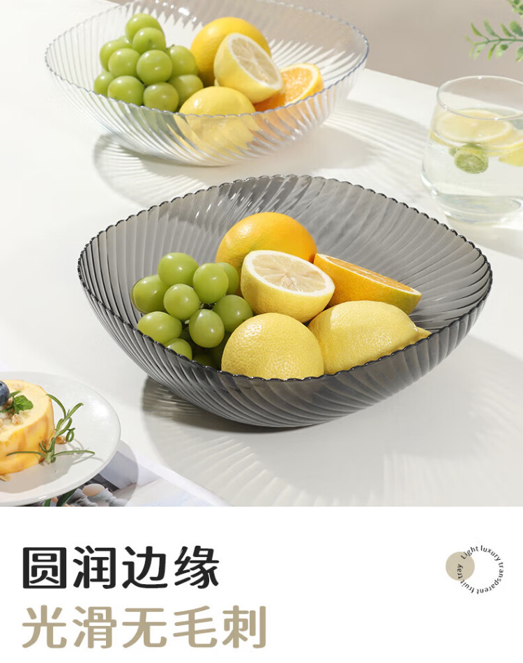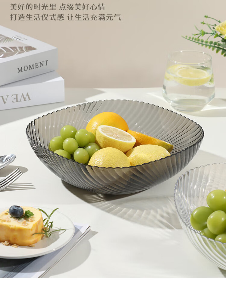 Baiji fruit plate snack plate living room household dry fruit plate tray candy nut plate transparent gray transparent mixed color two-piece set