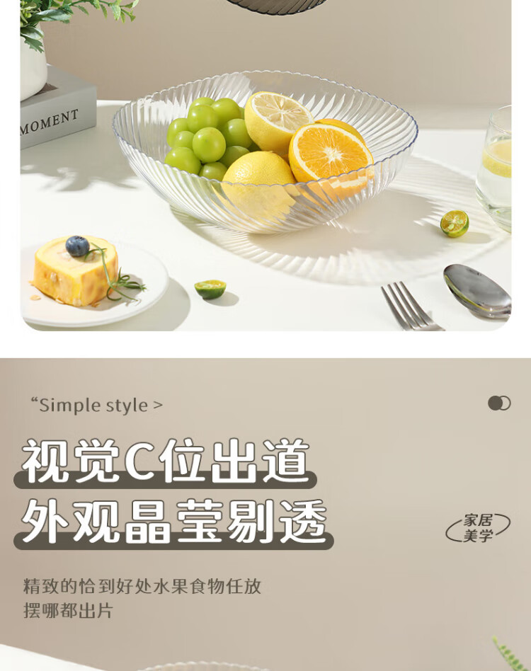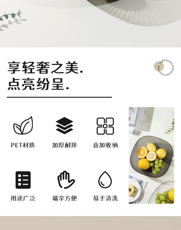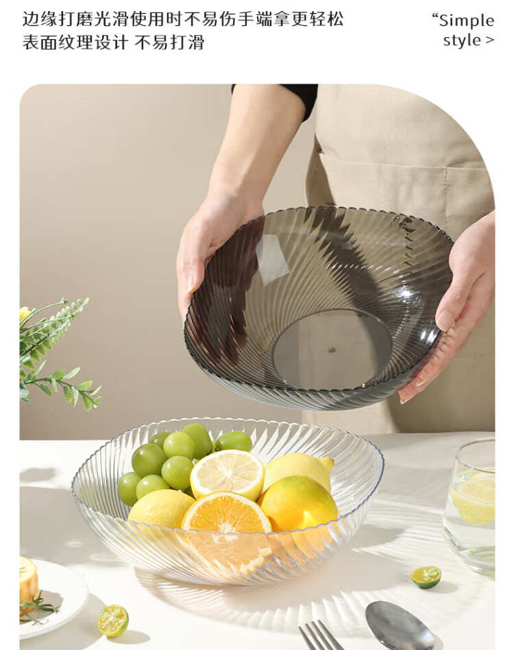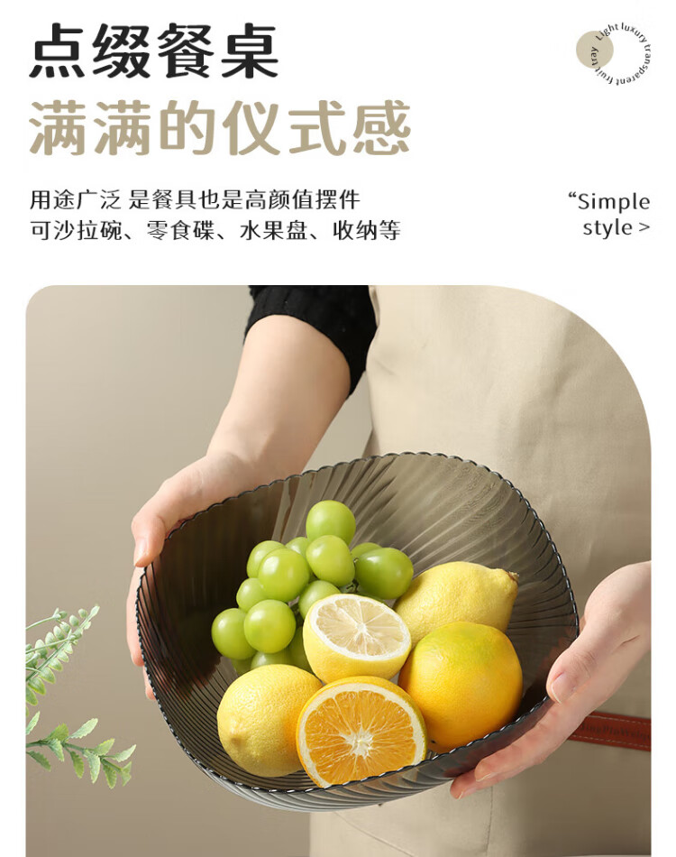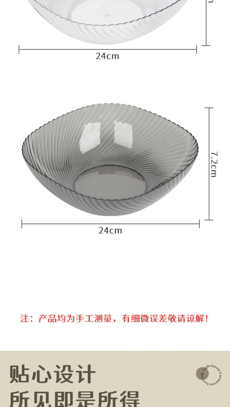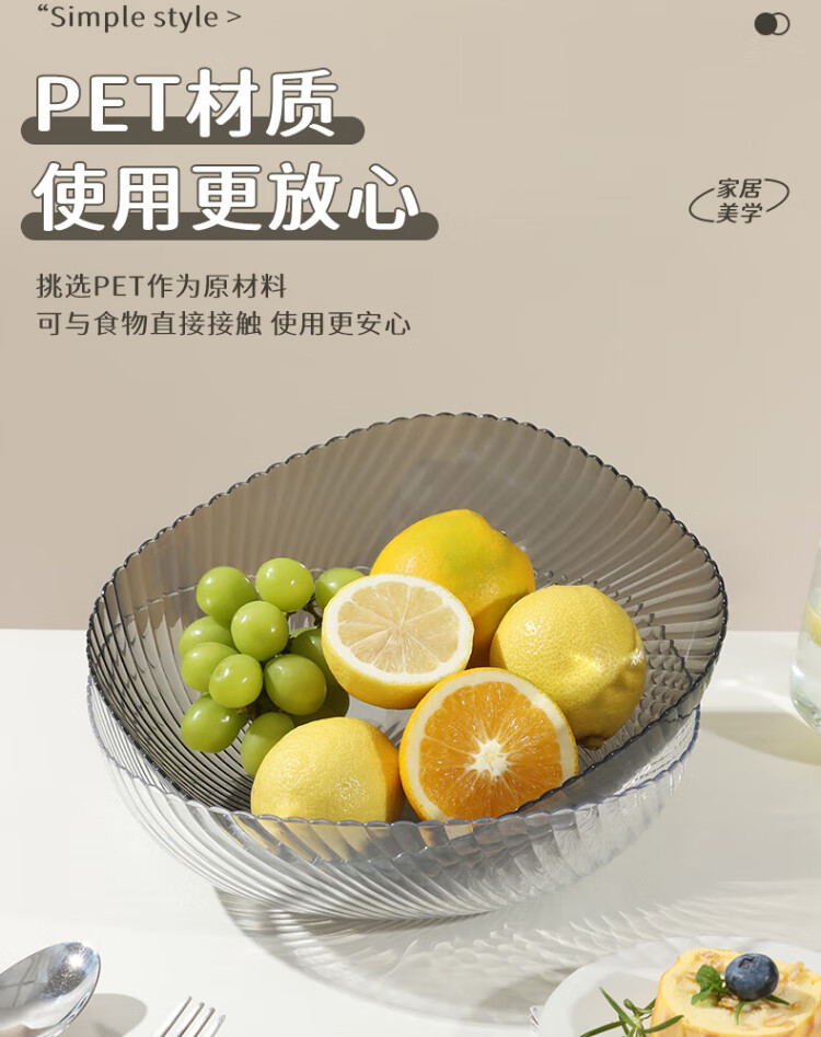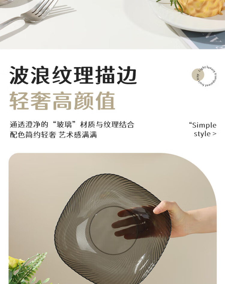 Baiji fruit plate snack plate living room household dry fruit plate tray candy nut plate transparent gray transparent mixed color two-piece set