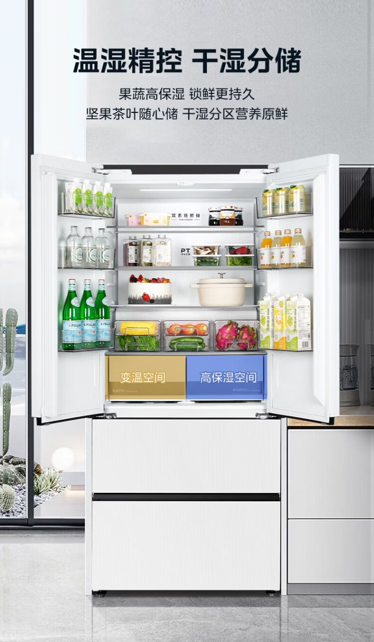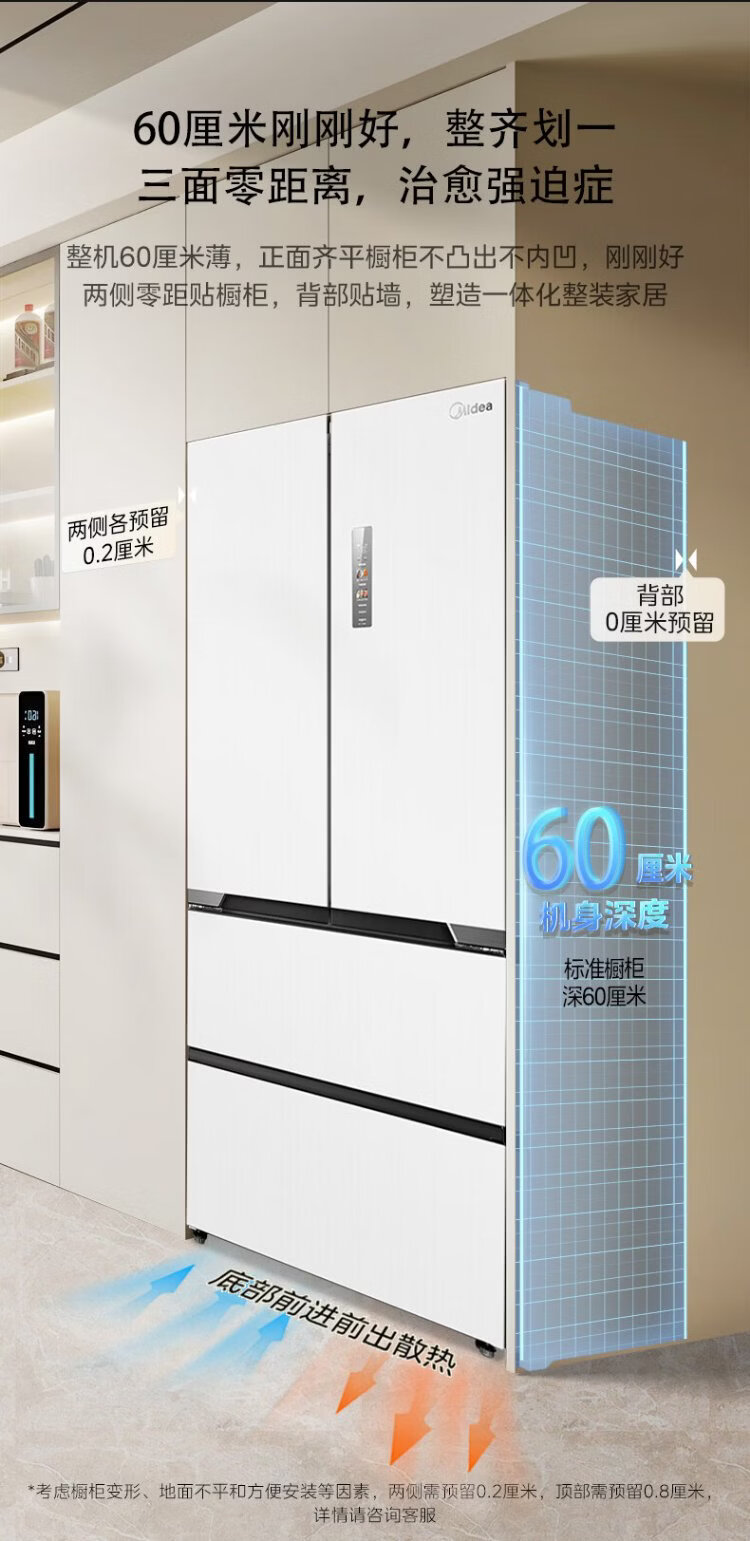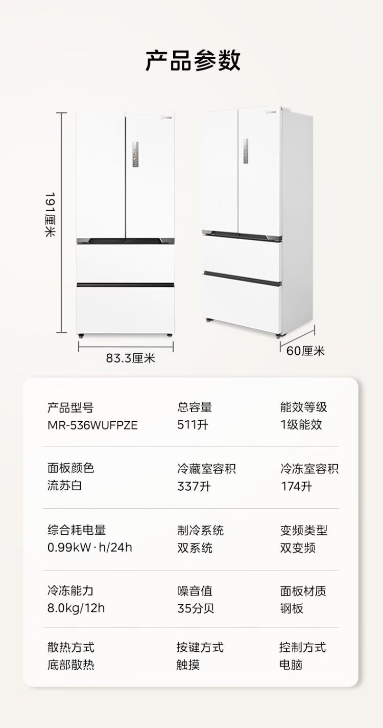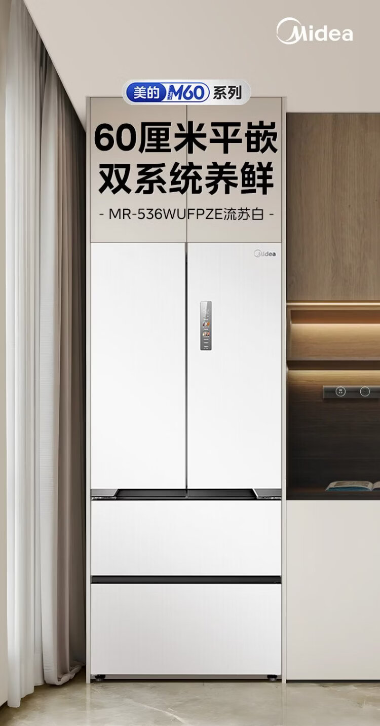 Midea 536 French four-door refrigerator 511L large capacity ultra-thin embedded dual system first-level energy efficiency air-cooled frost-free trade-in white MR-536WUFPZE national subsidy