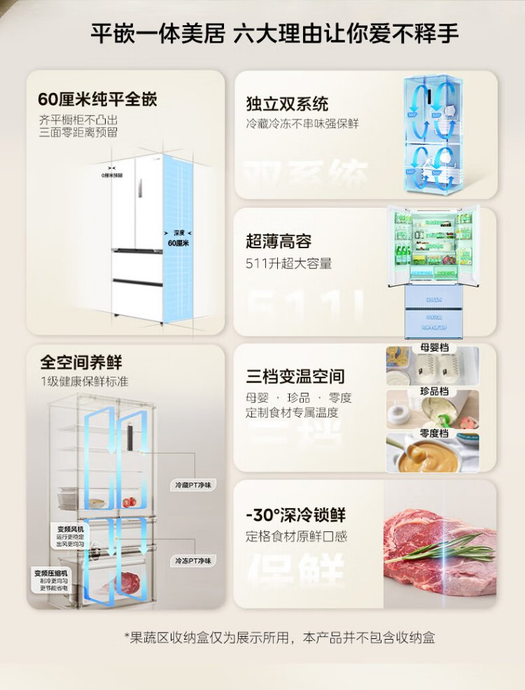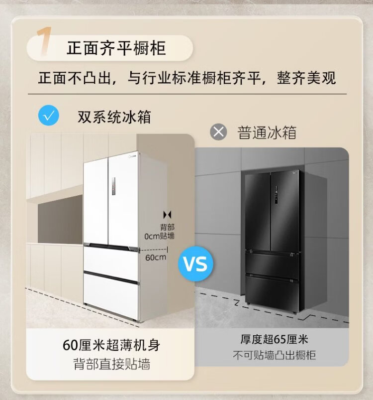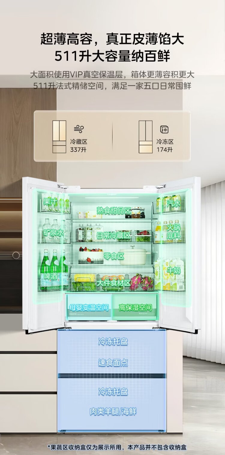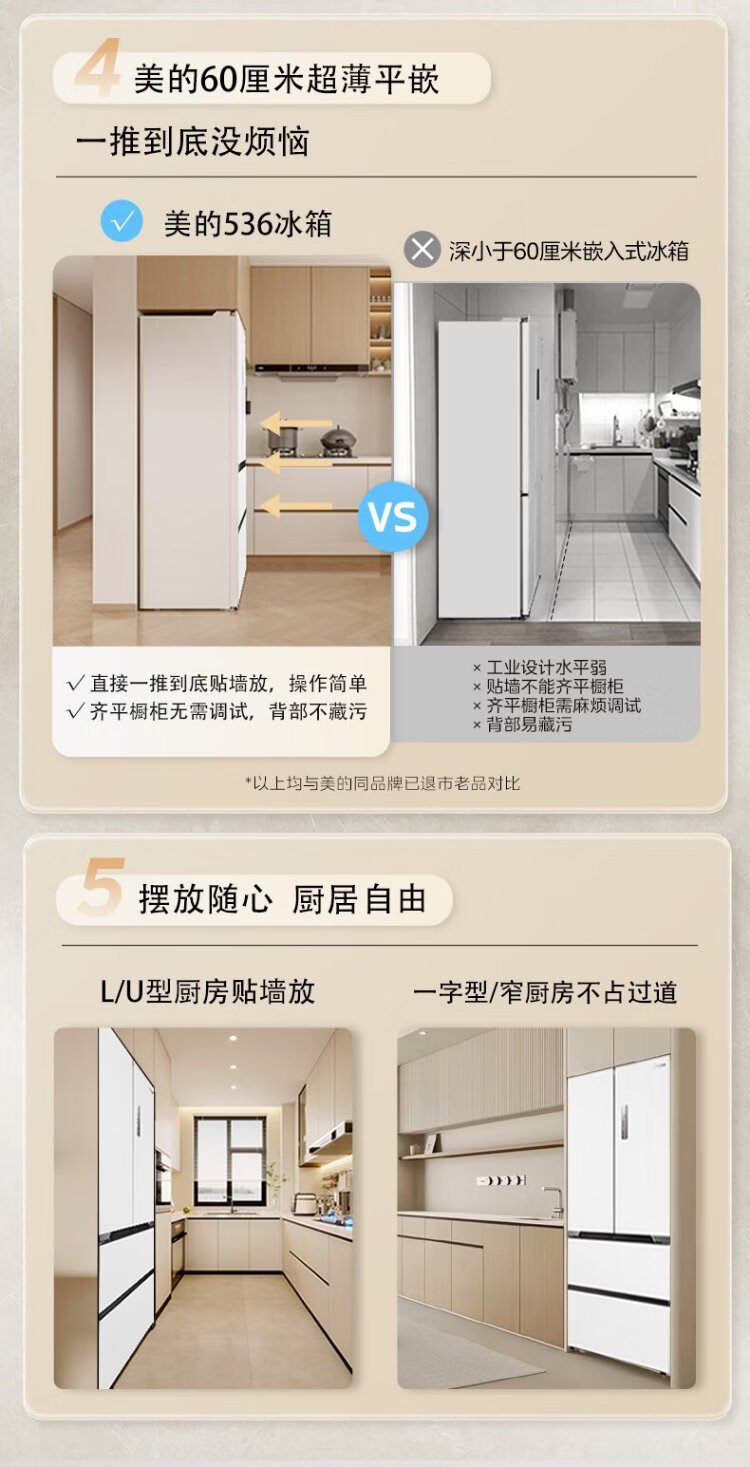 Midea 536 French four-door refrigerator 511L large capacity ultra-thin embedded dual system first-level energy efficiency air-cooled frost-free trade-in white MR-536WUFPZE national subsidy