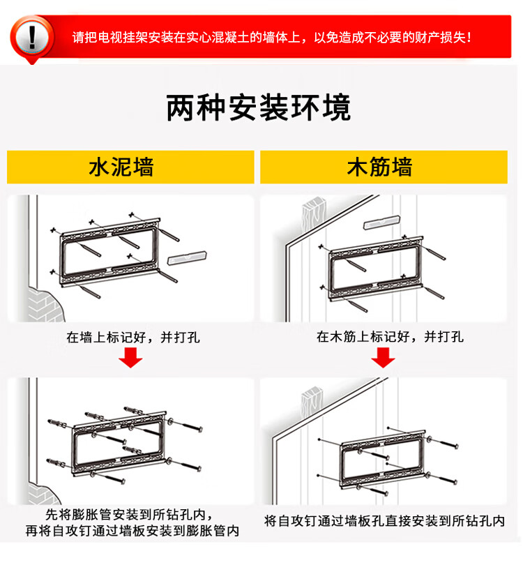 ProPre TV Mount 26-65 inches Universal TV Bracket is suitable for Hisense Skyworth Sony Konka TCL Haier Huawei Smart Screen LCD and other brand universal wall mounts