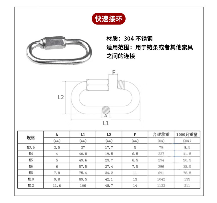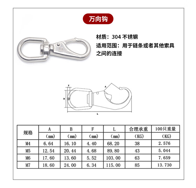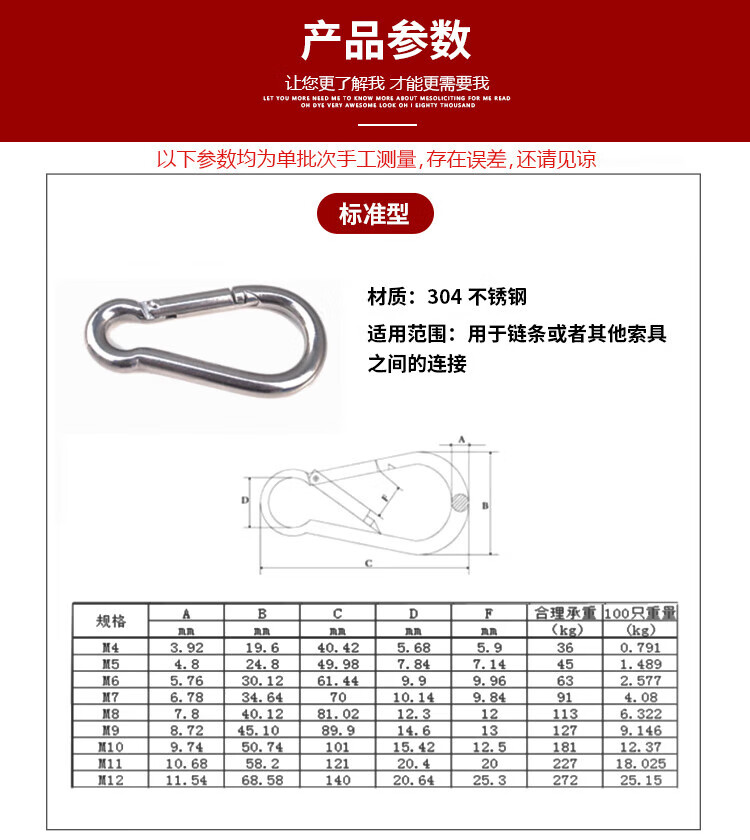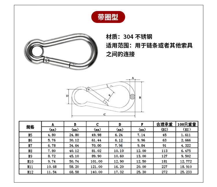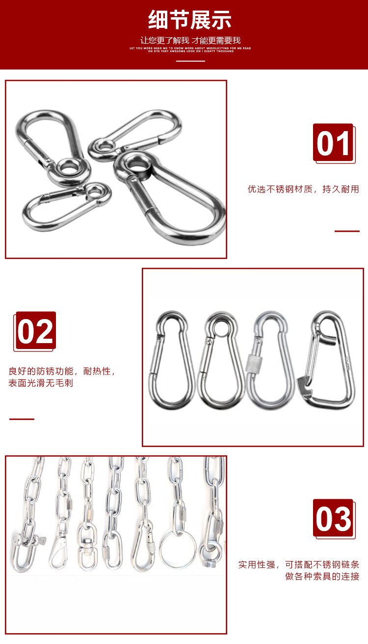 Hasdick Beijing warehouse delivery 304 stainless steel spring buckle safety buckle M6 (standard type) HKsq-715
