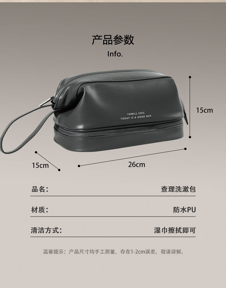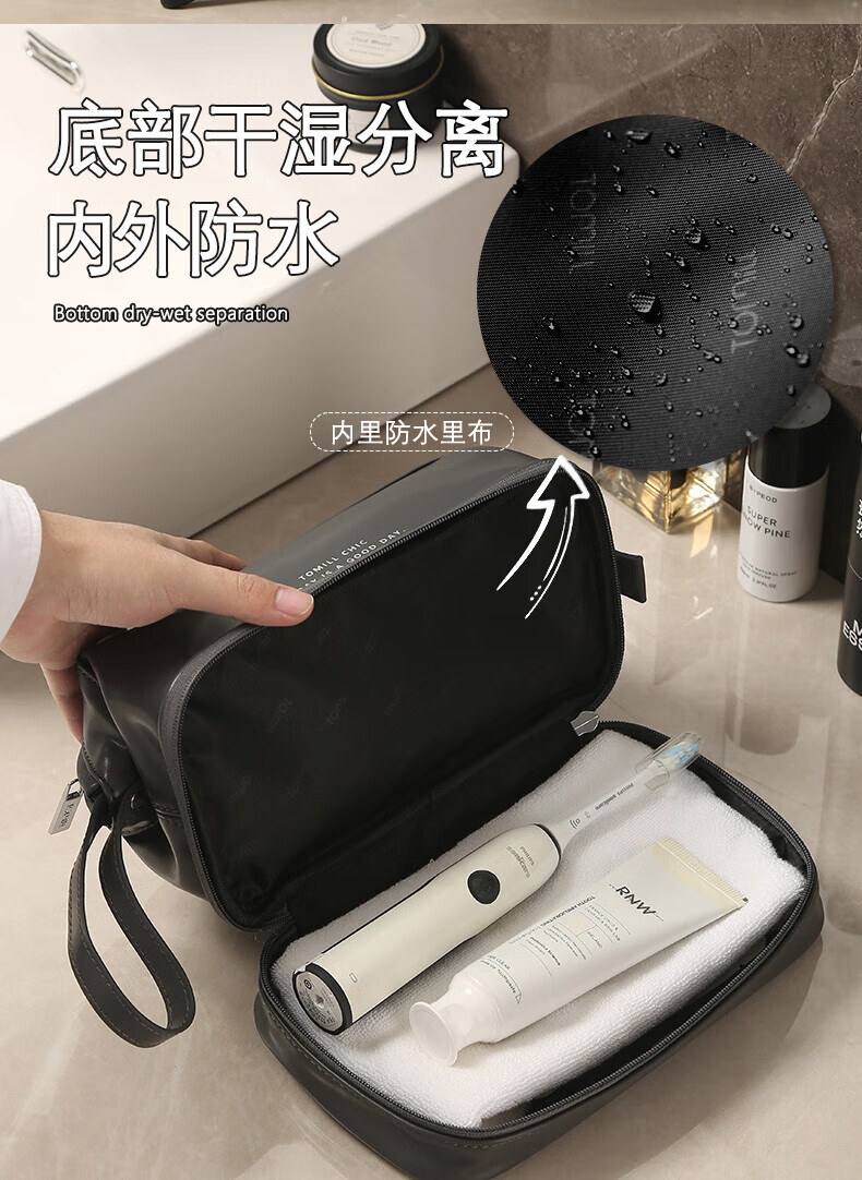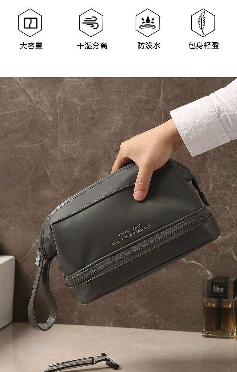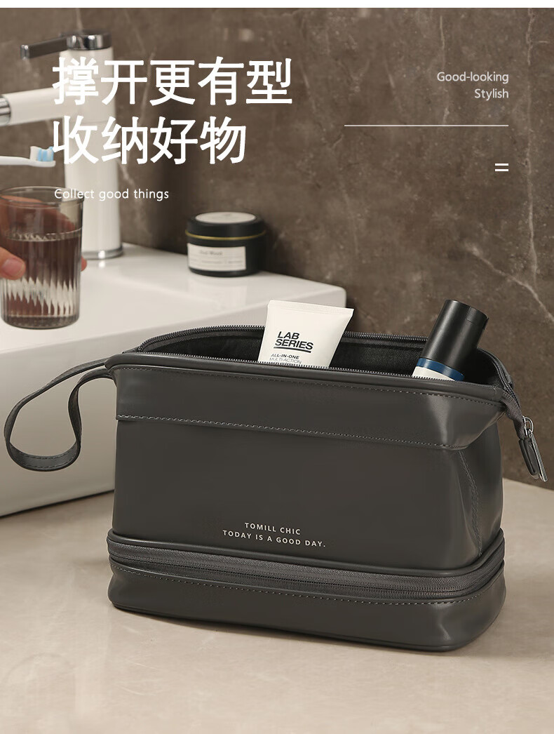 ToMill Toiletries Bag Men's Travel Toiletries Set Storage Bag Portable Large Capacity Cosmetic Bag Charlie Gray