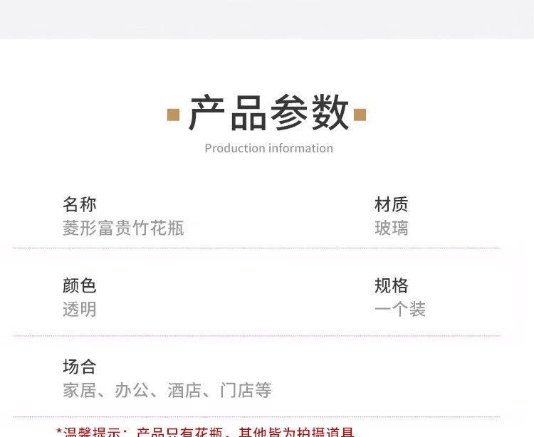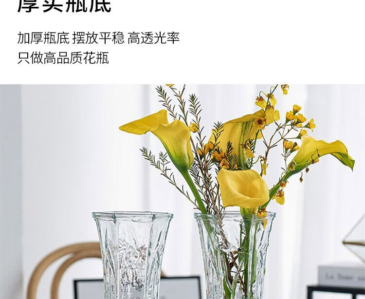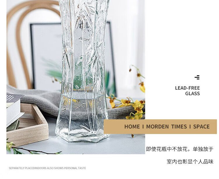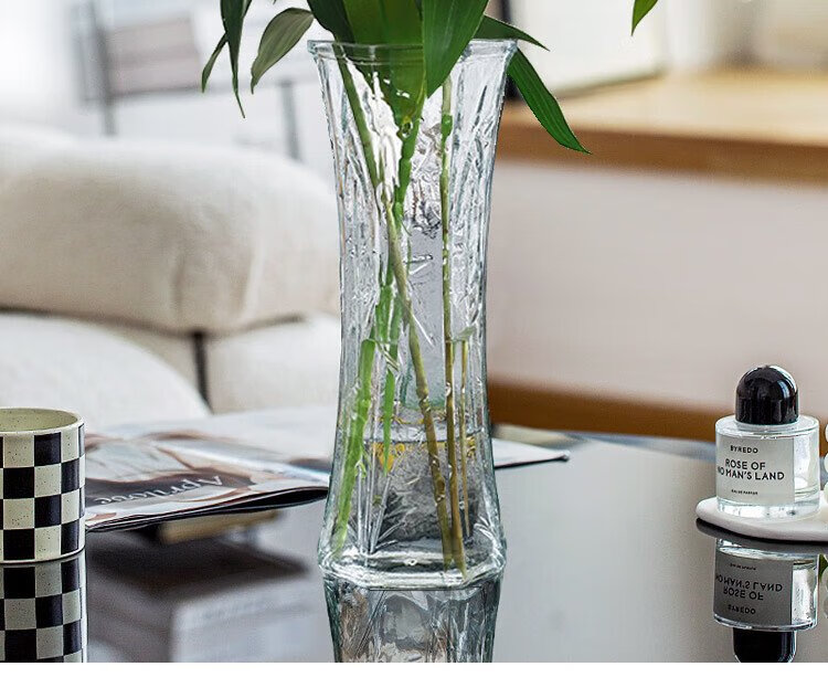 Extreme Space Glass Vase Living Room Decoration Desktop Decoration Hydroponic Flower Arrangement Transparent Glass Vase Diamond-shaped Lucky Bamboo