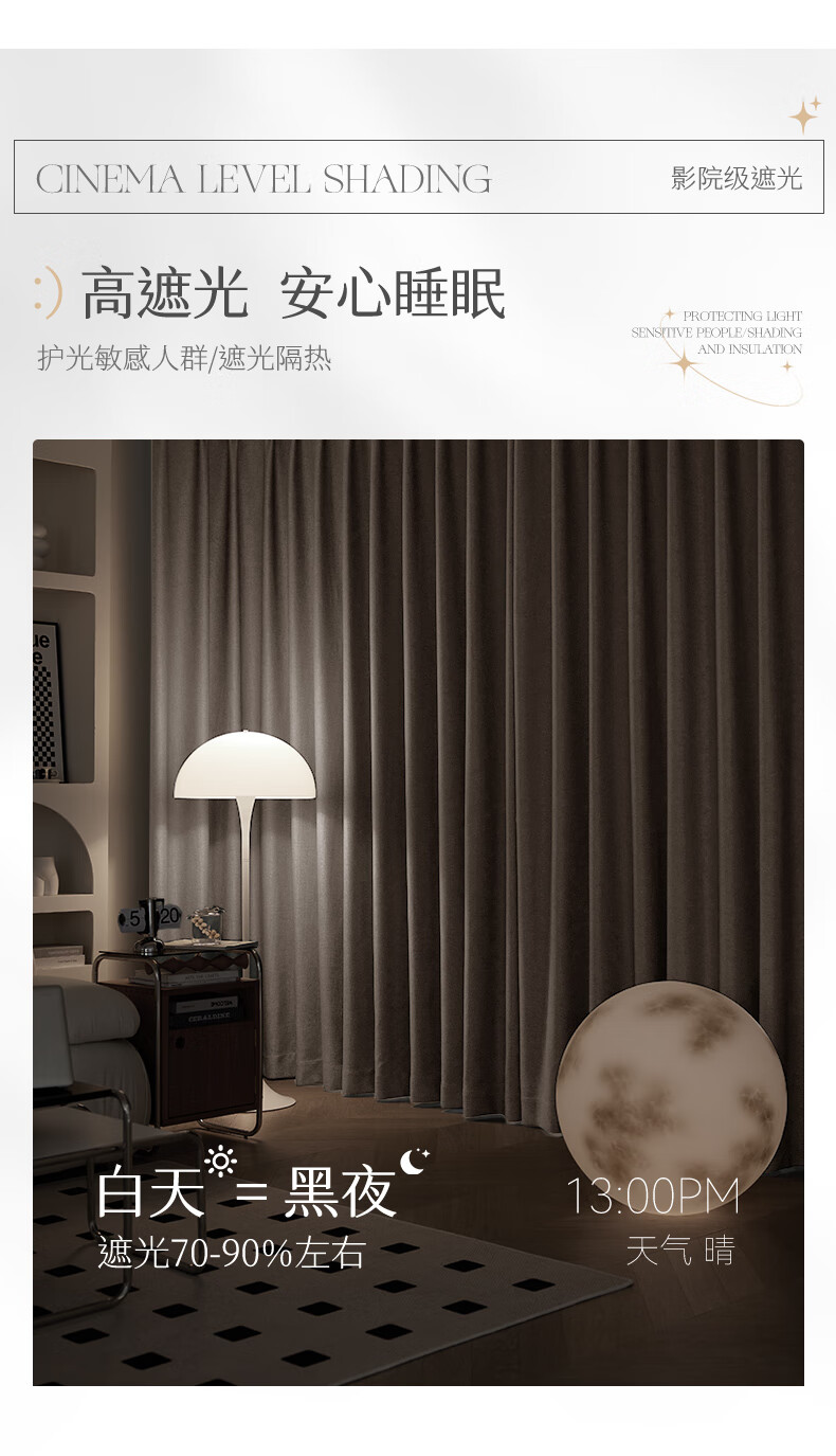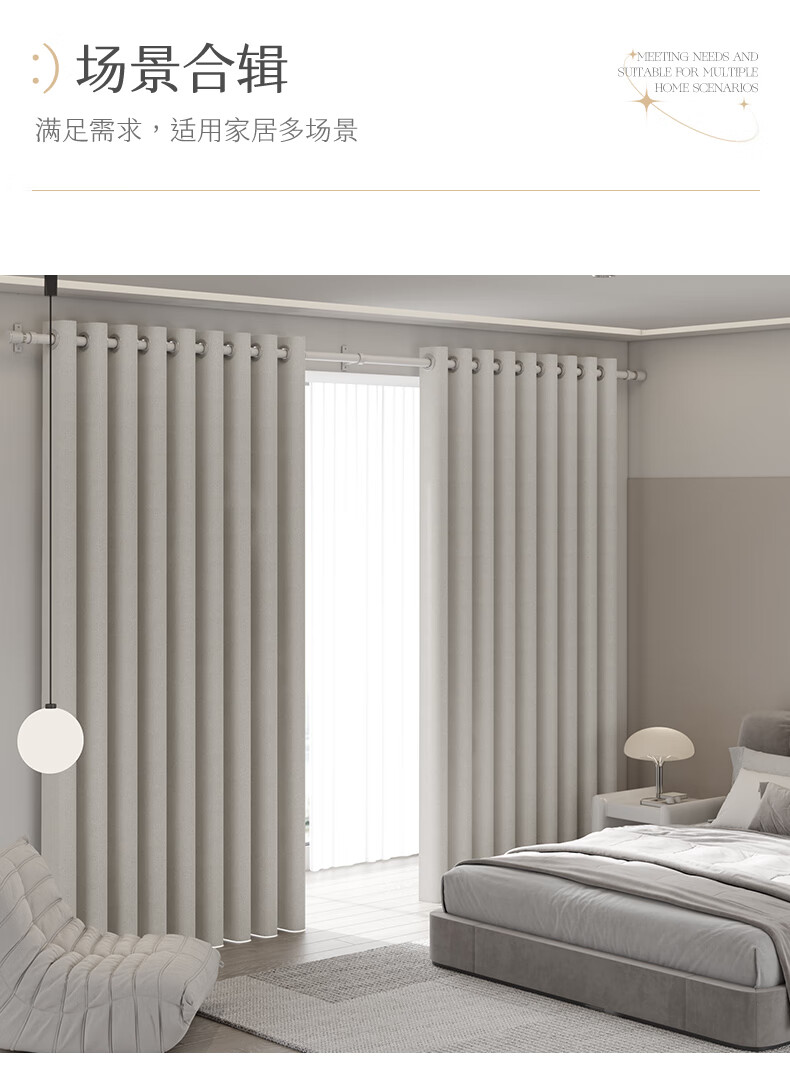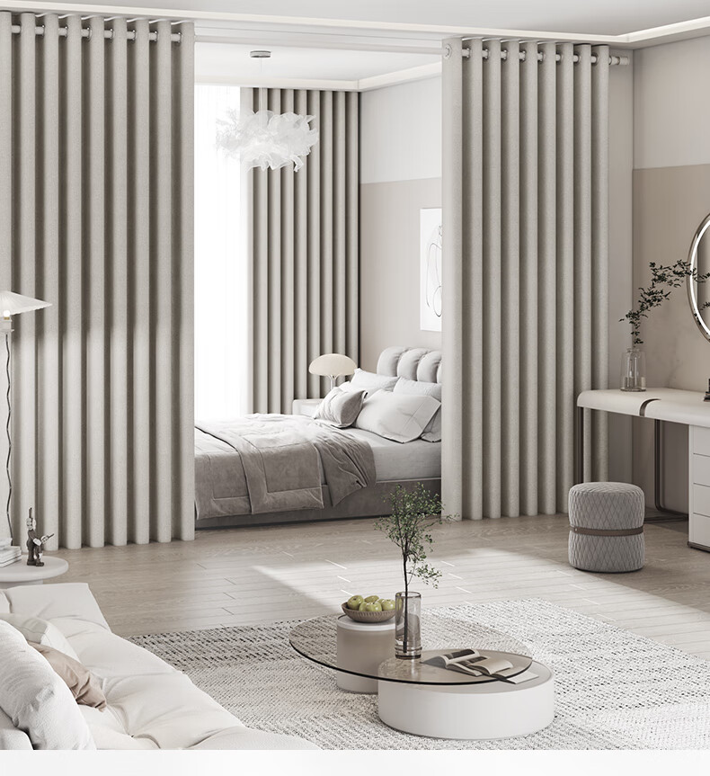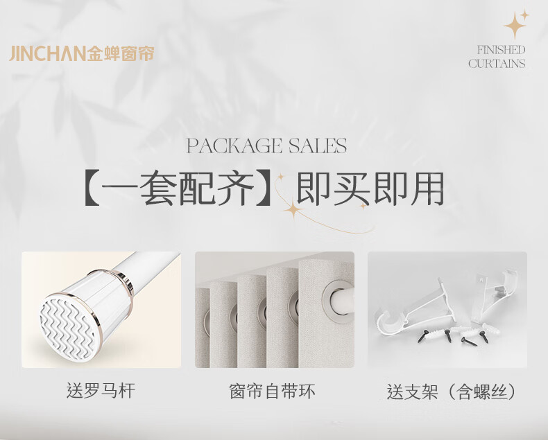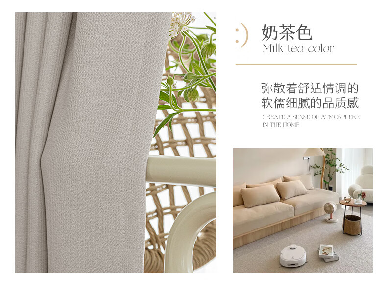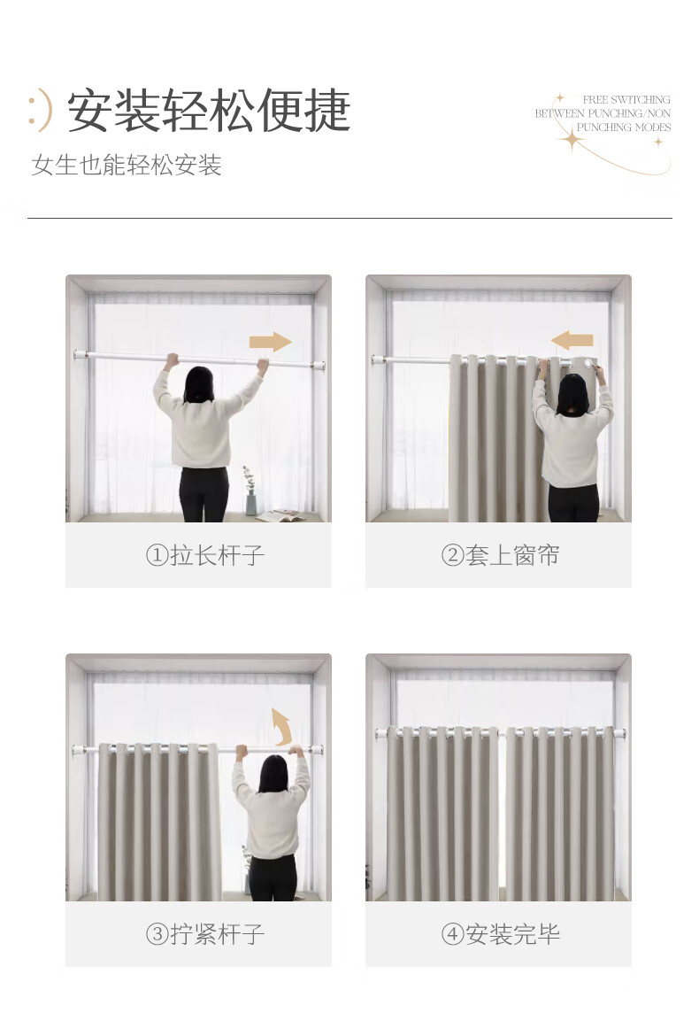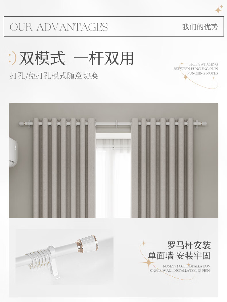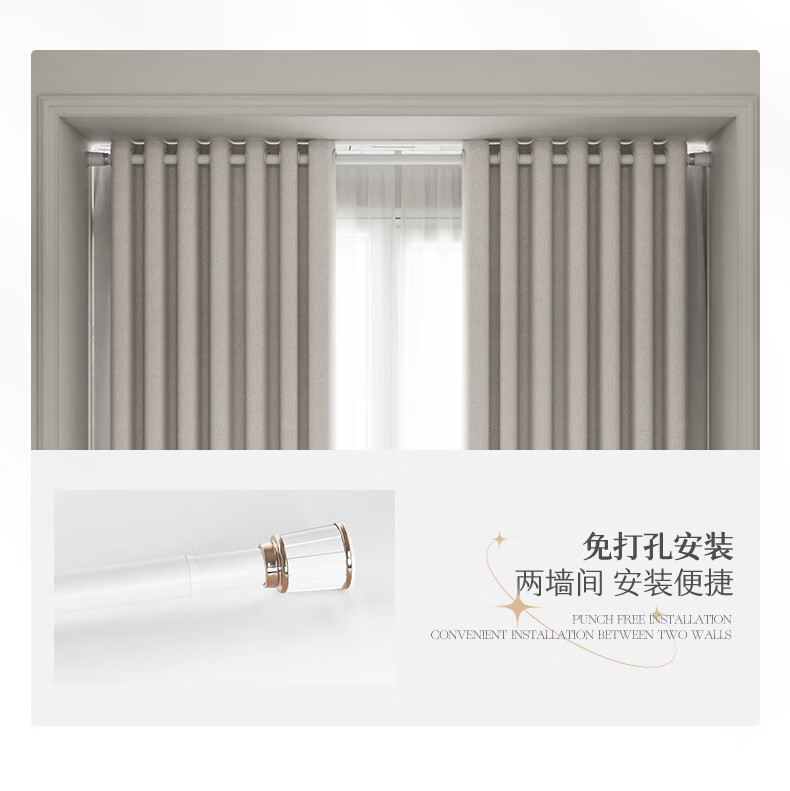 Jinchan curtains can be installed without drilling for living room, bedroom, blackout, household curtain track, complete set, milk tea color 2.5*2.7