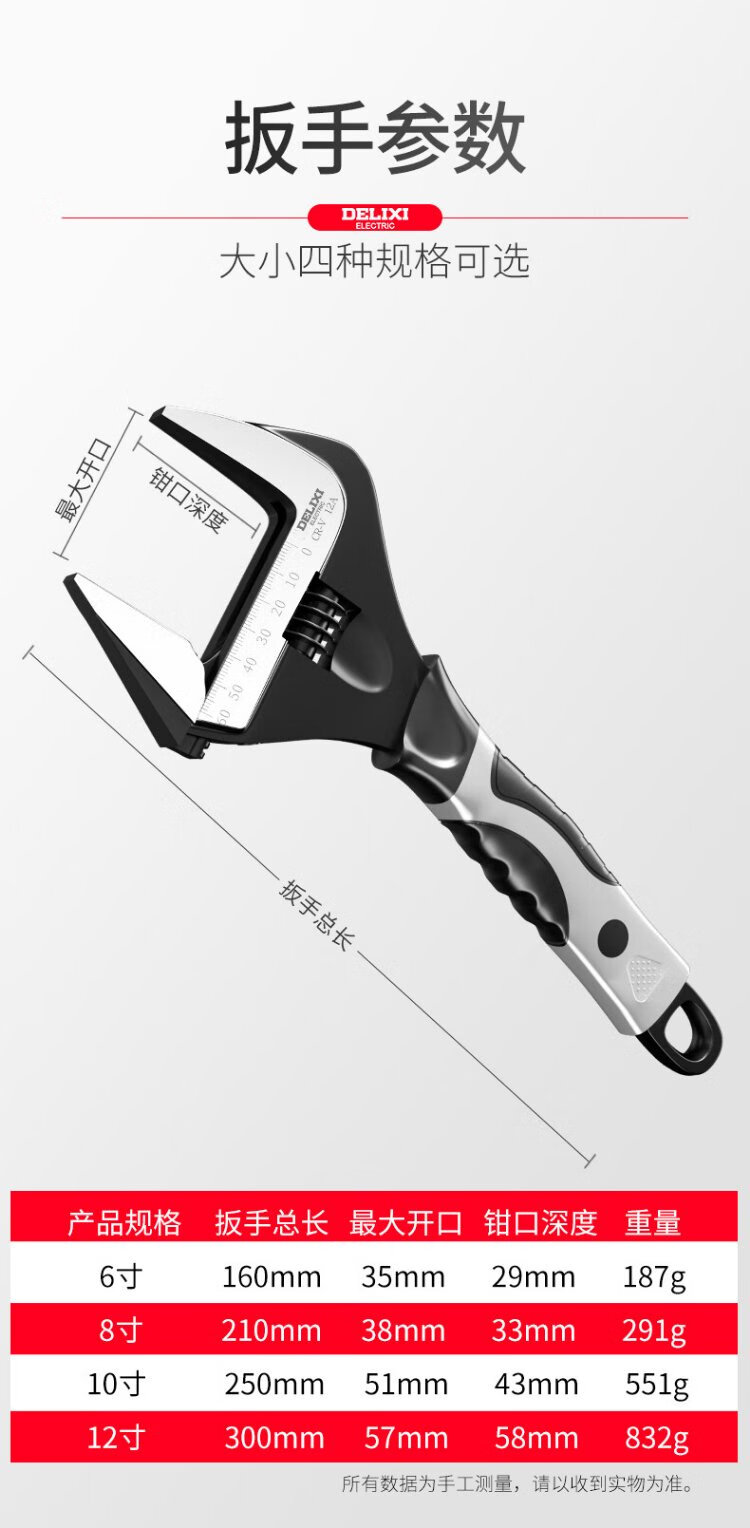Delixi adjustable wrench tool live large opening multi-functional bathroom board mover universal universal wrench