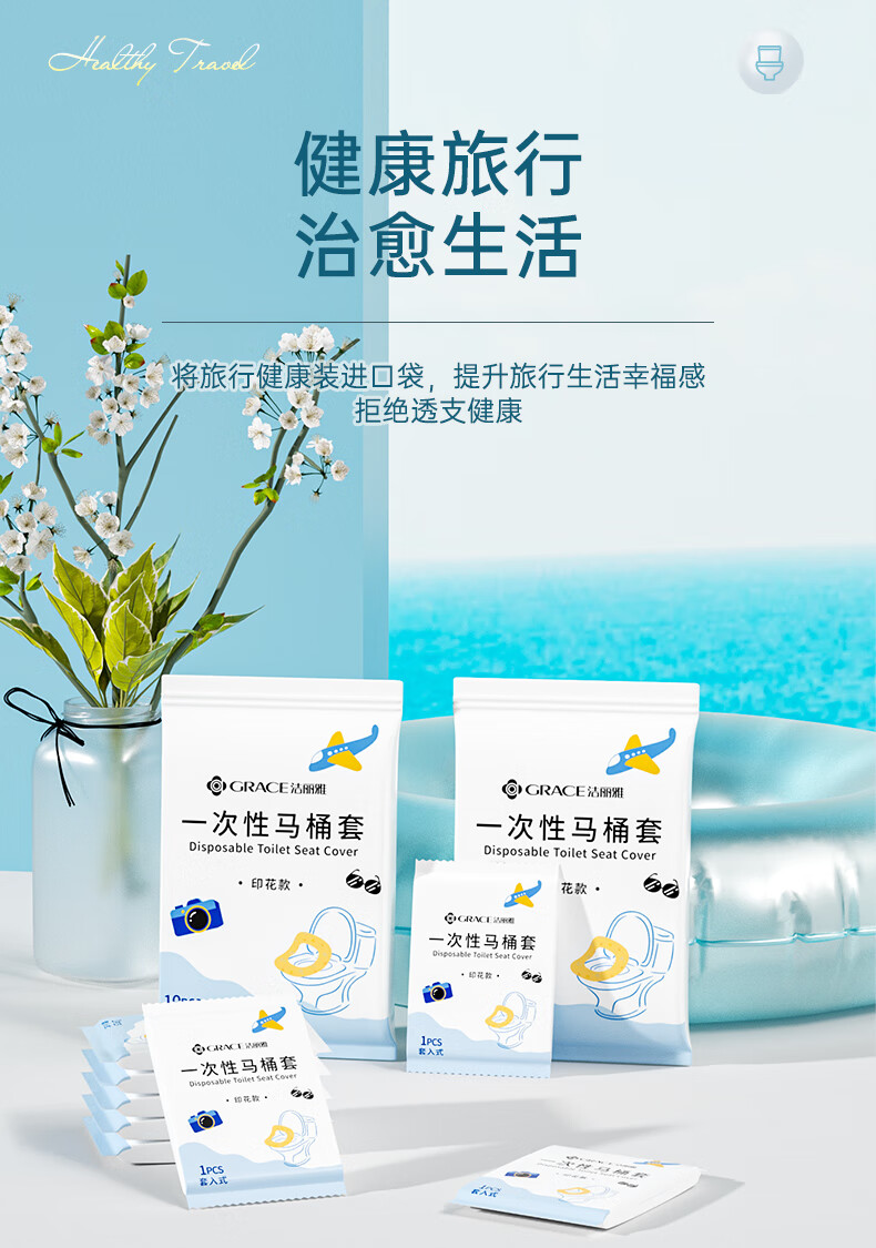 Jialiya Travel Disposable Toilet Cover for Travel and Business Travel Non-Woven Printed Style 10 Pack