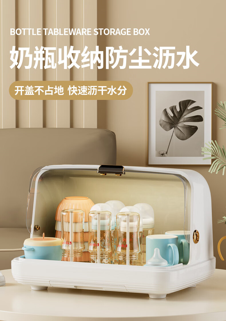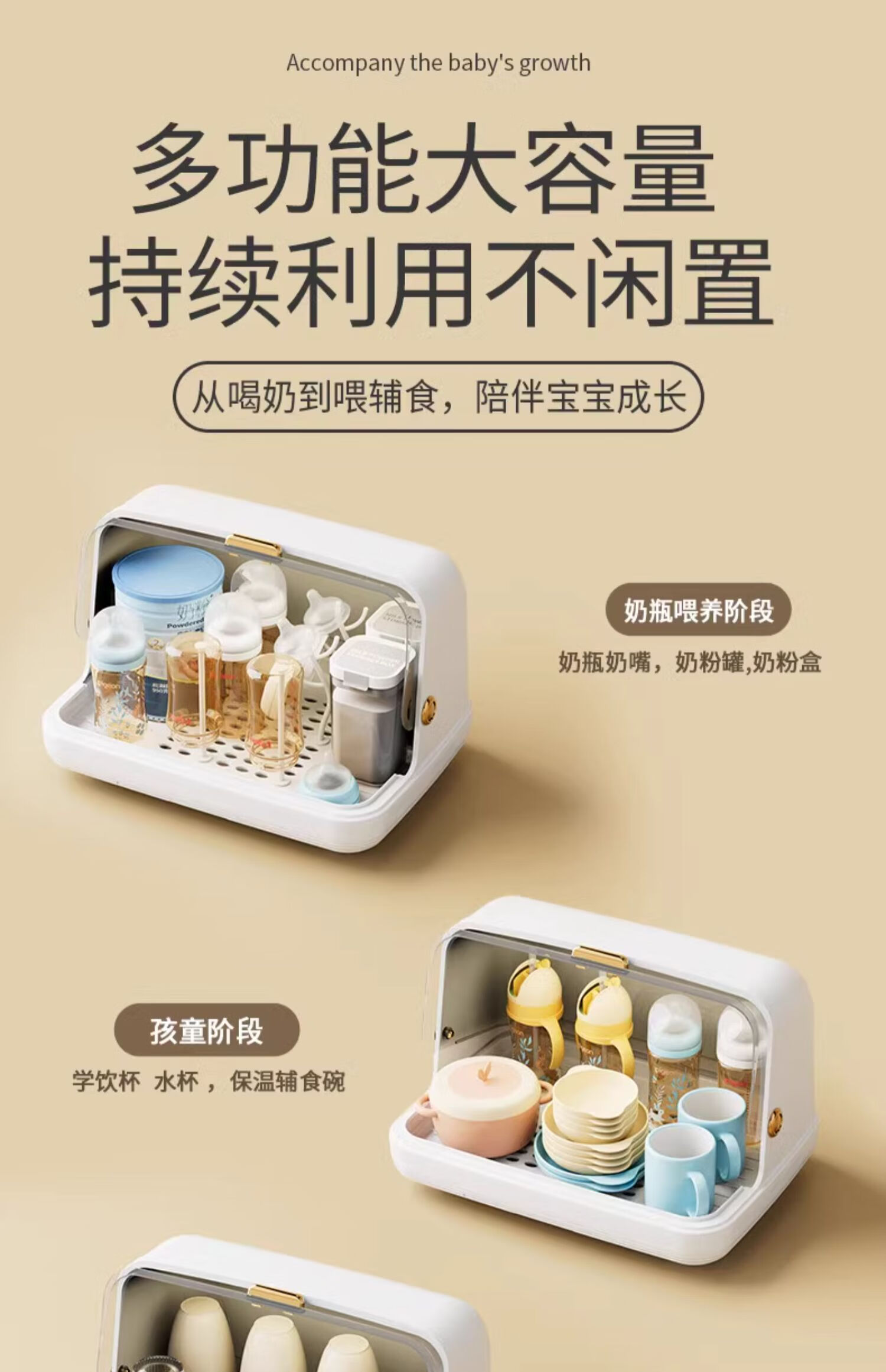 Denbigh baby bottle storage box drain rack baby tableware dust-proof storage rack baby food supplement tool storage cabinet
