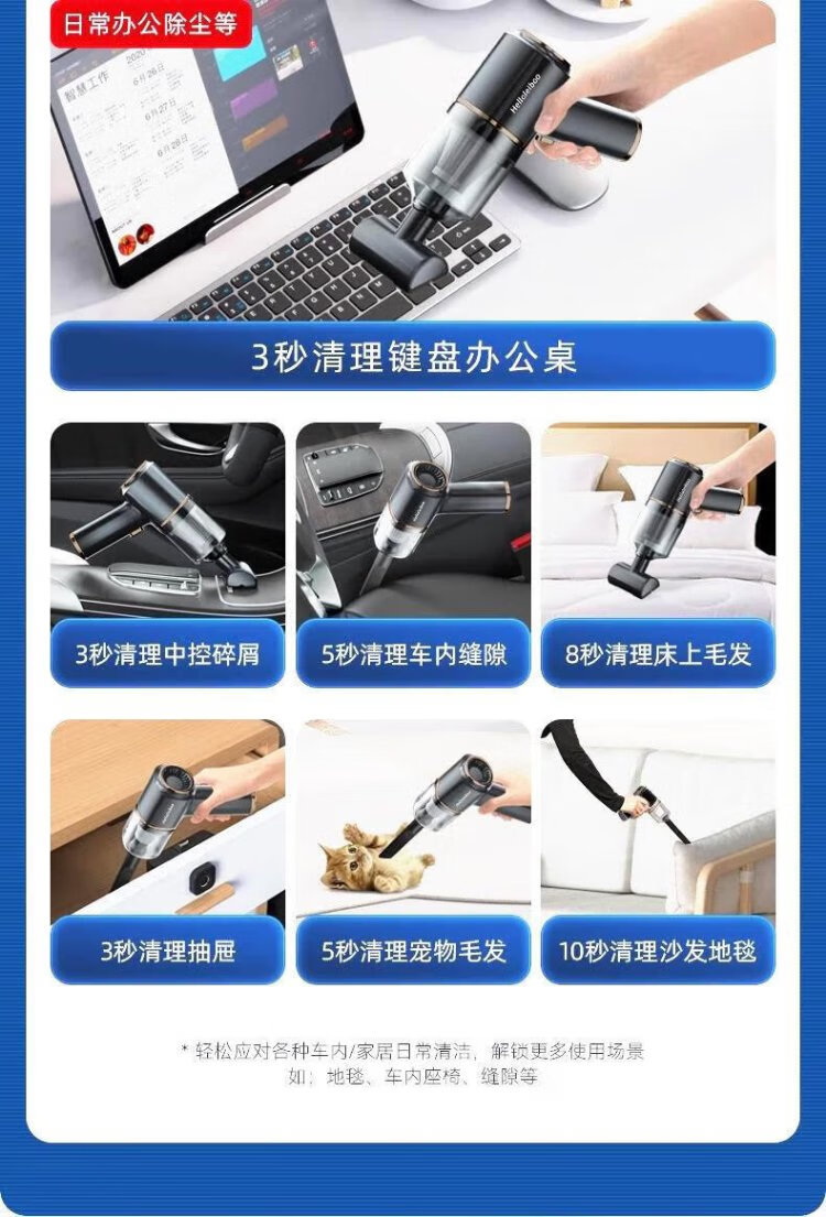 HELLOLEIBOO car vacuum cleaner handheld small super suction wireless charging mini car household suction and blower all-in-one