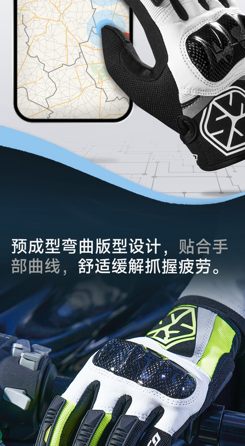 SCOYCO motorcycle riding gloves four-season racing motorcycle carbon fiber anti-fall touch screen Skylark MC122 (black and white) 2XL