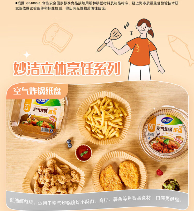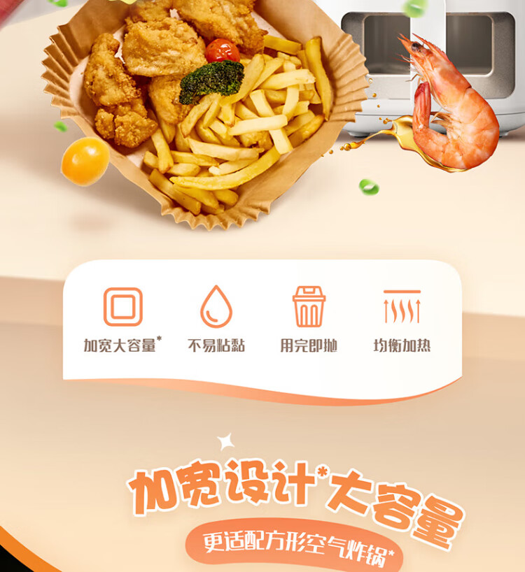 Miaojie special paper trays for air fryer, 35 pieces, widened design, double-sided silicone coating, not easy to stick, baking oven