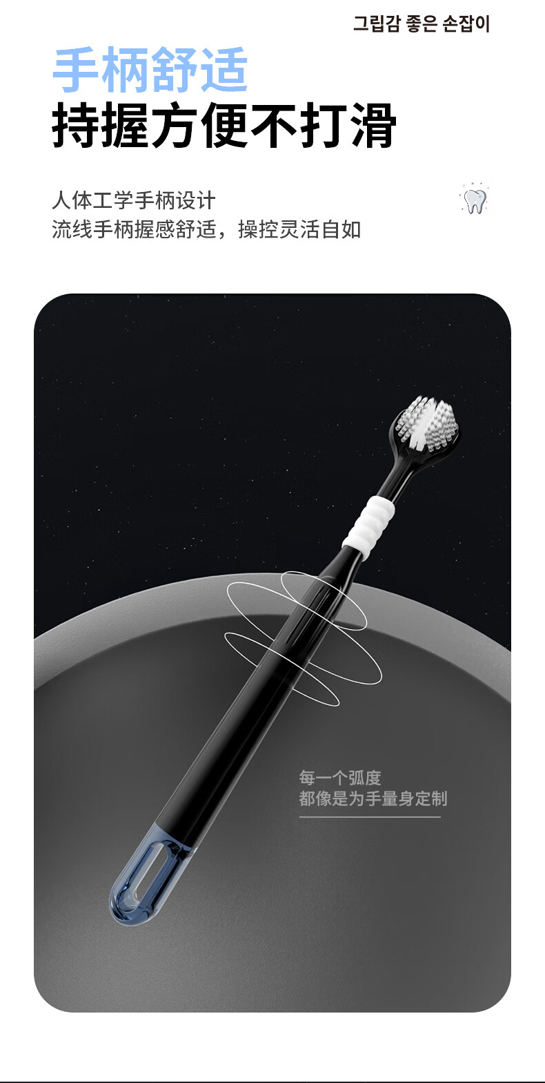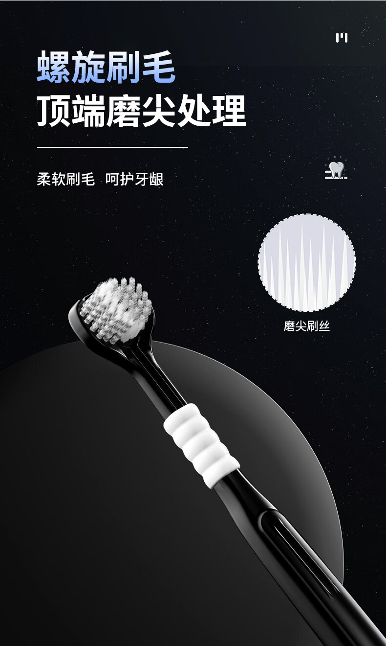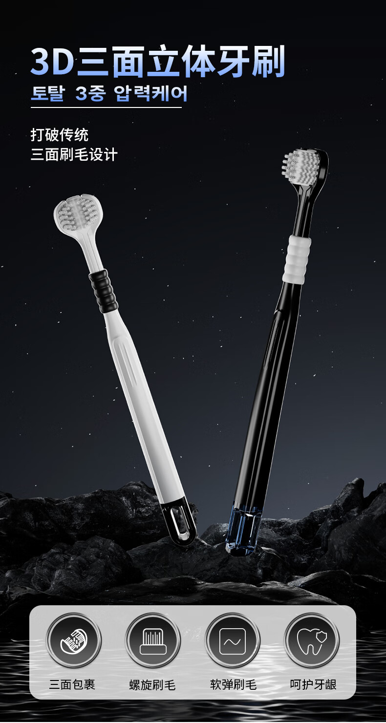 DR.BAEK three-sided toothbrush adult soft bristle toothbrush three-head toothbrush spiral bristles black and white classic couple style 2 pack