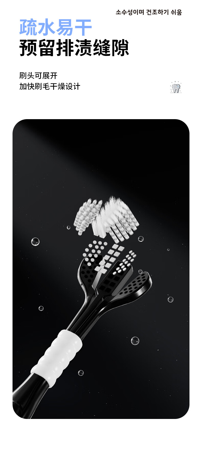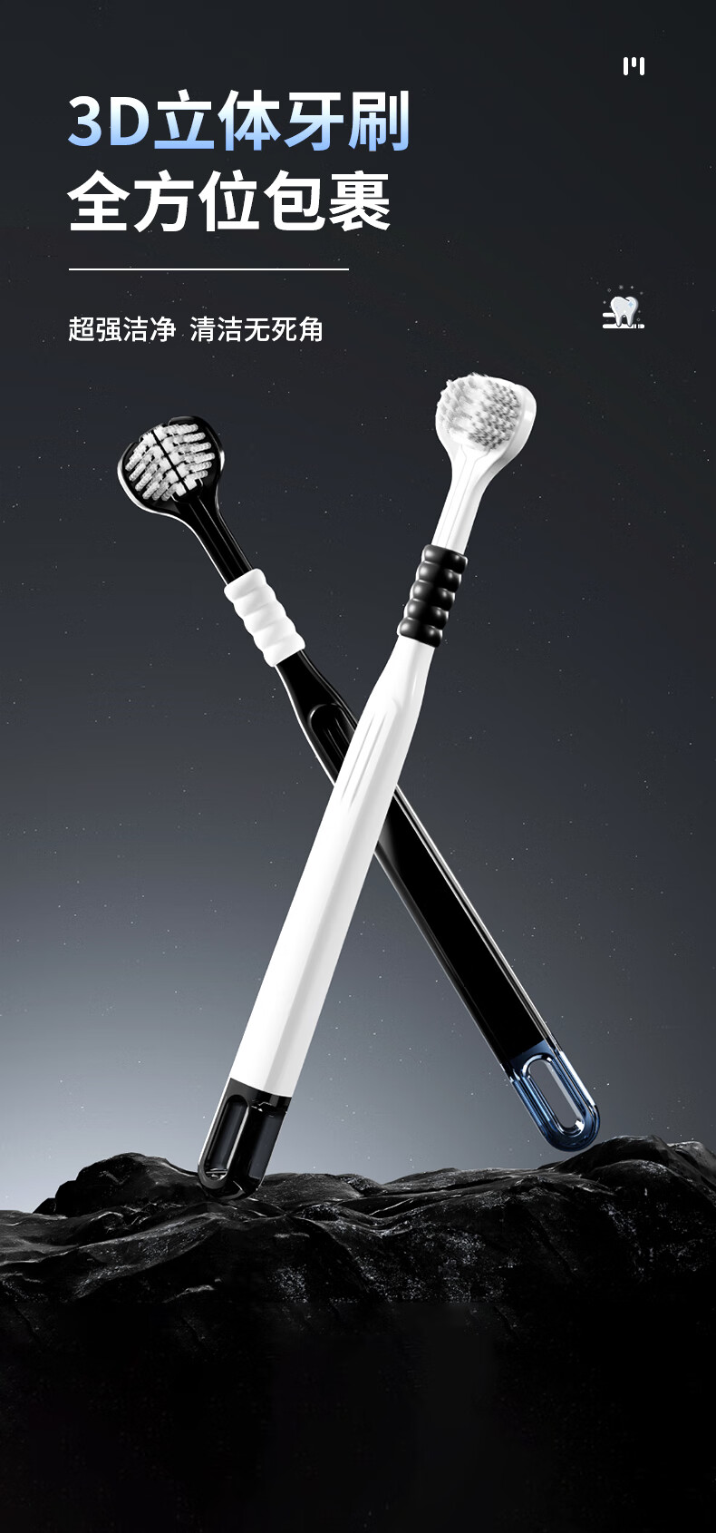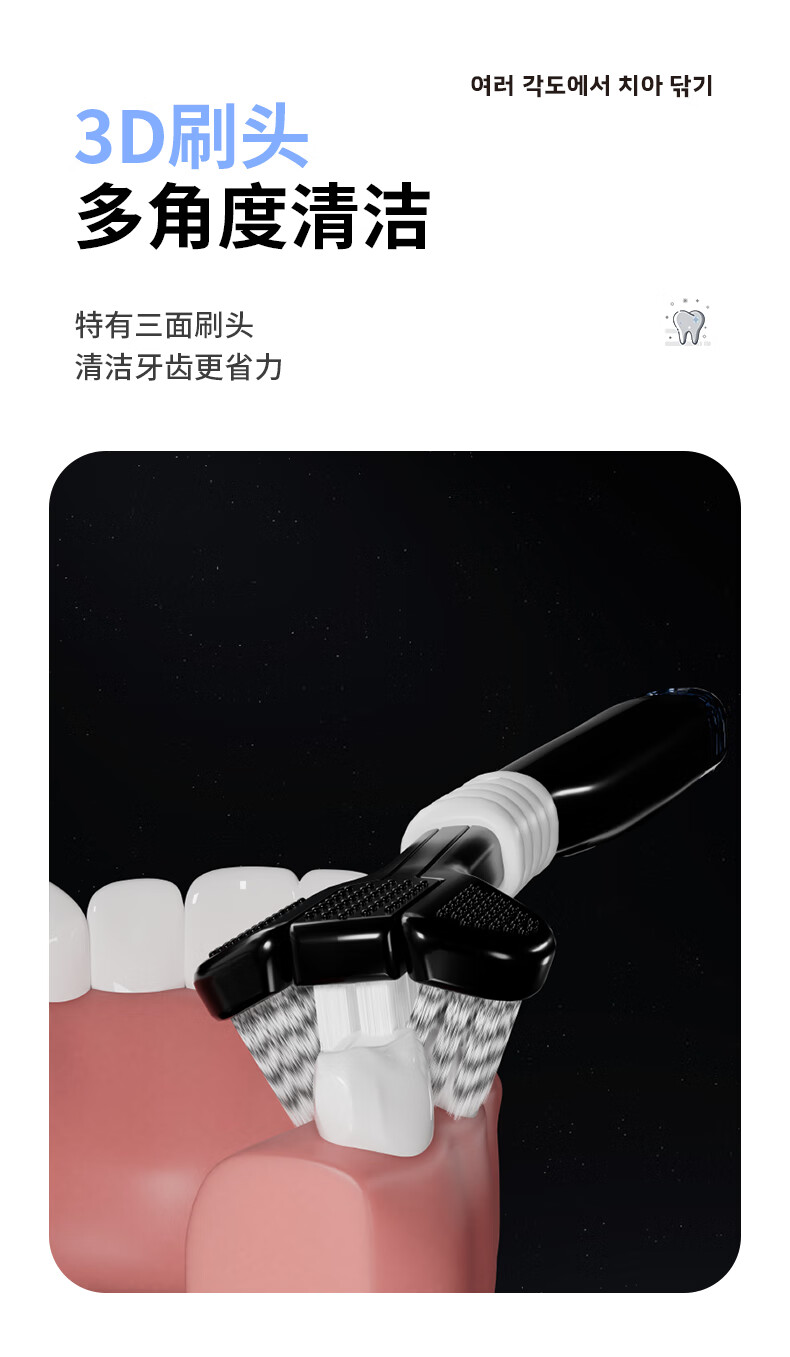 DR.BAEK three-sided toothbrush adult soft bristle toothbrush three-head toothbrush spiral bristles black and white classic couple style 2 pack