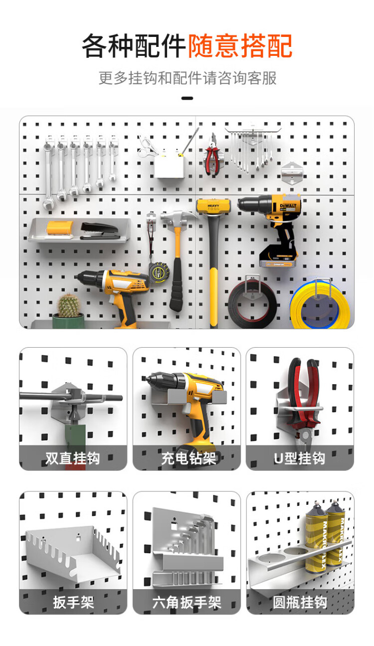 Corini Dongdong industrial grade board 1.2mm thick board tool hanging board hardware storage tool wall display hanger can be customized 900*450mm white