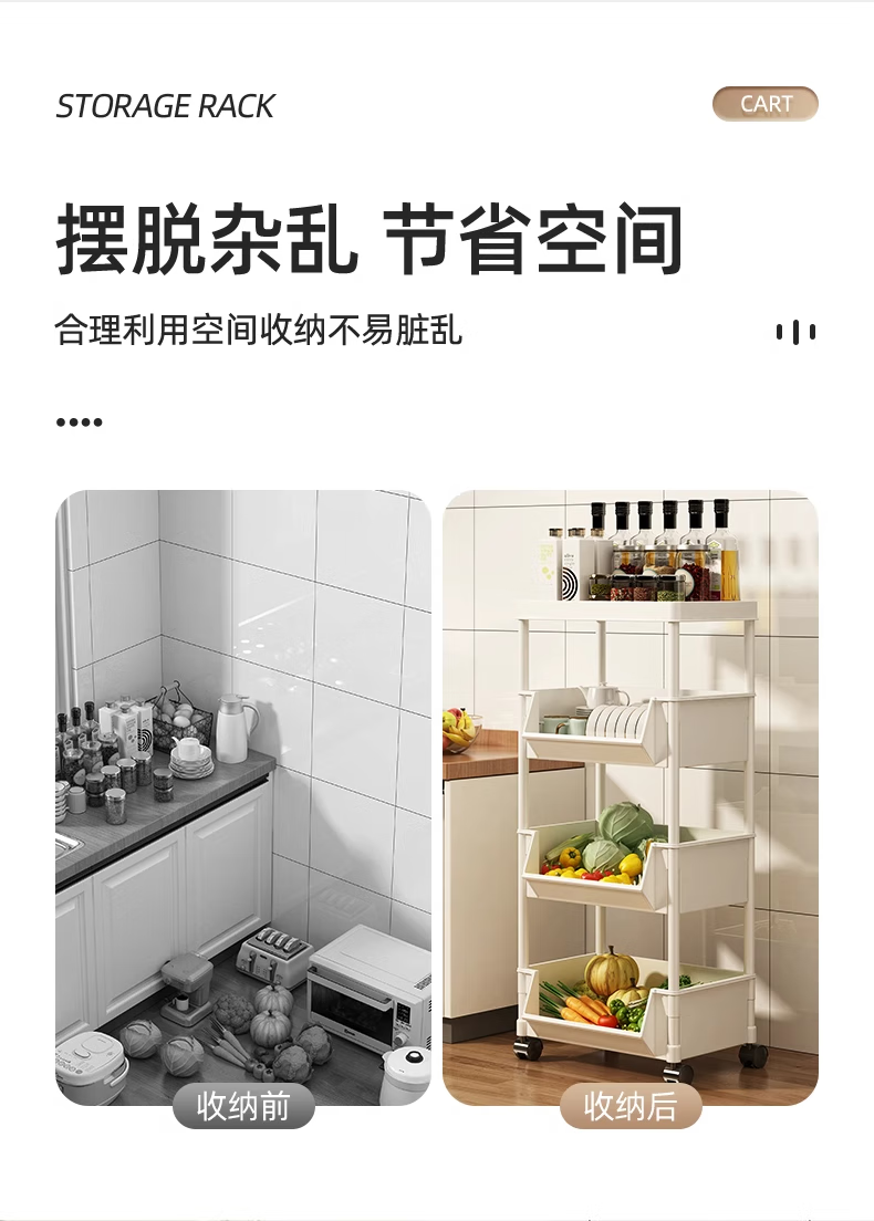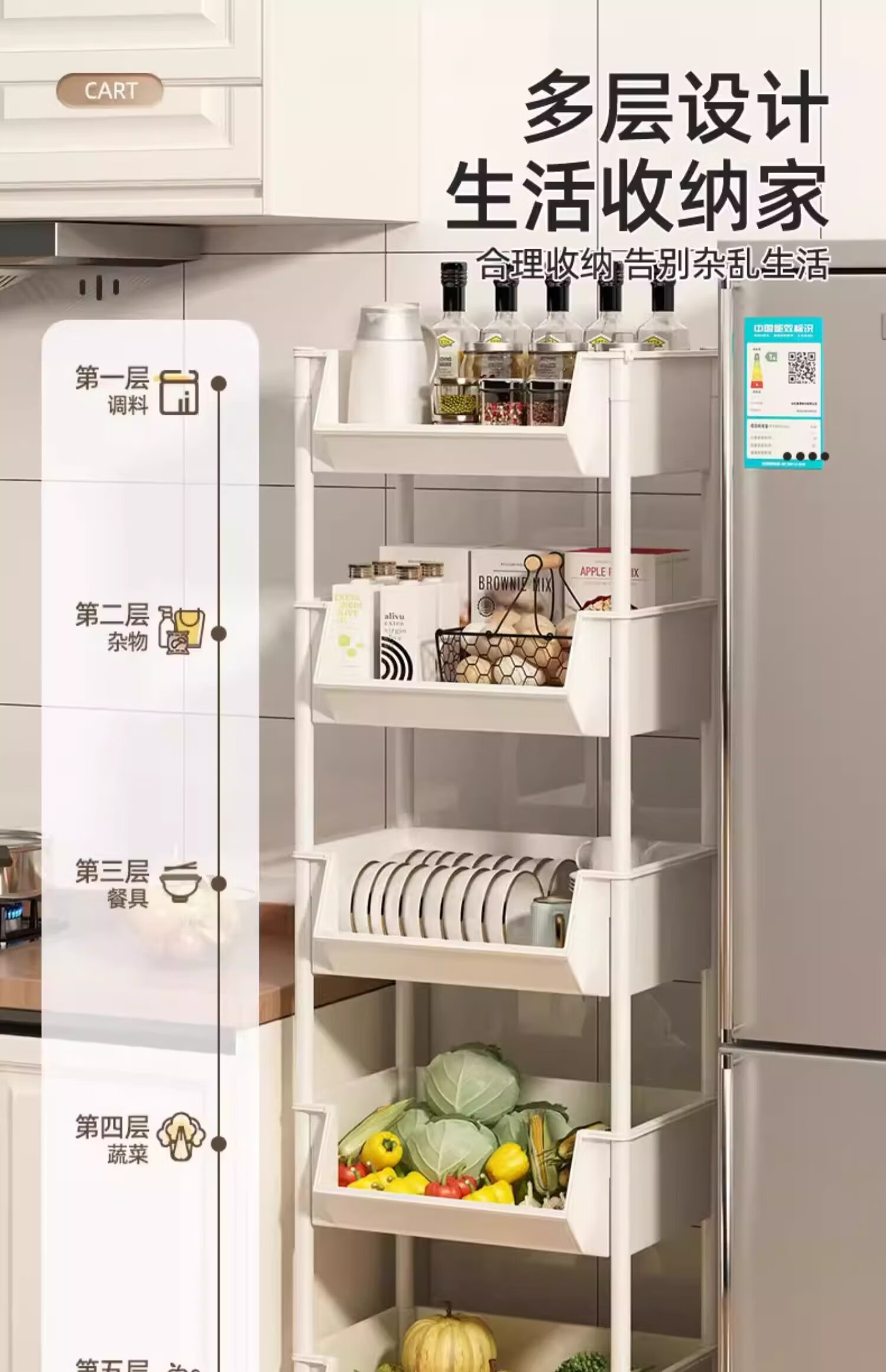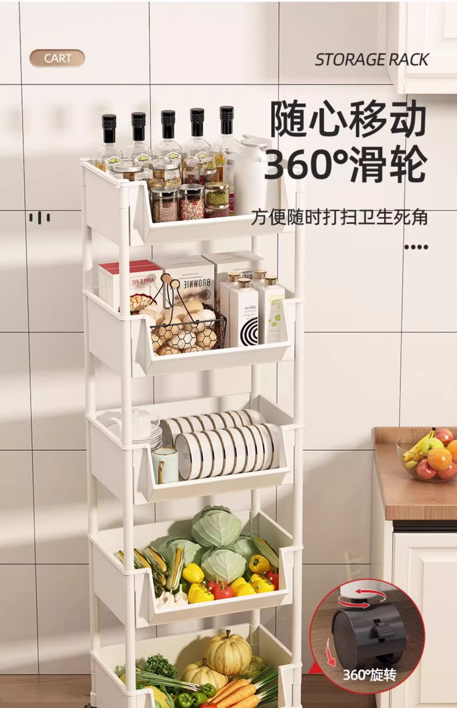 Added kitchen rack floor-standing multi-layer storage rack vegetable trolley multi-functional fruit and vegetable basket storage rack