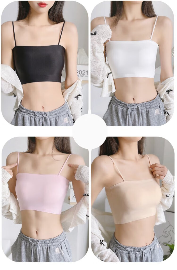 Bejirog Underwear Women's Ice Silk Seamless Wireless Bra Wrapped Breast Sling Anti-Exposed Beauty Vest Student Girl Thin Bra Tube Top