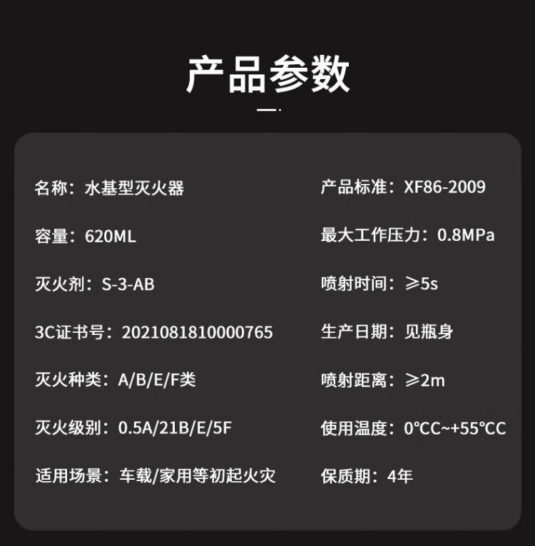 Giant wood car fire extinguisher car household water-based fire extinguisher bottle national fire certification equipment environmental protection 21B