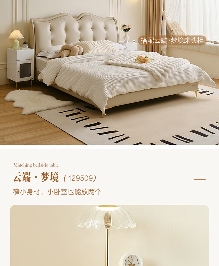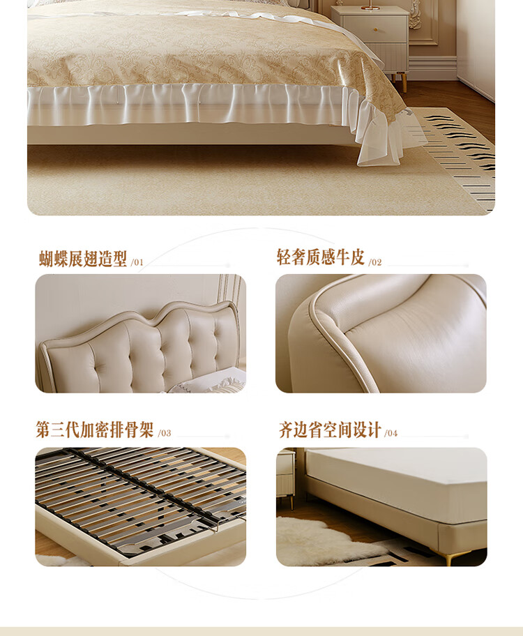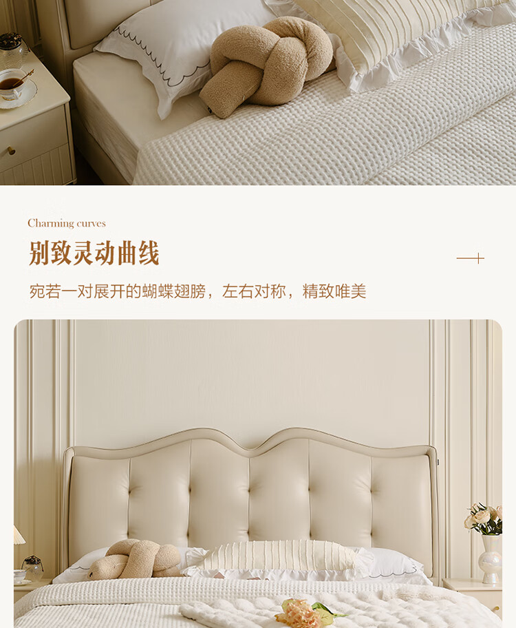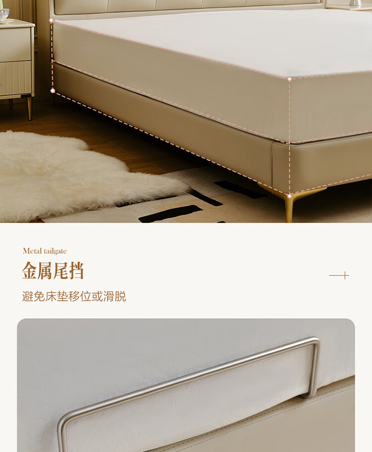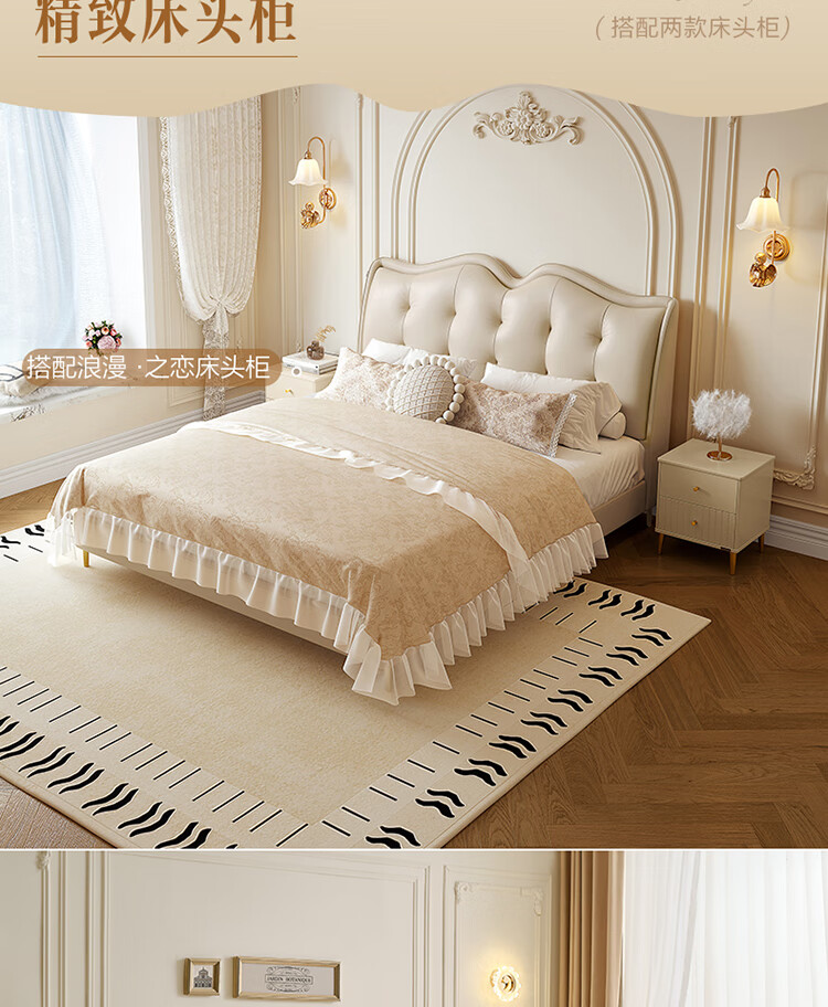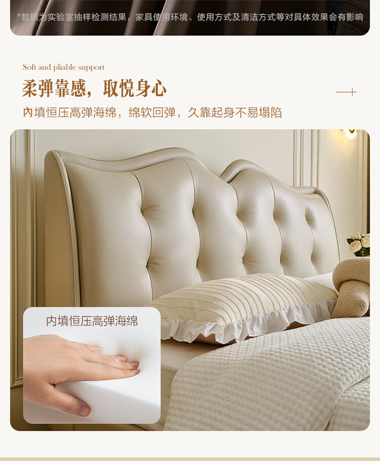 Quanyou Home Light Luxury Style Modern Simple First Layer Cowhide Art Bedside Soft Backrest 1.8x2 Meter Master Bedroom Double Bed