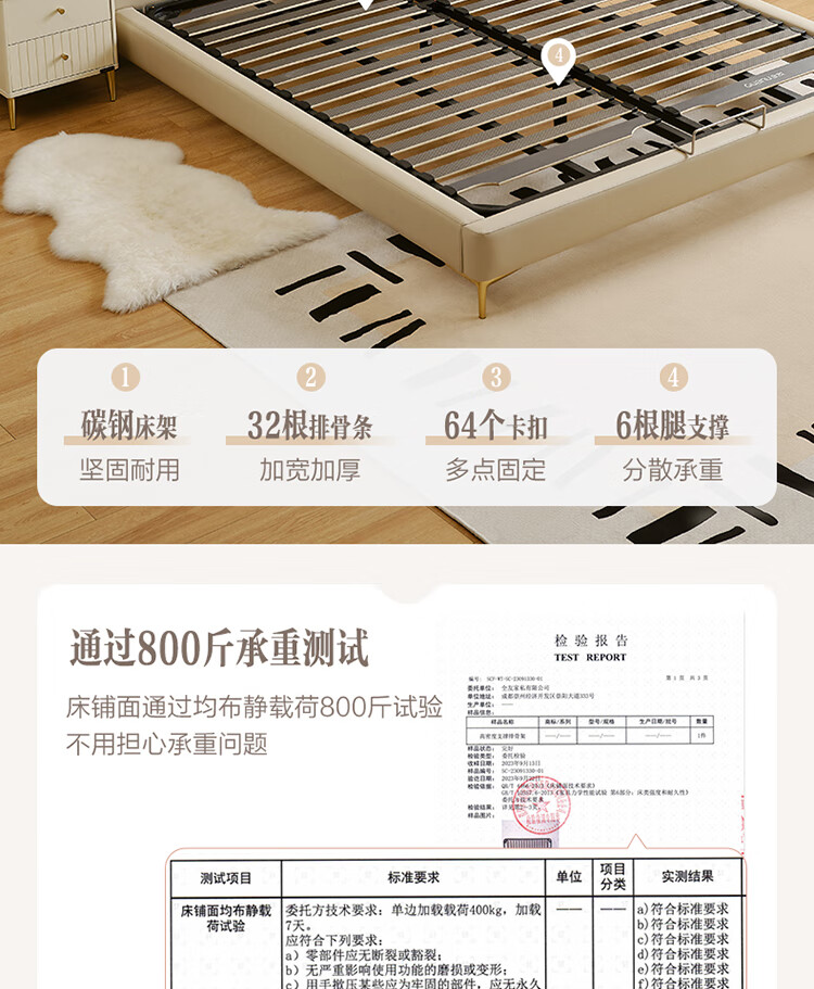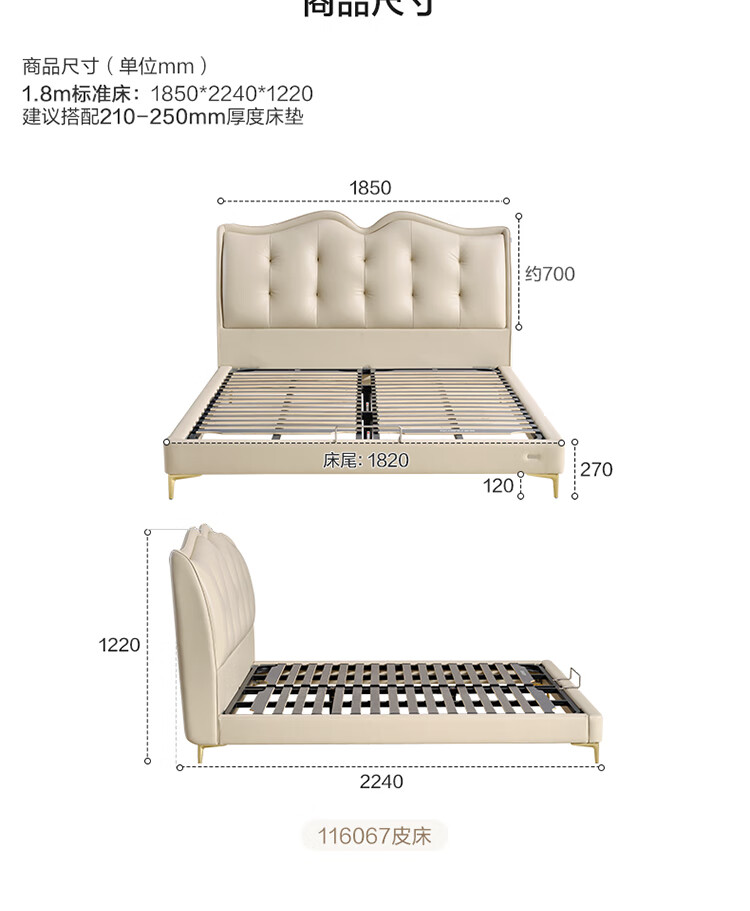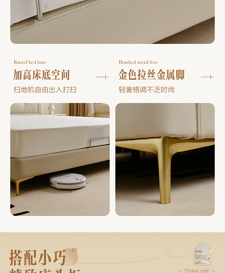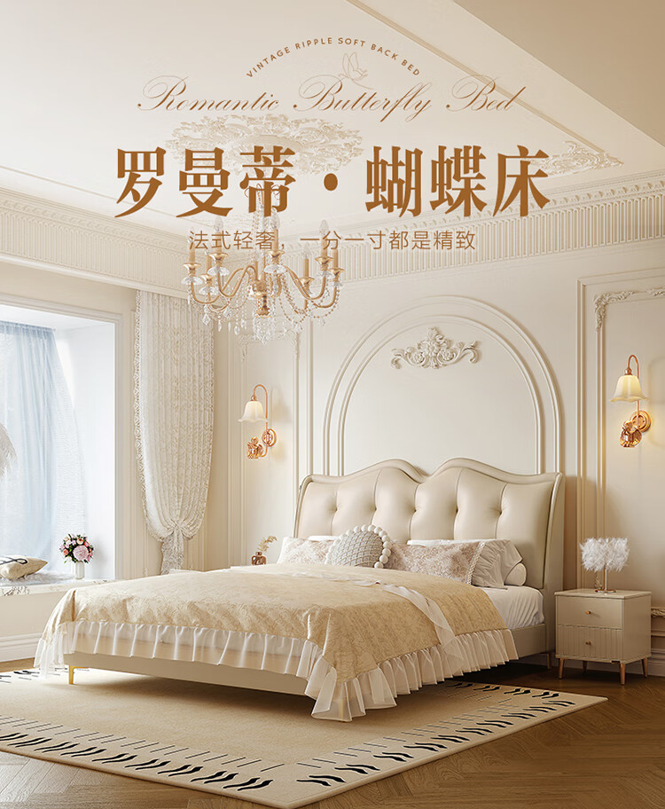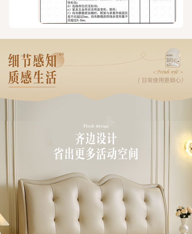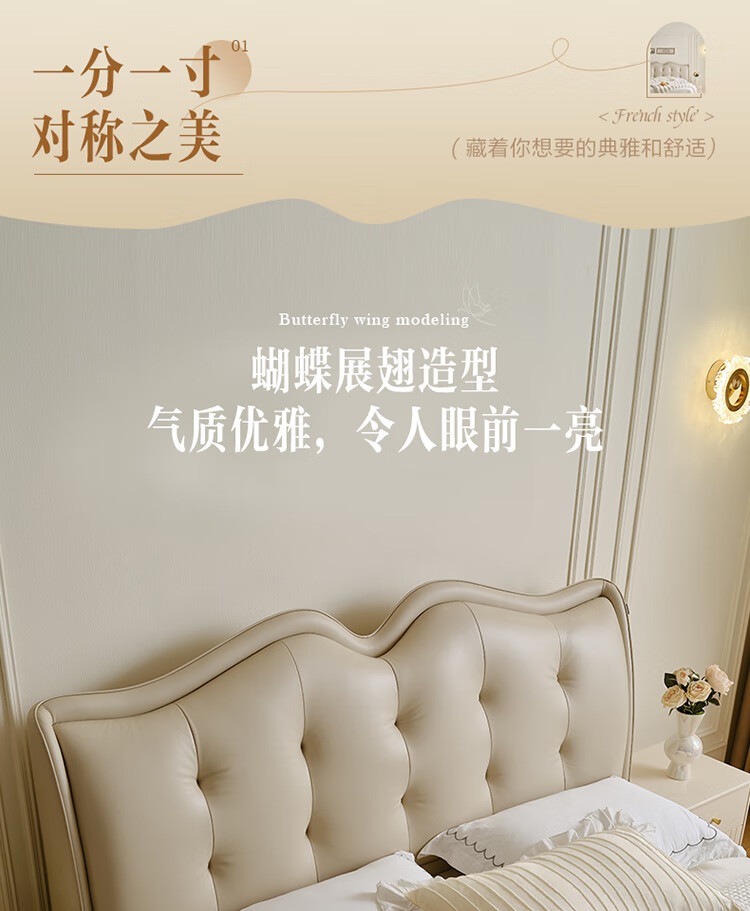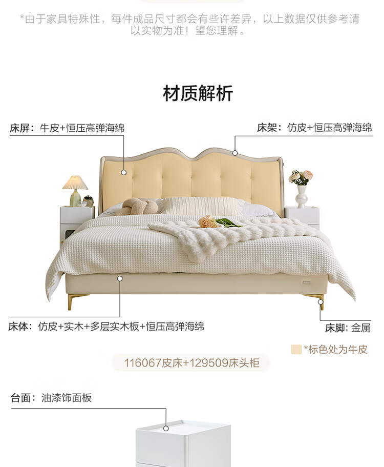 Quanyou Home Light Luxury Style Modern Simple First Layer Cowhide Art Bedside Soft Backrest 1.8x2 Meter Master Bedroom Double Bed