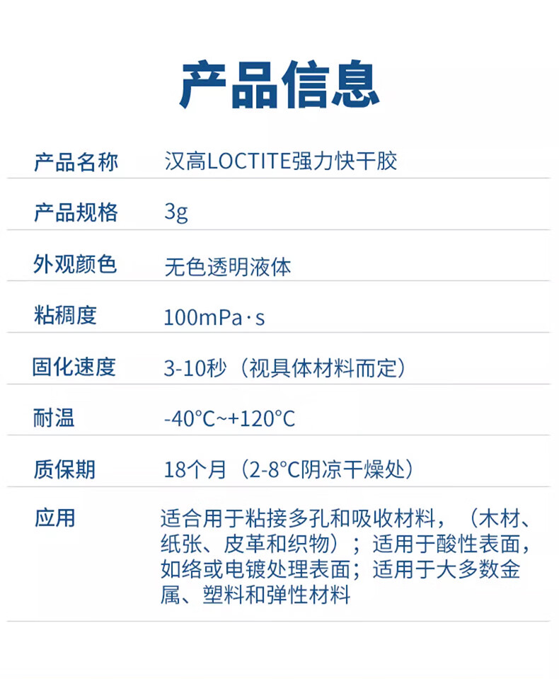 Loctite/loctite powerful quick-drying glue universal glue quick-drying glue instant glue metal wood ceramic plastic rubber repair 3g/piece