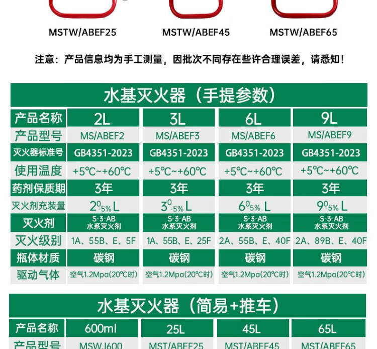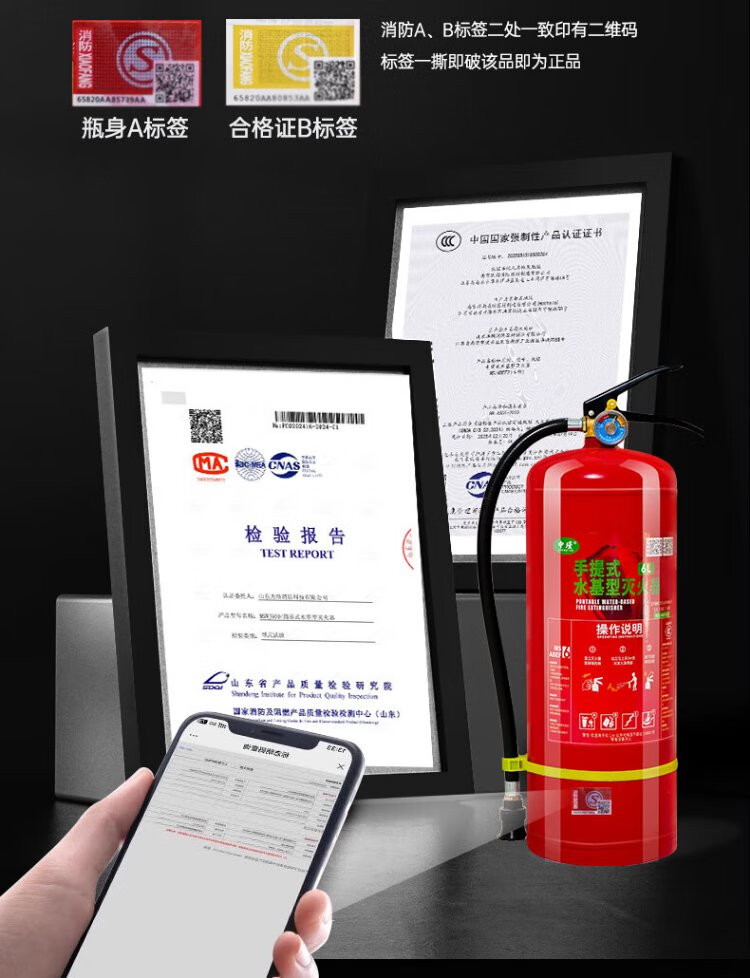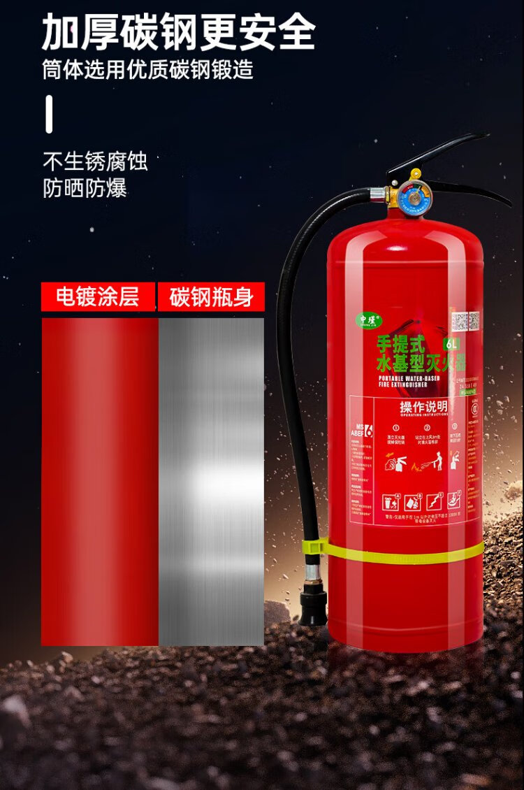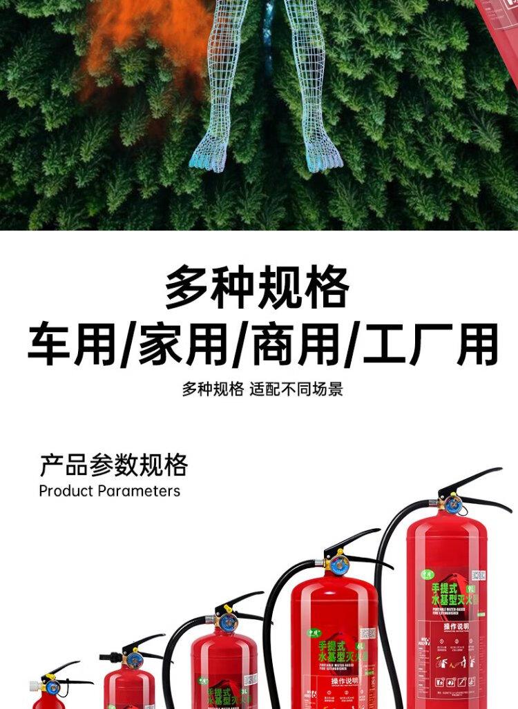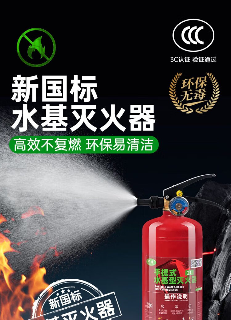 Zhongjin new national standard fire extinguisher portable water-based equipment national fire protection 3C certification household commercial fire extinguishing bottle 3L electric