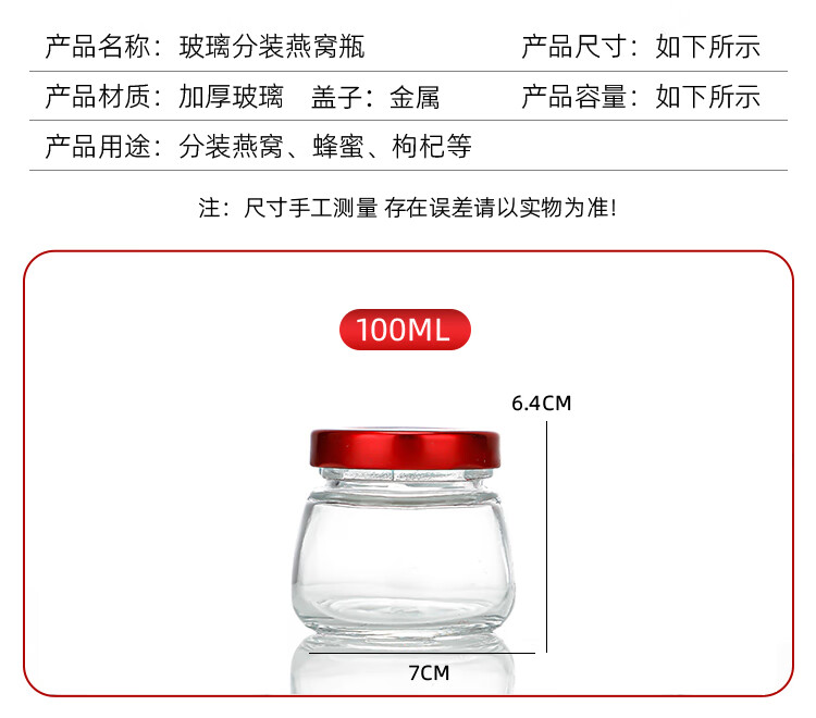 PAKCHOICE Bird's Nest Sub-Bottle, High Temperature Resistant Sealed Glass Bottle, Stewing Cup, Steamable Bird's Nest Cup, Bird's Nest Bottle, 6 Pack, 100ml