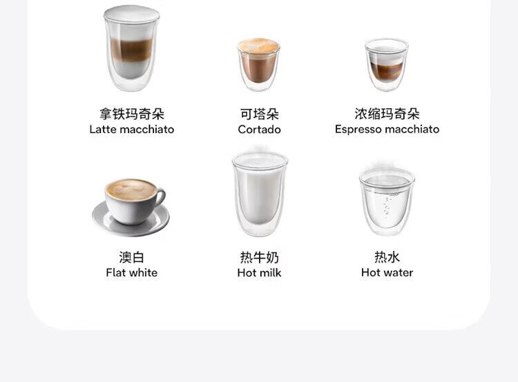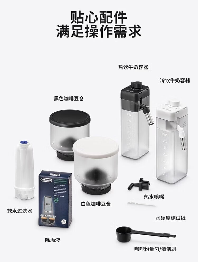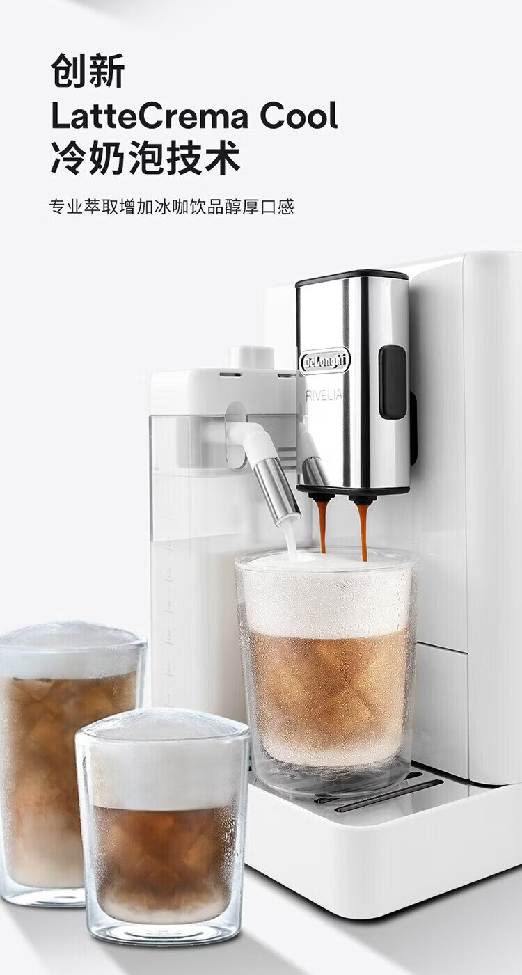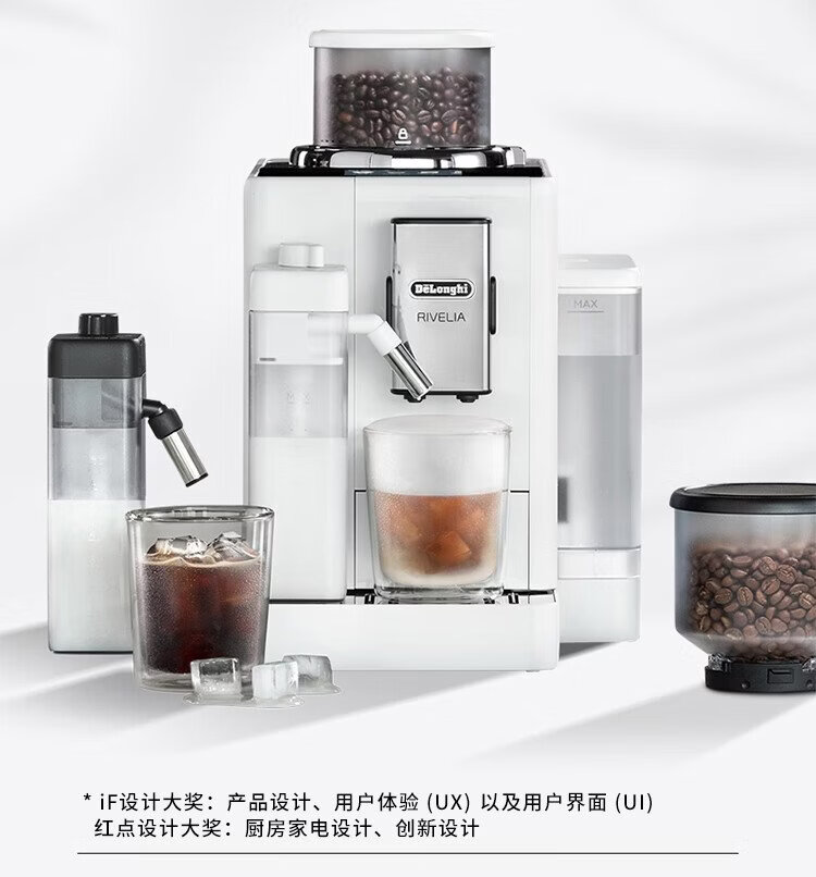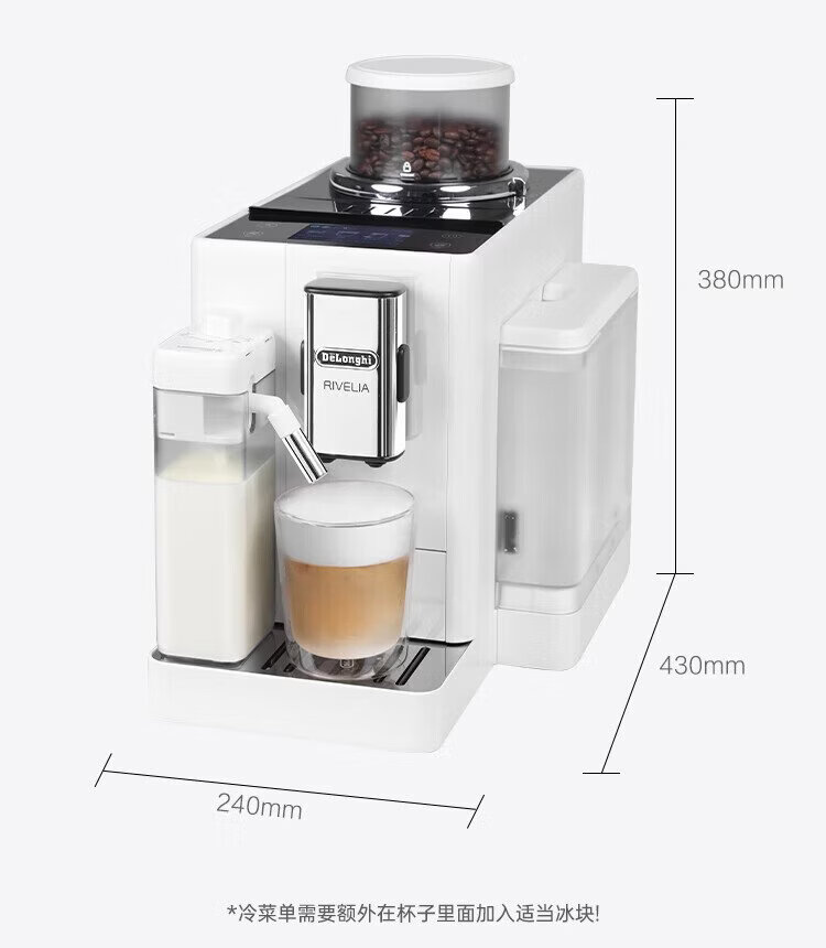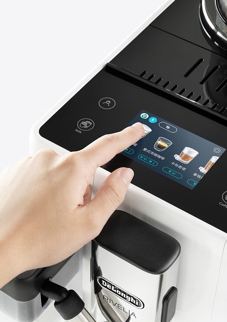 Delonghi coffee machine, household fully automatic coffee machine, imported Italian small freshly ground hot and cold milk foam, intelligent interconnection, full color touch screen, replaceable bean bin R5 W white moonlight New Year gift