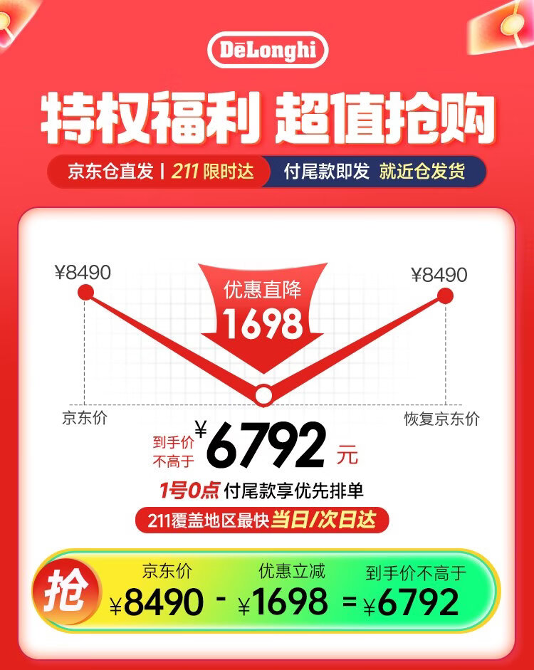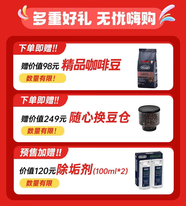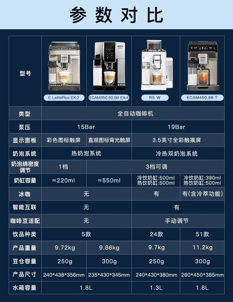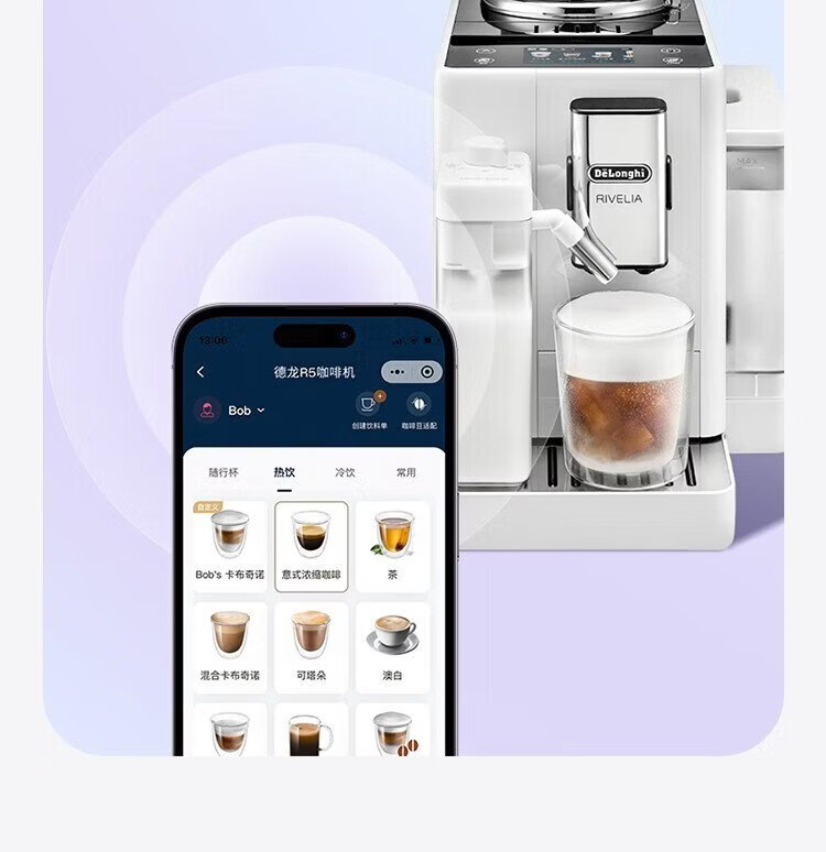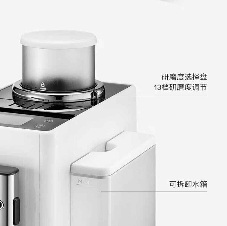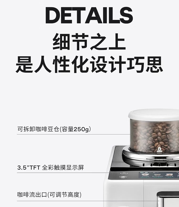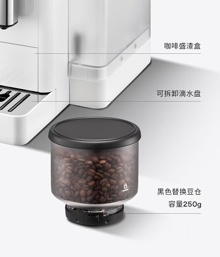 Delonghi coffee machine, household fully automatic coffee machine, imported Italian small freshly ground hot and cold milk foam, intelligent interconnection, full color touch screen, replaceable bean bin R5 W white moonlight New Year gift