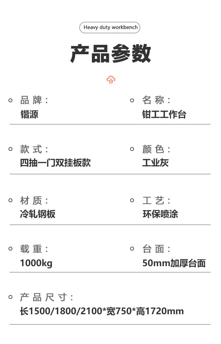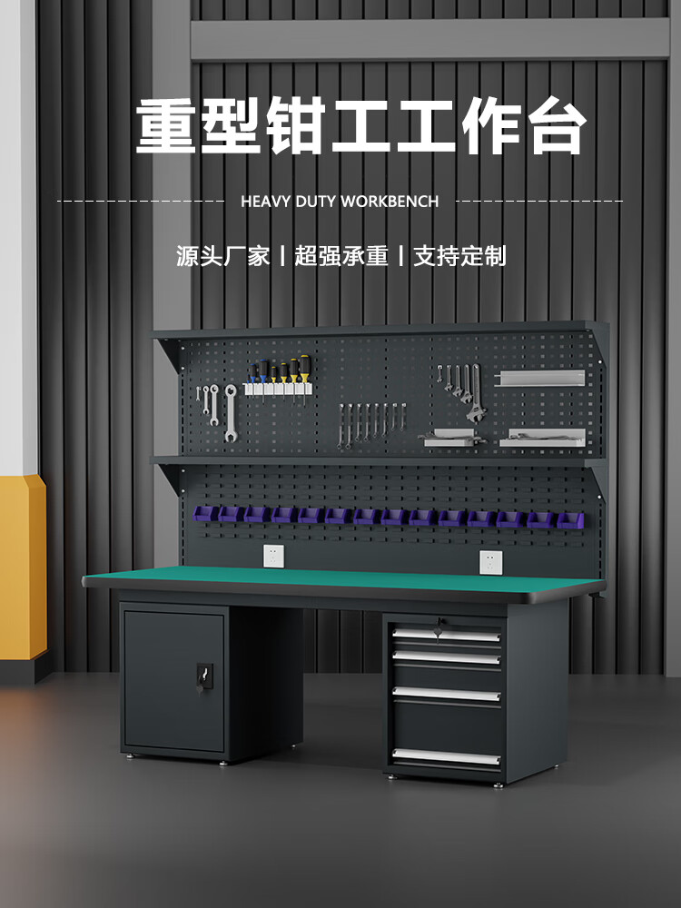 Kaiyuan four drawers and one door double hanging plate 2100*750*1720mm anti-static heavy-duty workbench bench bench industrial assembly line tool table maintenance tool bench experimental console can be customized