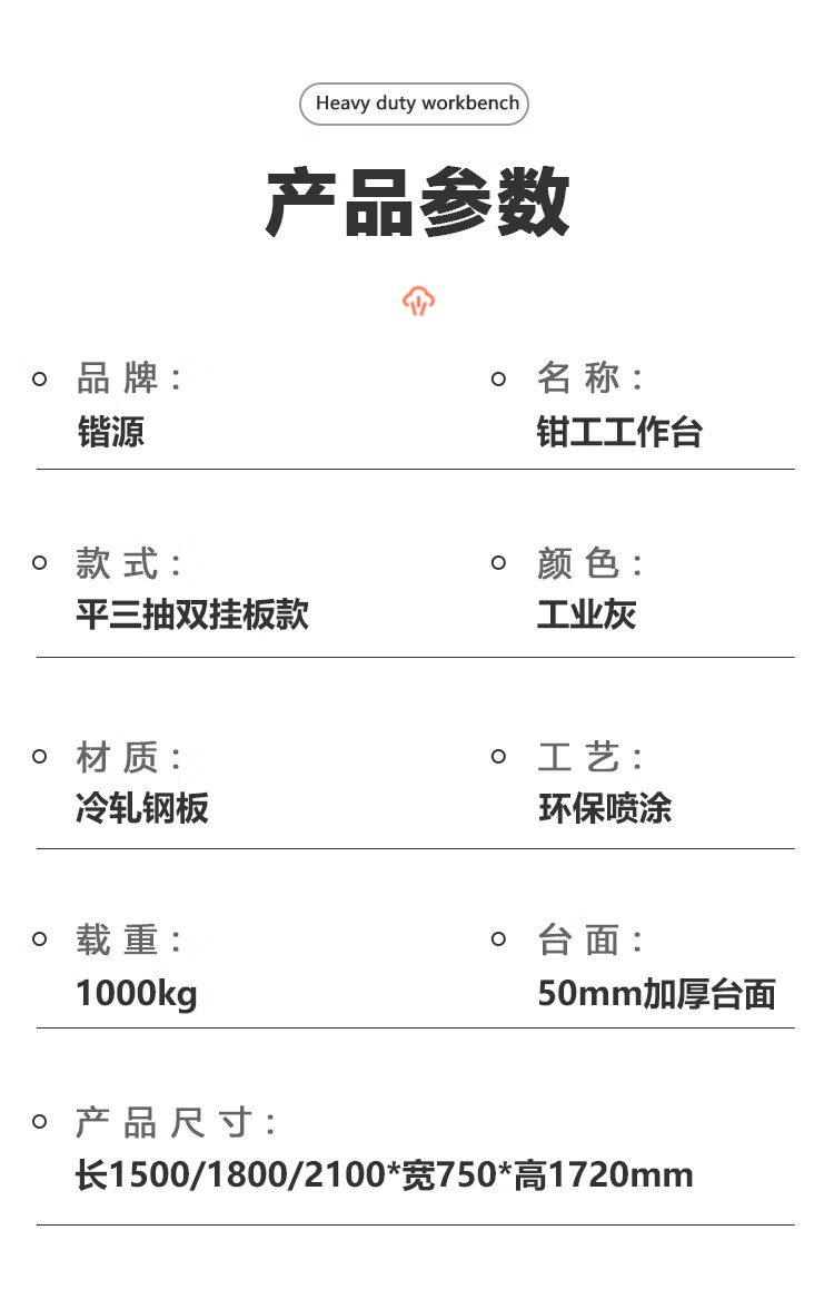 Kaiyuan flat three-drawn double-hanging plate 2100*750*1720mm anti-static heavy-duty workbench bench bench industrial assembly line tool table multi-functional maintenance tool table experimental operating table