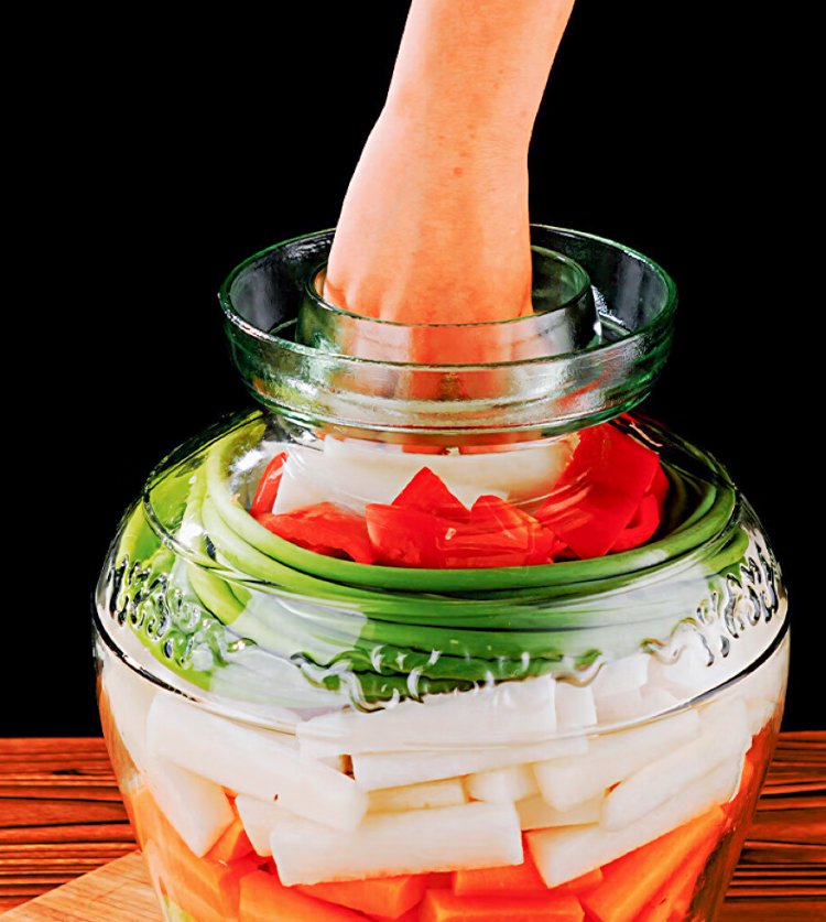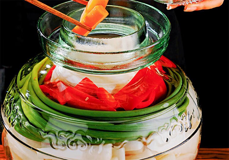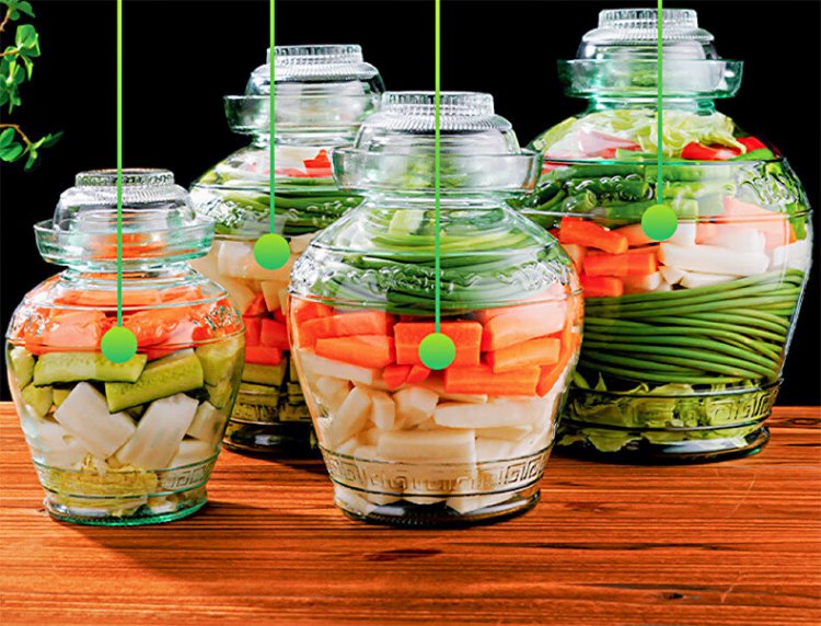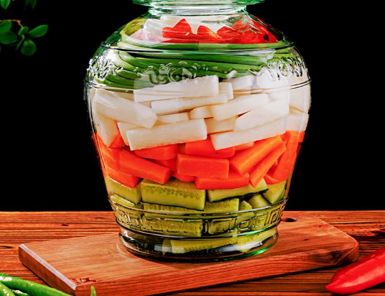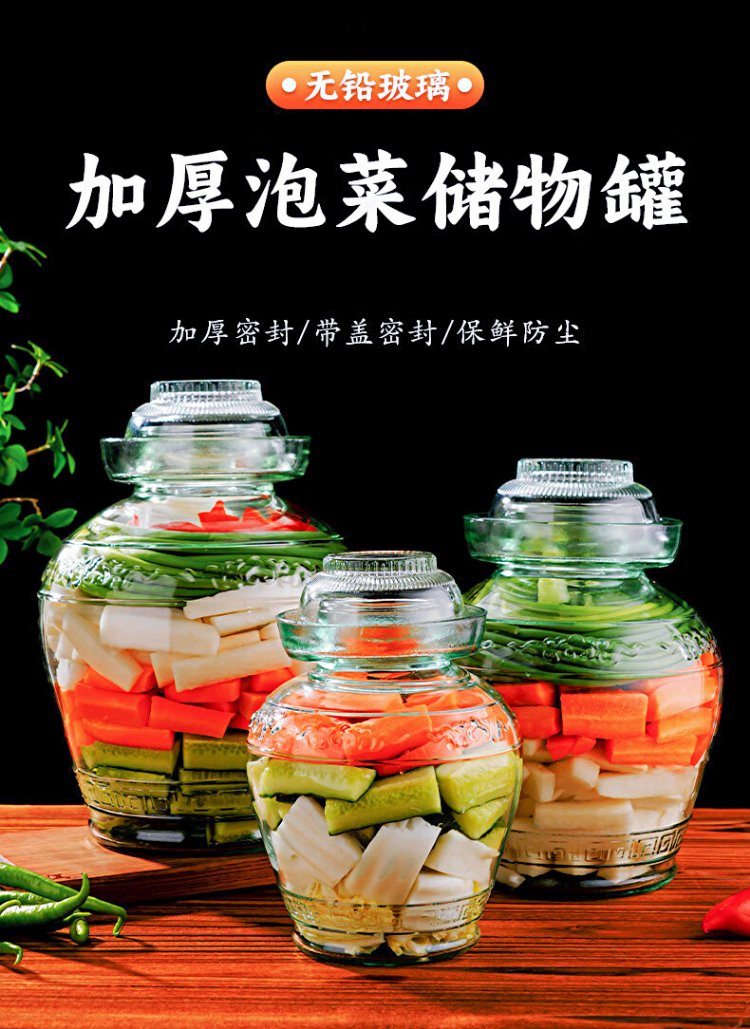 Ji'anxi glass pickle jar sealed round mouth pickle jar glass wine bottle pickle jar 10 catties package plus long chopsticks