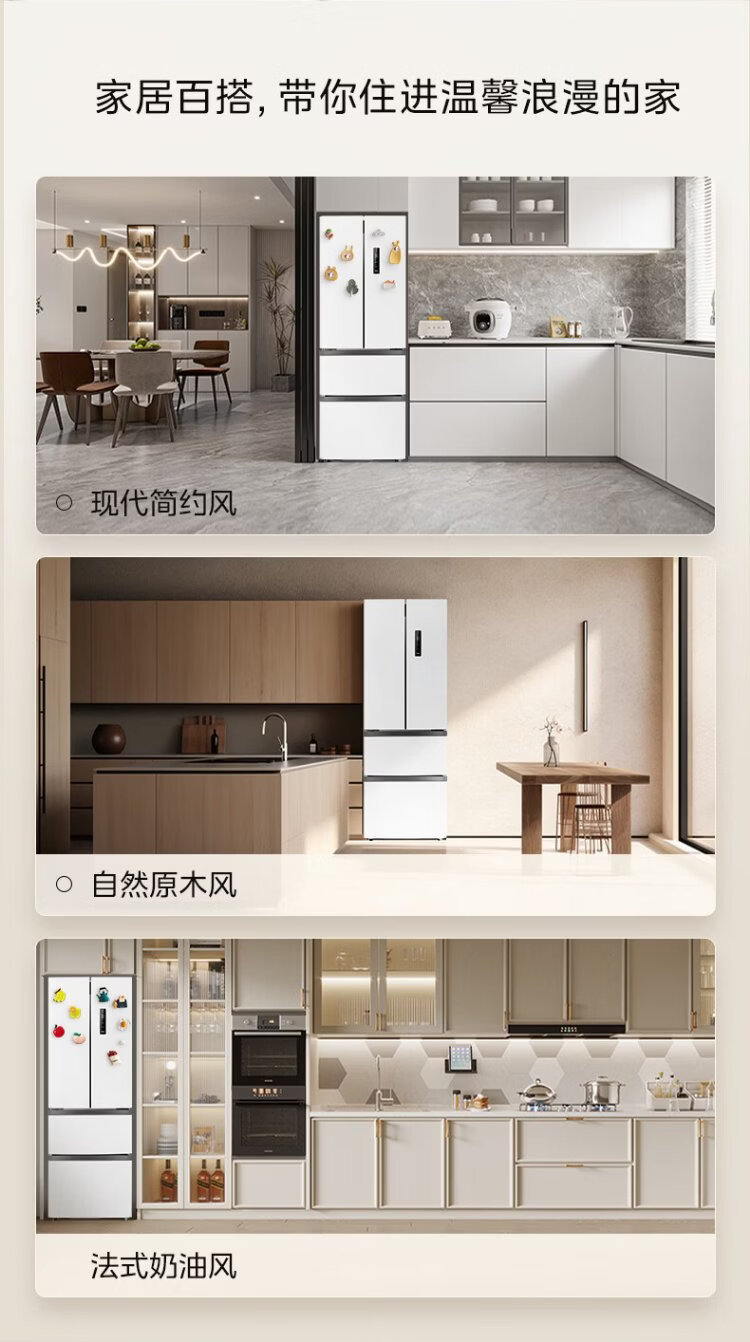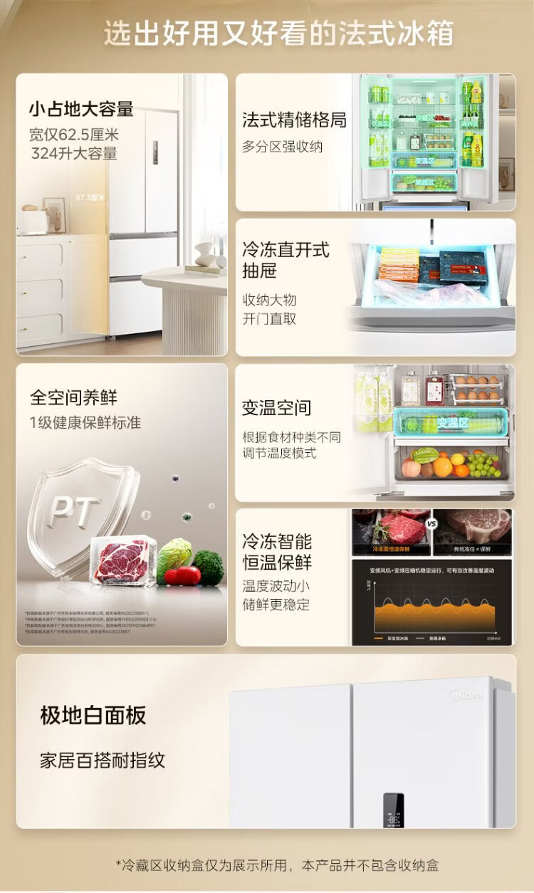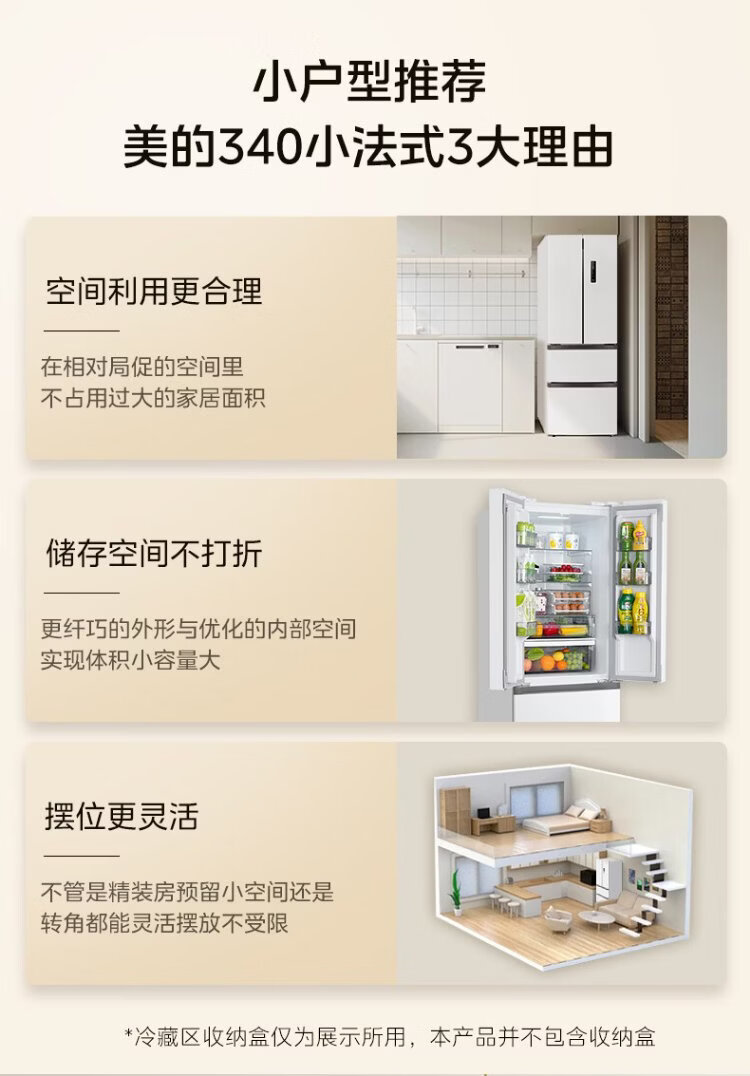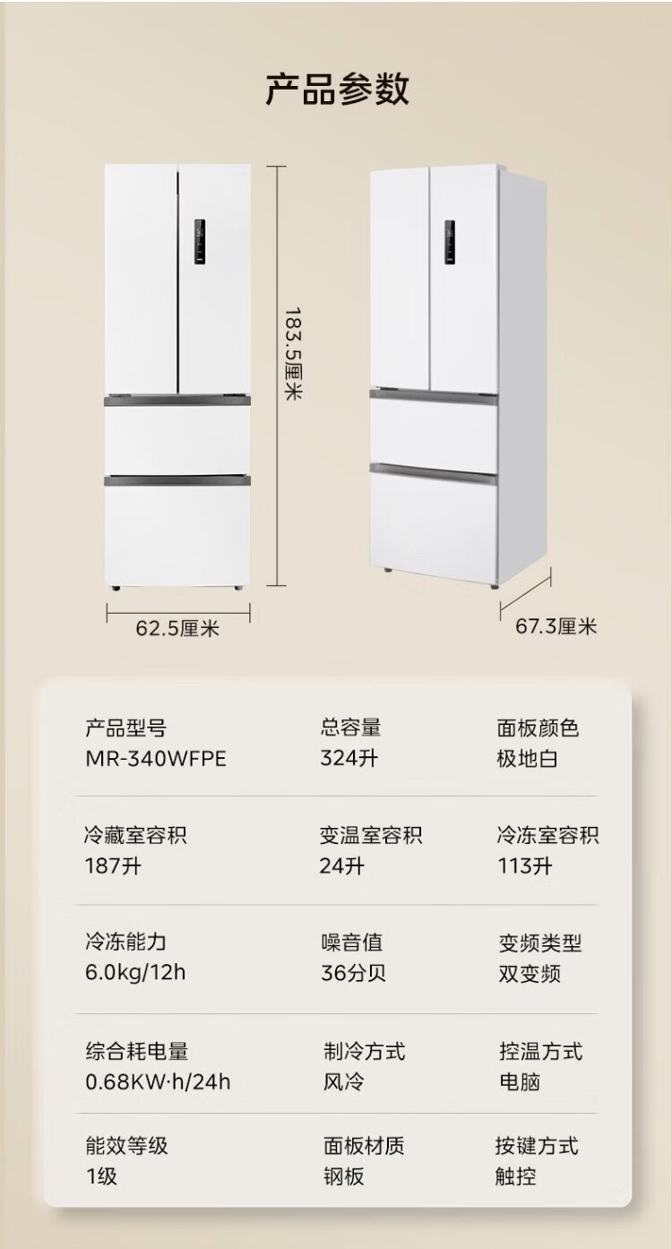 Midea 324L French-style multi-door refrigerator small apartment ultra-thin air-cooled frost-free first-class energy efficiency frequency conversion energy-saving and odor-free trade-in white MR-340WFPE national subsidy