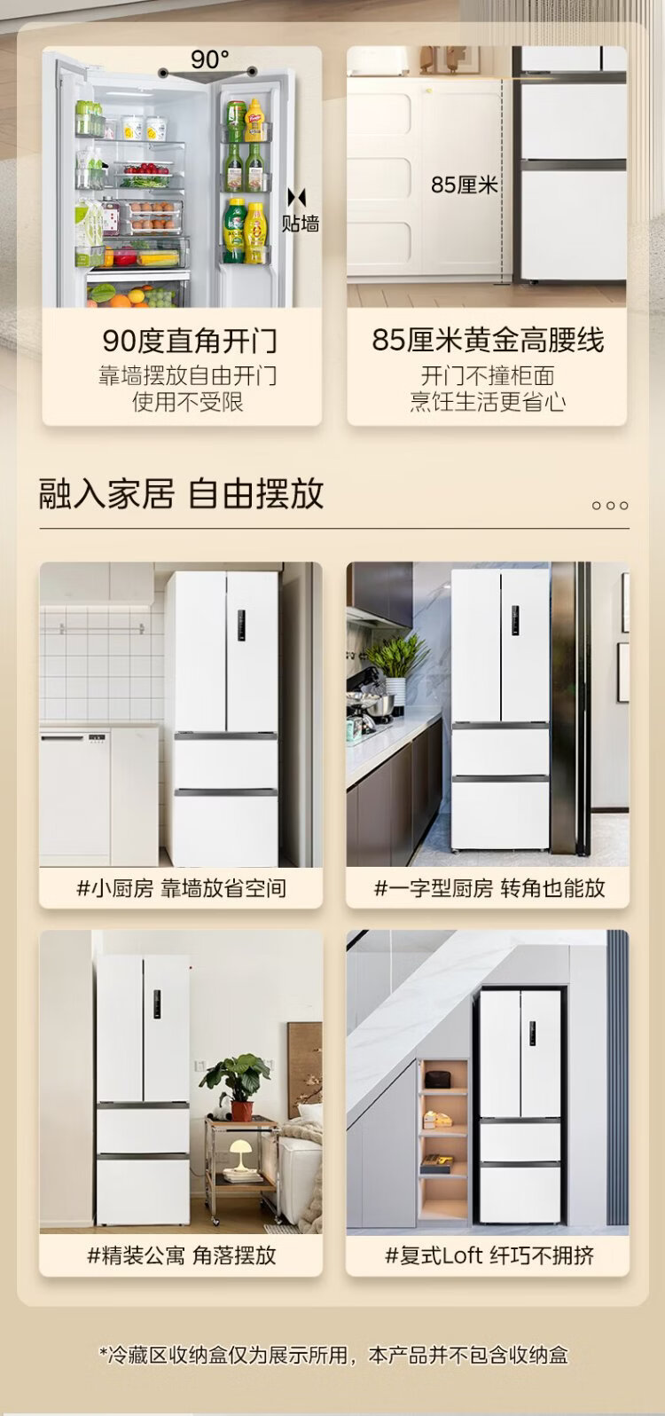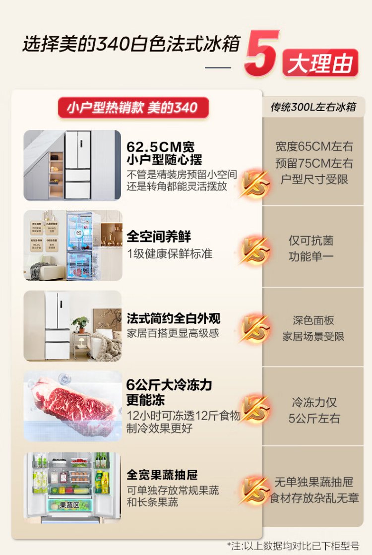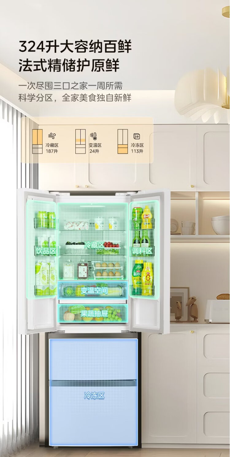 Midea 324L French-style multi-door refrigerator small apartment ultra-thin air-cooled frost-free first-class energy efficiency frequency conversion energy-saving and odor-free trade-in white MR-340WFPE national subsidy