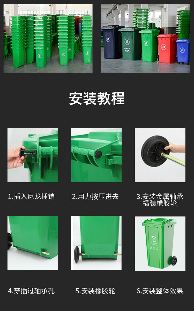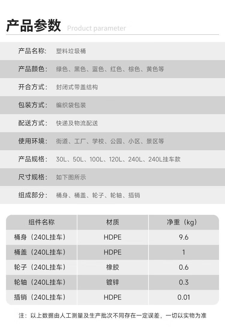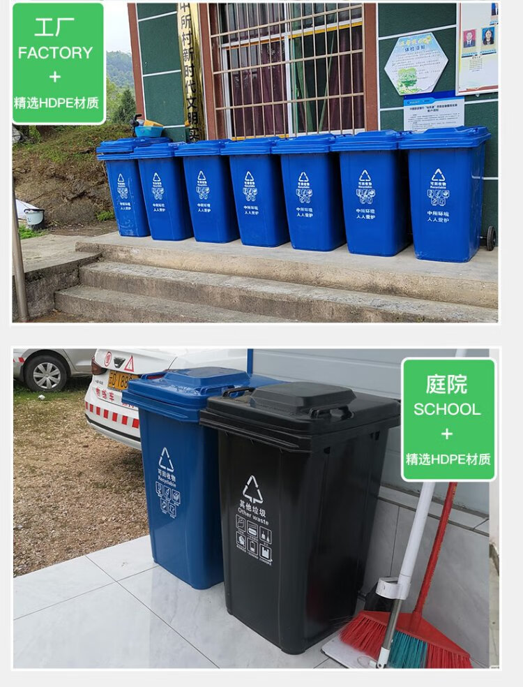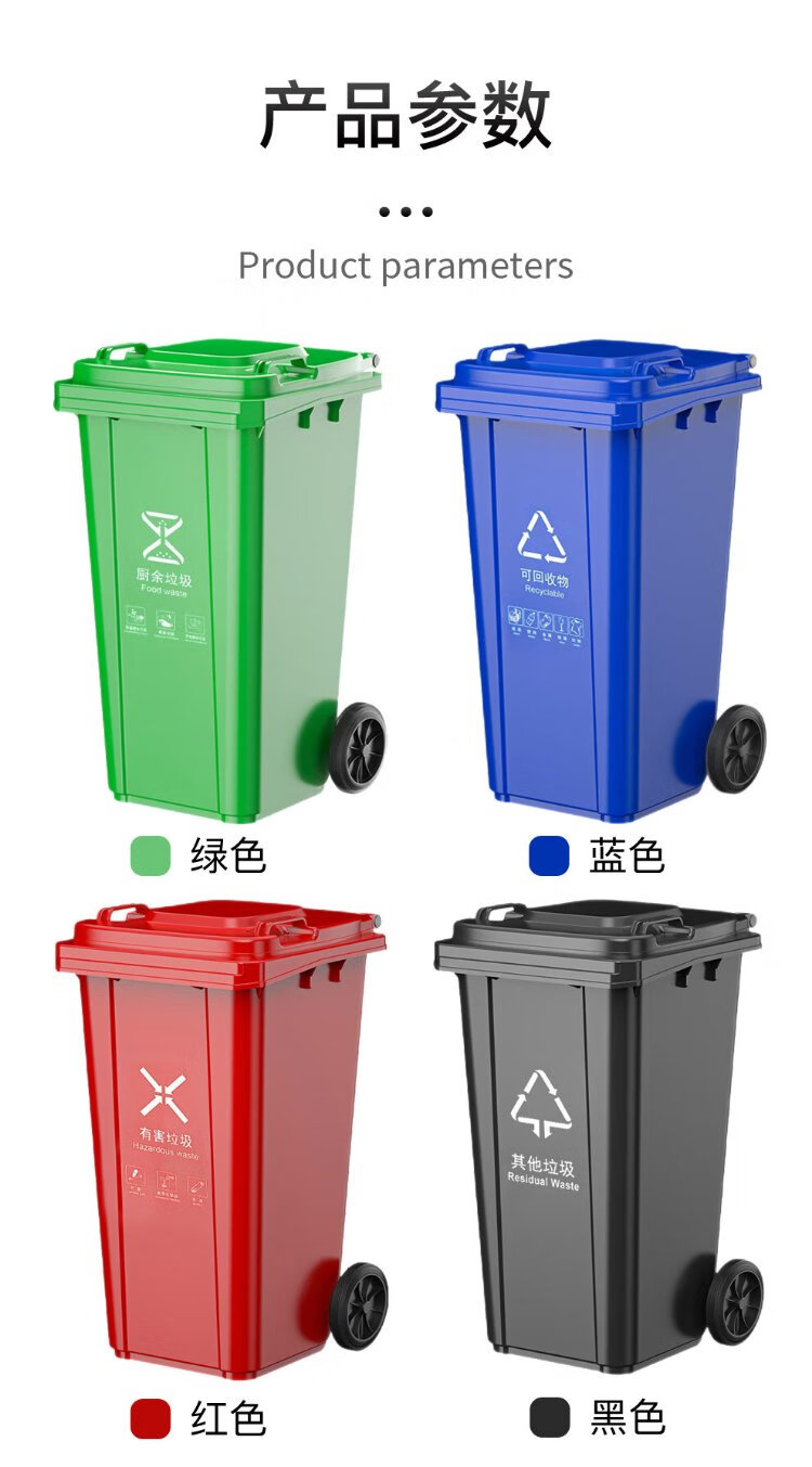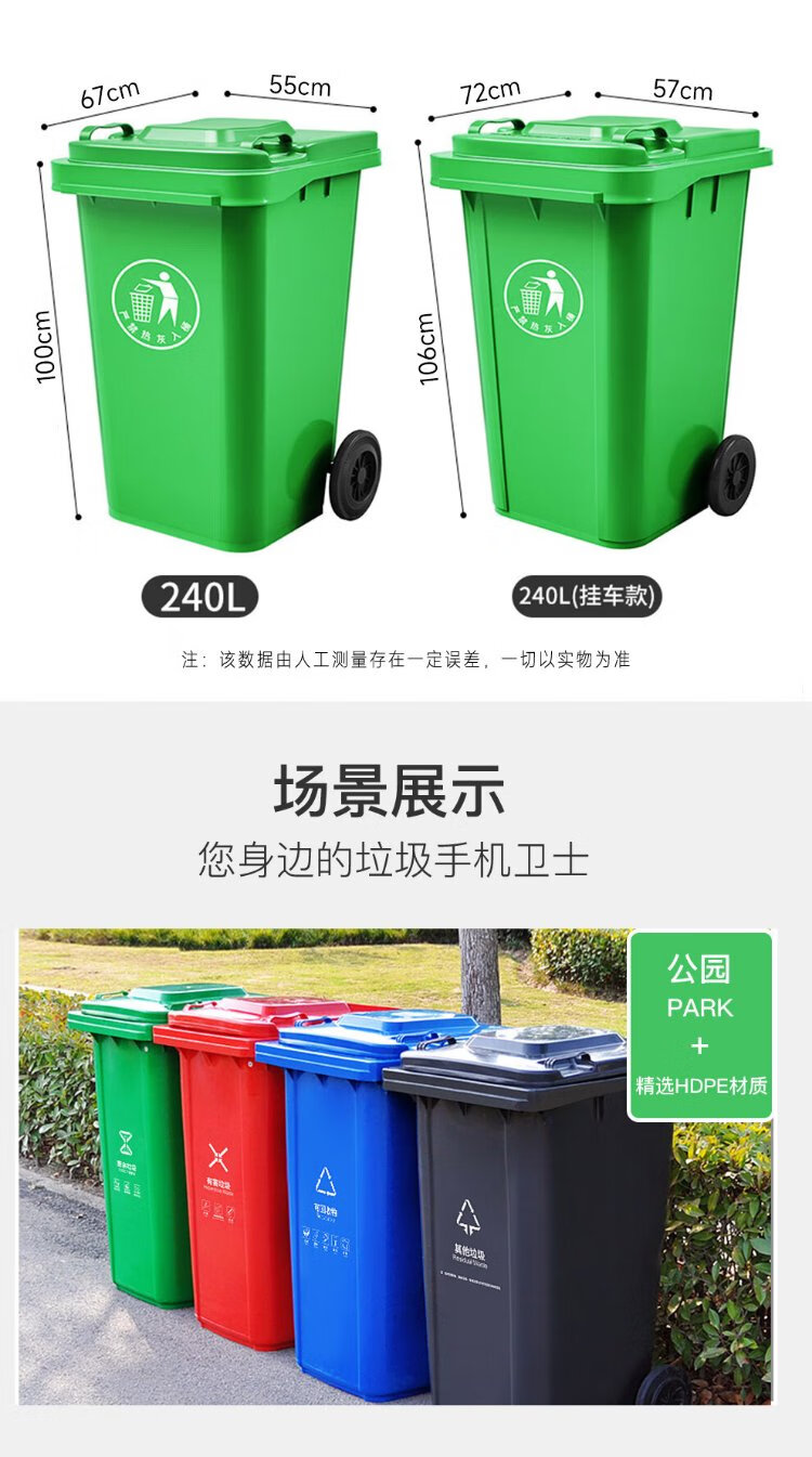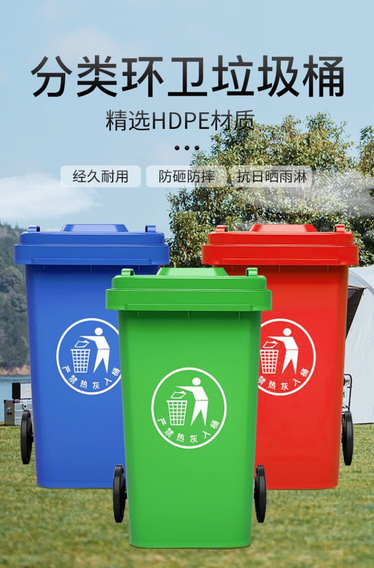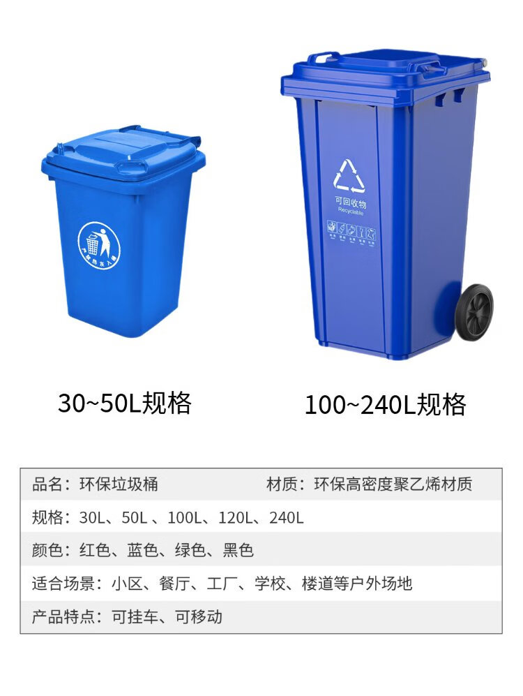 Ouyi ORYT 240L outdoor large trash can large with cover non-pedal trailer outdoor sanitation hotel kitchen waste classification thickened large capacity plastic outdoor property blue thickened version