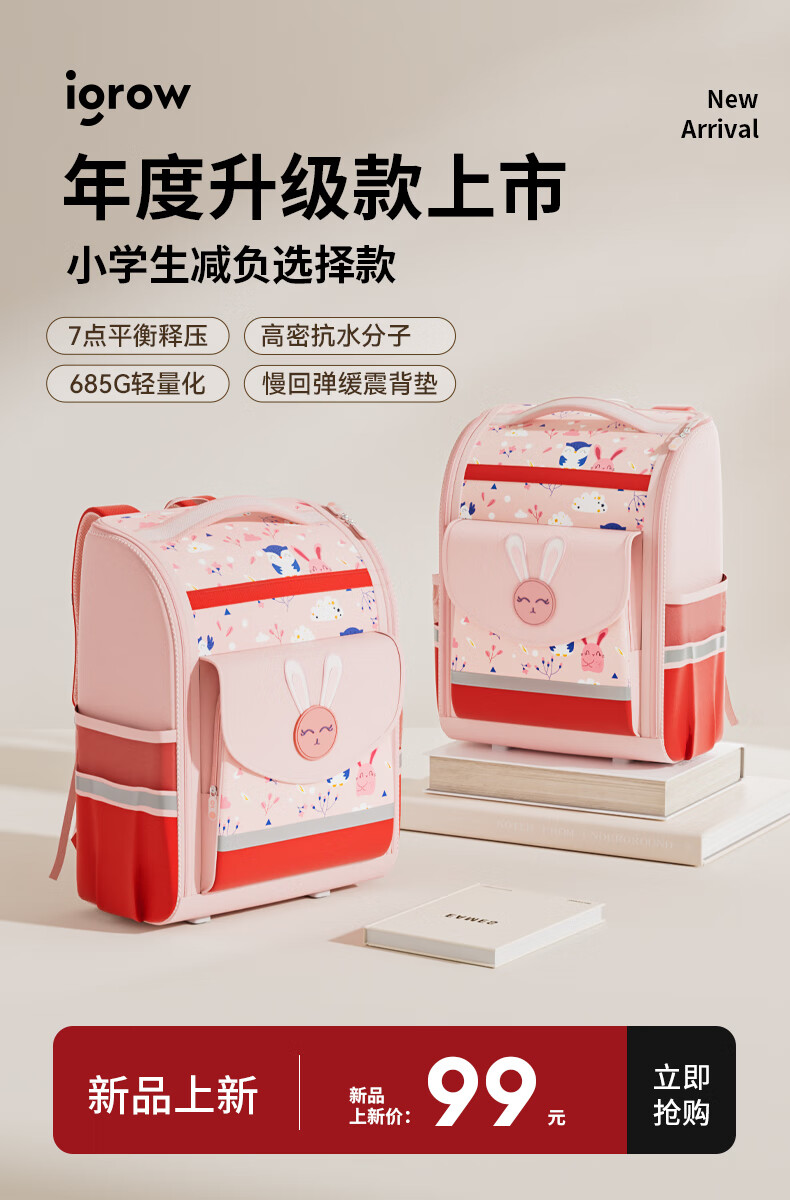 IGROW back-to-school schoolbag primary school boy spine protector children's schoolbag 1-3-6th grade sweet style girl's shoulder burden reduction
