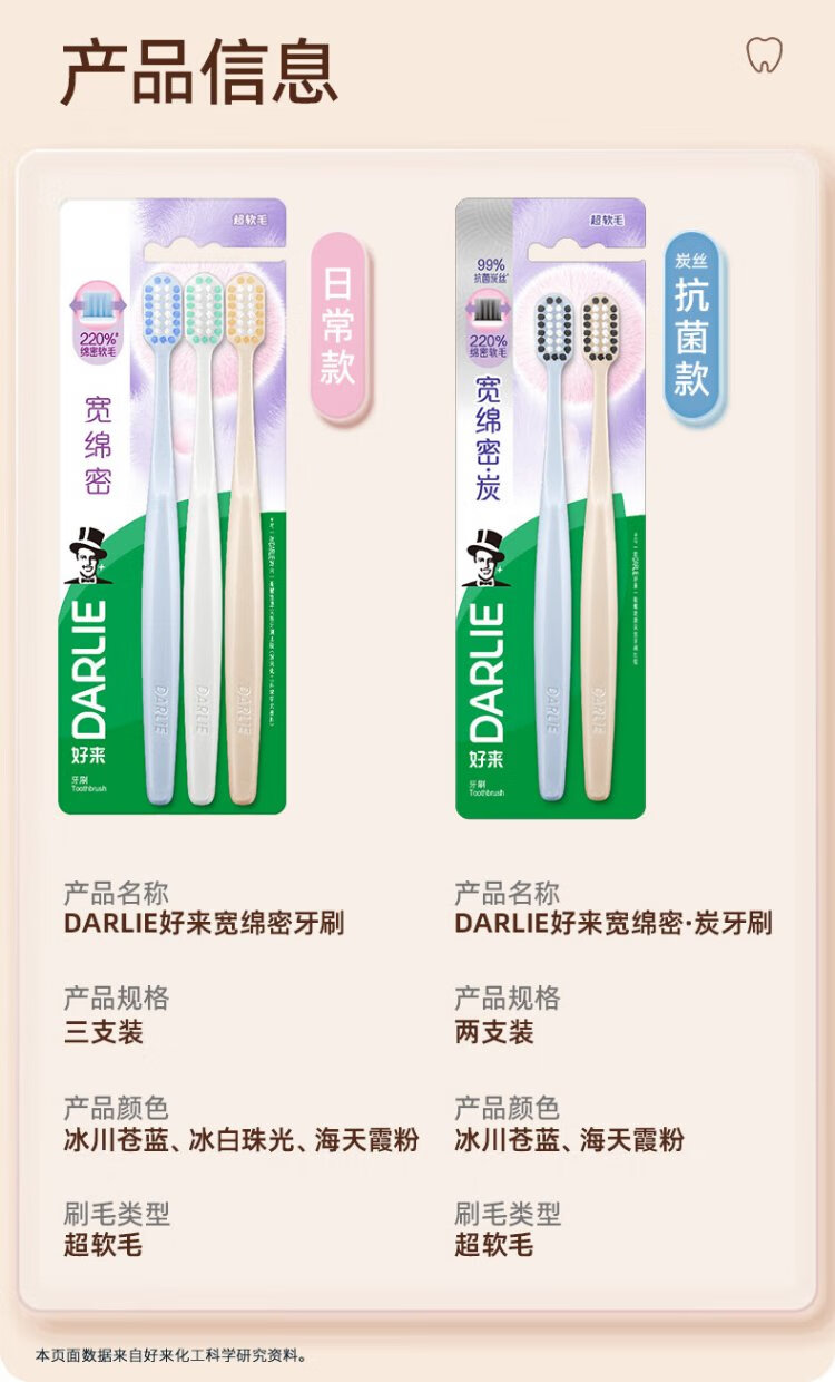 DARLIE Haolai Bailu recommends wide and dense charcoal wide-head toothbrushes, two ultra-soft bristles adult toothbrushes, antibacterial and deep cleaning