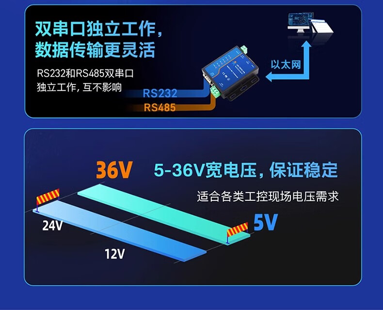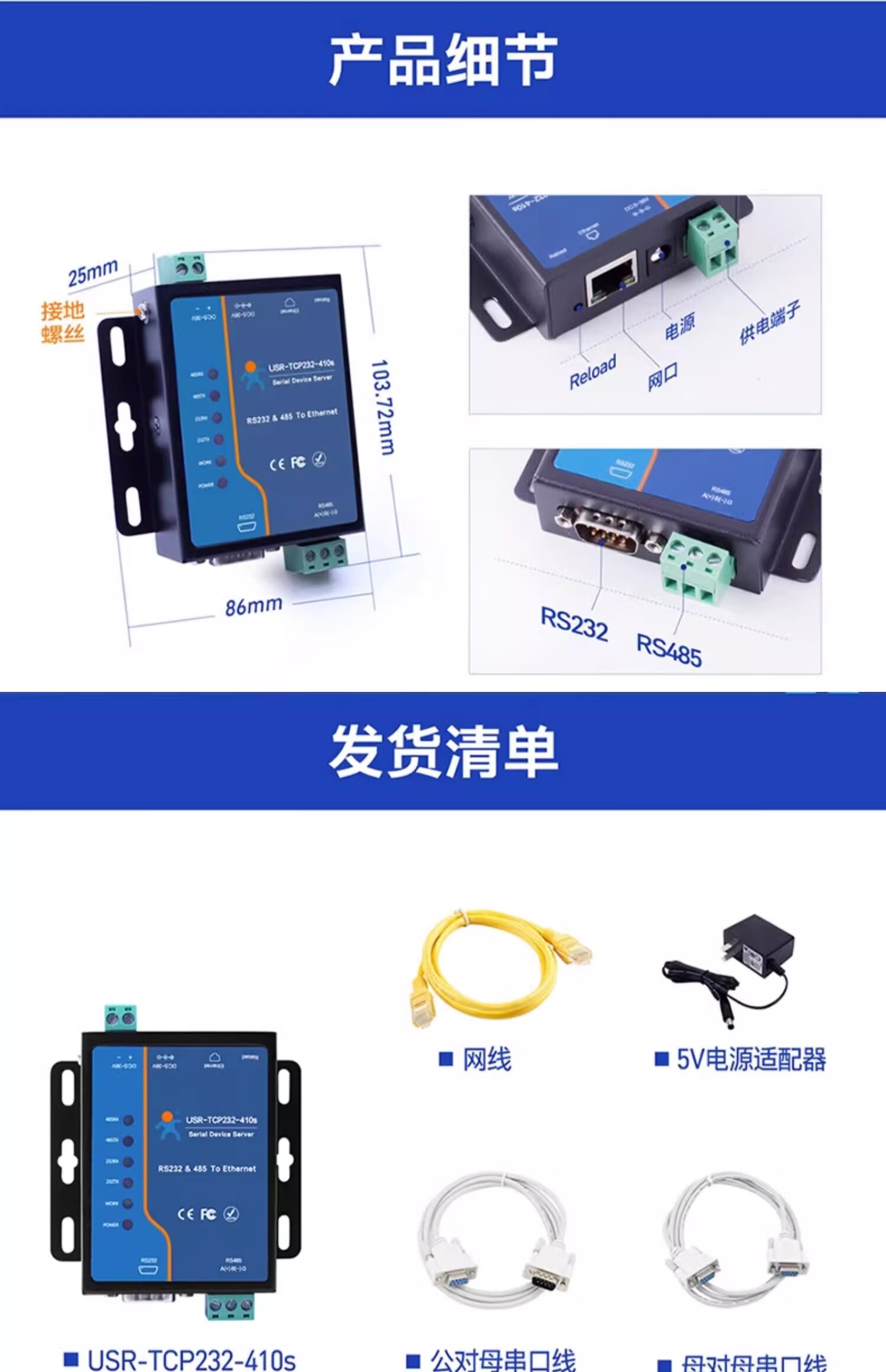 Someone's Internet of Things industrial-grade dual serial port server RS485/232 to Ethernet two-way transparent transmission dual serial port uses MODBUS gateway USR-TCP232-410s at the same time